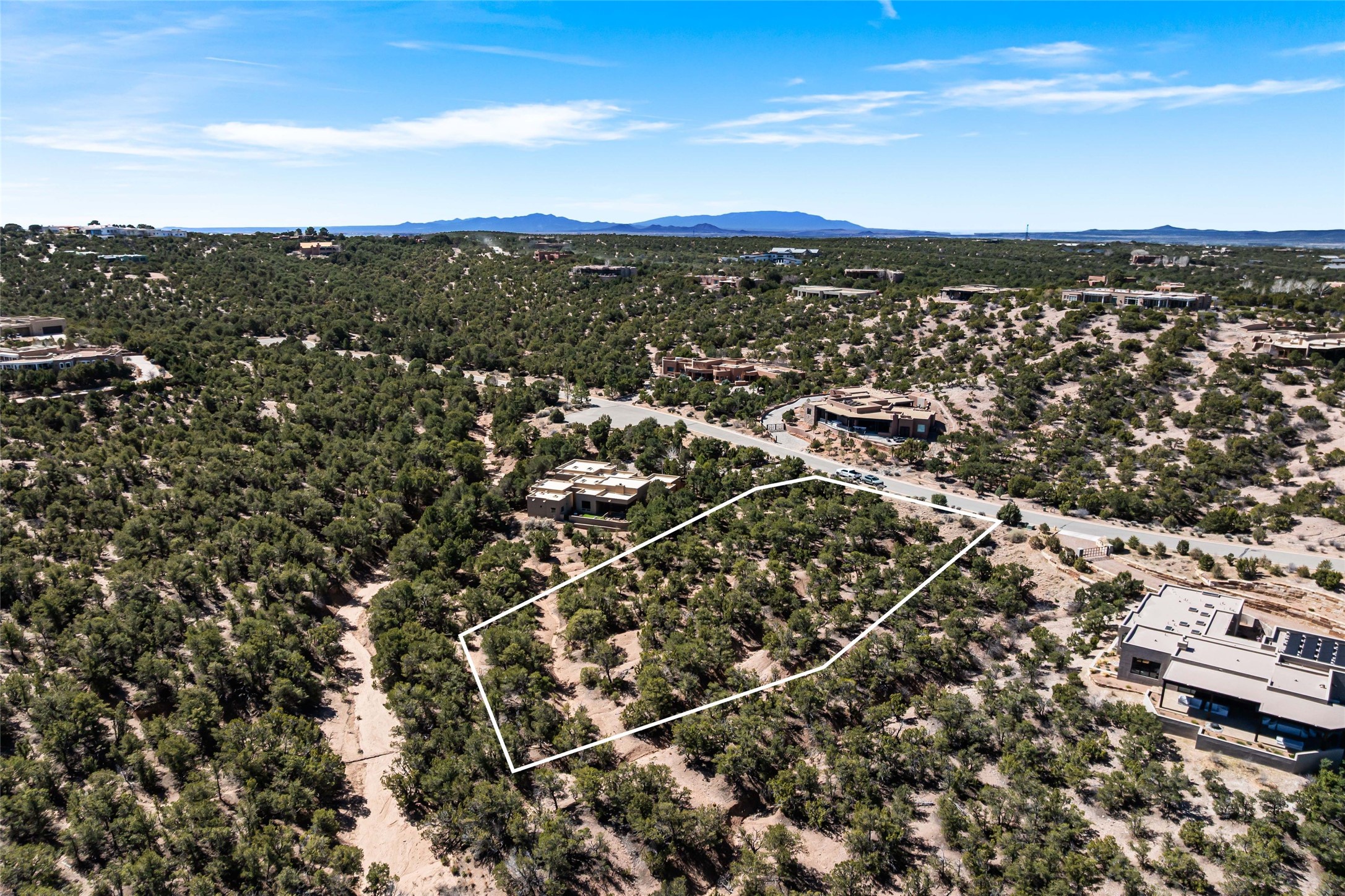Enjoy breathtaking views of the Sangre de Cristo Mountains from this exceptional 1.0+ acre Monte Sereno homesite. Perfectly positioned just minutes from the renowned dining, galleries, and cultural experiences of Santa Fe, this property offers the ideal blend of natural beauty and convenient access to town. Located within a well-planned community, the lot features paved roads, curbs and gutters, natural gas, city water and sewer, underground utilities, cable, and high-speed internet, making it ready for your vision to take shape. Bring your architect and design the custom home you've always imagined-whether a contemporary retreat or classic Santa Fe style- and create a place where stunning mountains views and Southwestern living come together.
