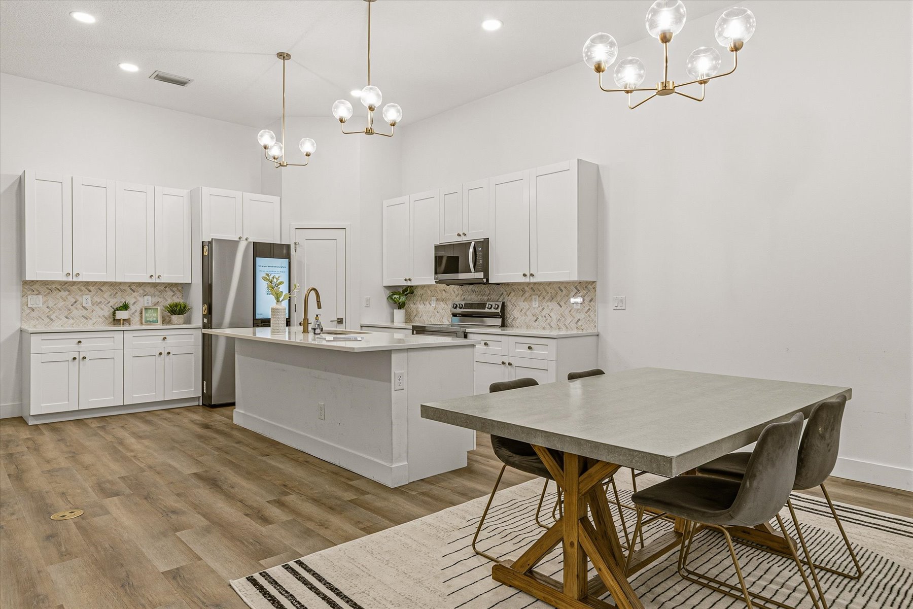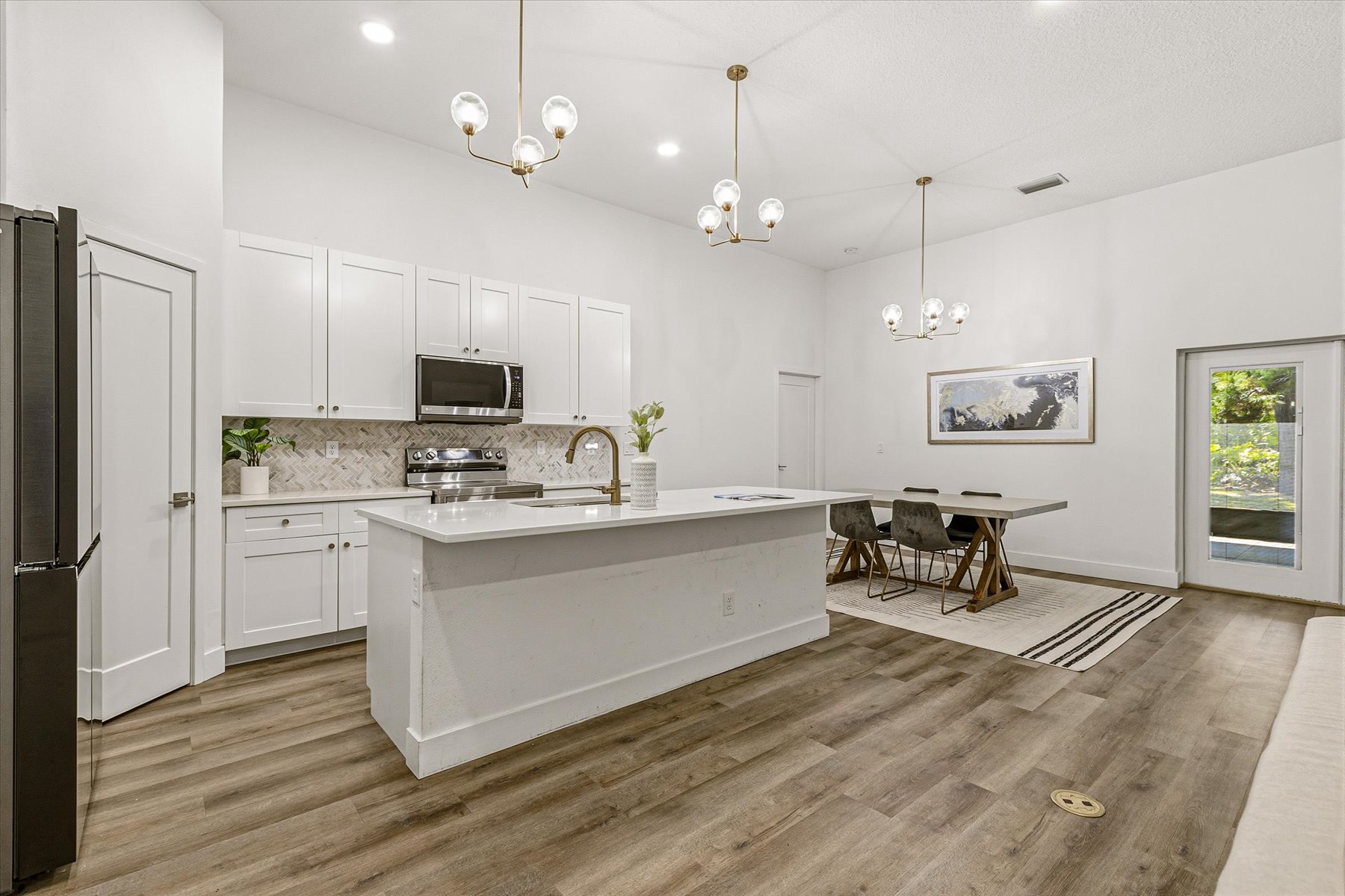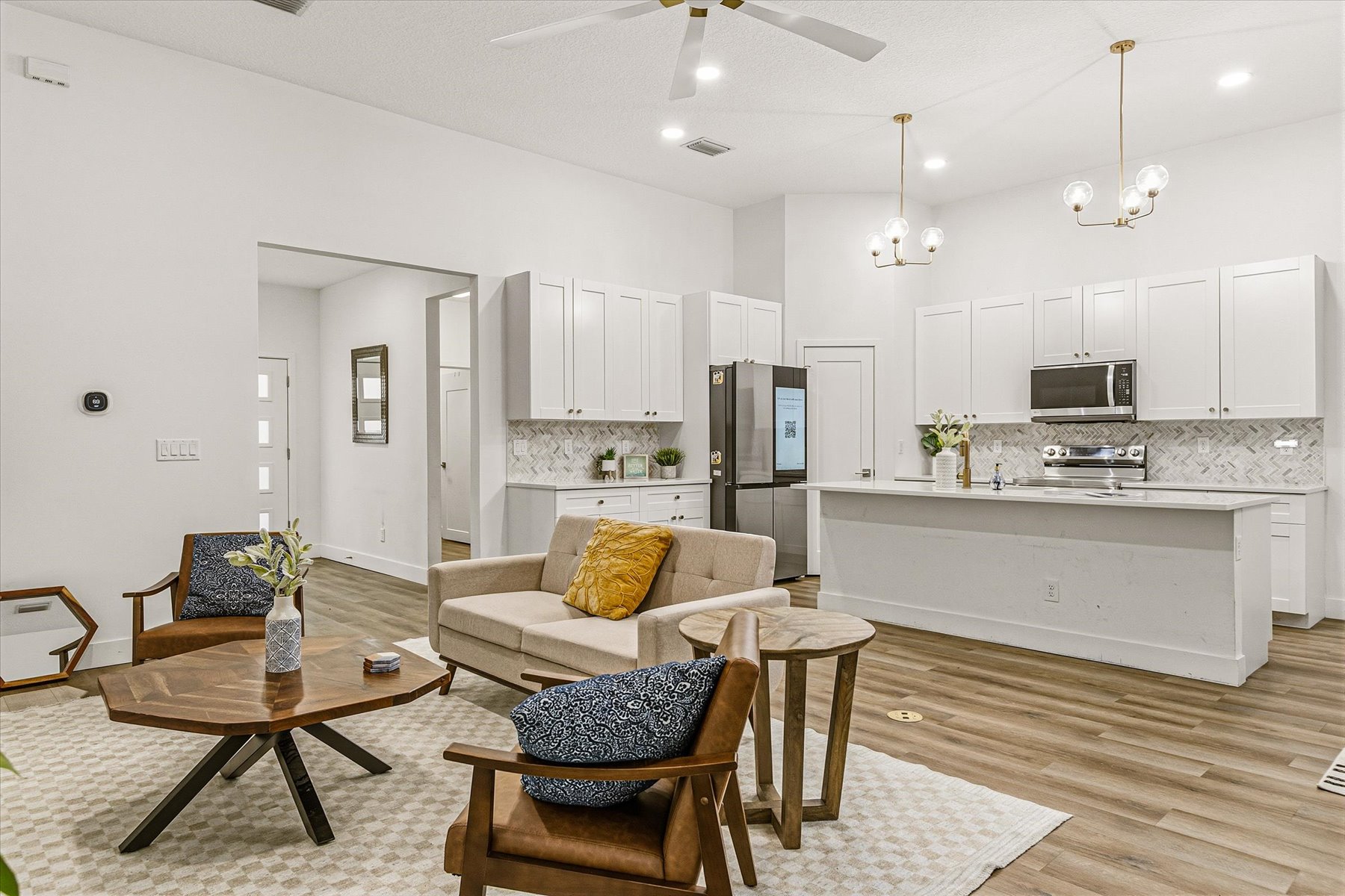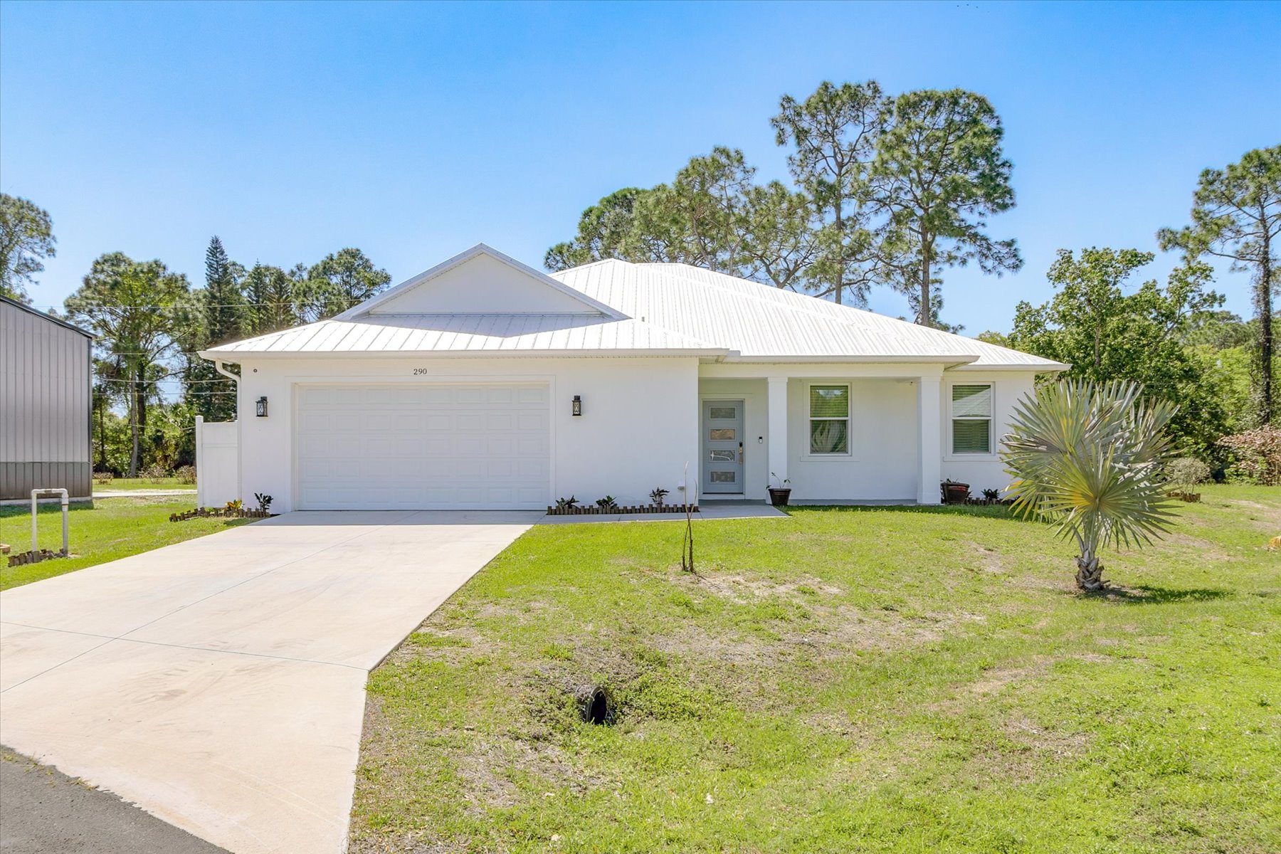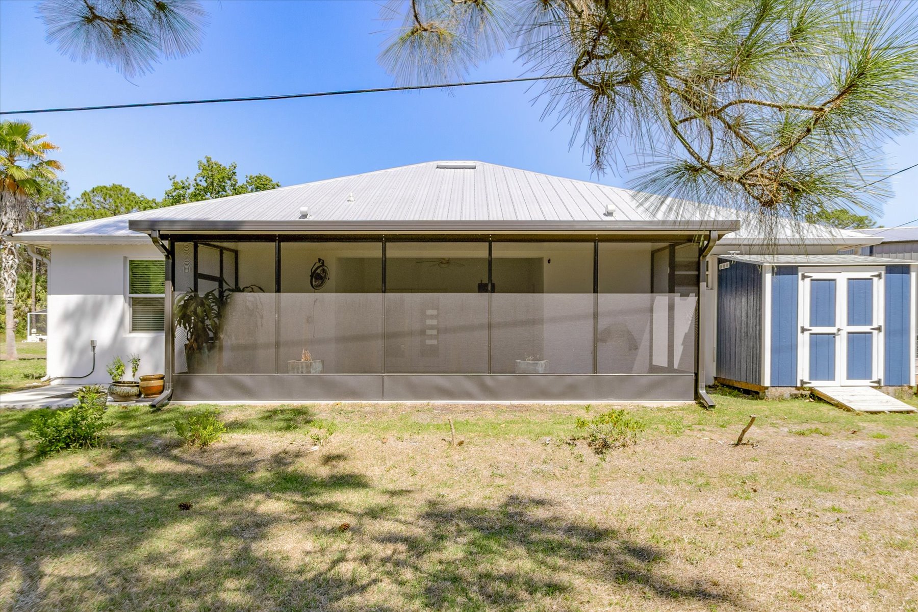 Turn-key and move-in ready, why wait for new construction? Skip the delays, added costs, and uncertainty; this upgraded home is ready now. Welcome to your forever home, offering a spacious open floor plan with soaring 11'4'' ceilings and seamless indoor and outdoor flow to the newly screened lanai. Designed for today's lifestyle, this split floor plan delivers the ultimate in privacy and functionality with a bathroom for every bedroom, 3 en-suites! Perfect for guests, multi-generational living, or added comfort for everyone.The oversized primary suite, approx. 450 square-feet, features dual walk-in closets and a designer bath, while the great room creates the ideal space for entertaining and everyday living. Recent upgrades include a screened-in patio, multiple fruit trees and two additional sheds, providing extra storage and flexibility.Enjoy high-end finishes throughout, including 42'' all-wood cabinetry, thick granite countertops, and durable vinyl plank flooring. Built for durability and peace of mind with impact-resistant windows and doors plus a metal roof--ready for Florida's storm seasons.Designed with efficiency, low maintenance, and comfort in mind, this home delivers true Florida living.