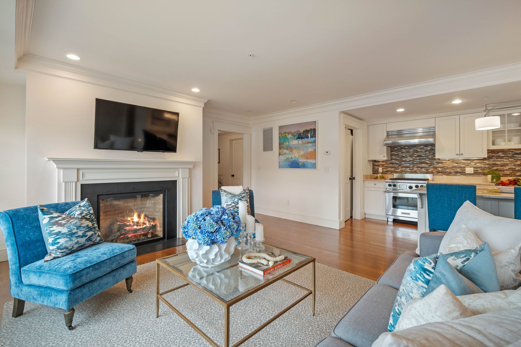 Welcome to Unit 205 in The Concordia, a rarely available unit in the luxury condominium building in the heart of downtown Swampscott. This two-bedroom, two-bath unit combines sun-filled elegance with ultimate convenience, featuring two deeded garage parking spaces with elevator access—perfect for effortless coastal living. The open-concept layout flows seamlessly from a high-end kitchen with a gas Wolf range, granite countertops, and hardwood floors into the living and dining areas, highlighted by a gas fireplace, recessed lighting, and crown moldings. The primary suite is a true retreat, offering a walk-in closet, en-suite bath with double vanity and tiled shower, and a private balcony with ocean views. A spacious second bedroom and full bath provide flexibility for guests or a home office, while in-unit laundry adds everyday convenience. Enjoy shared green space, direct beach access, and a lifestyle just steps from shops, and restaurants.