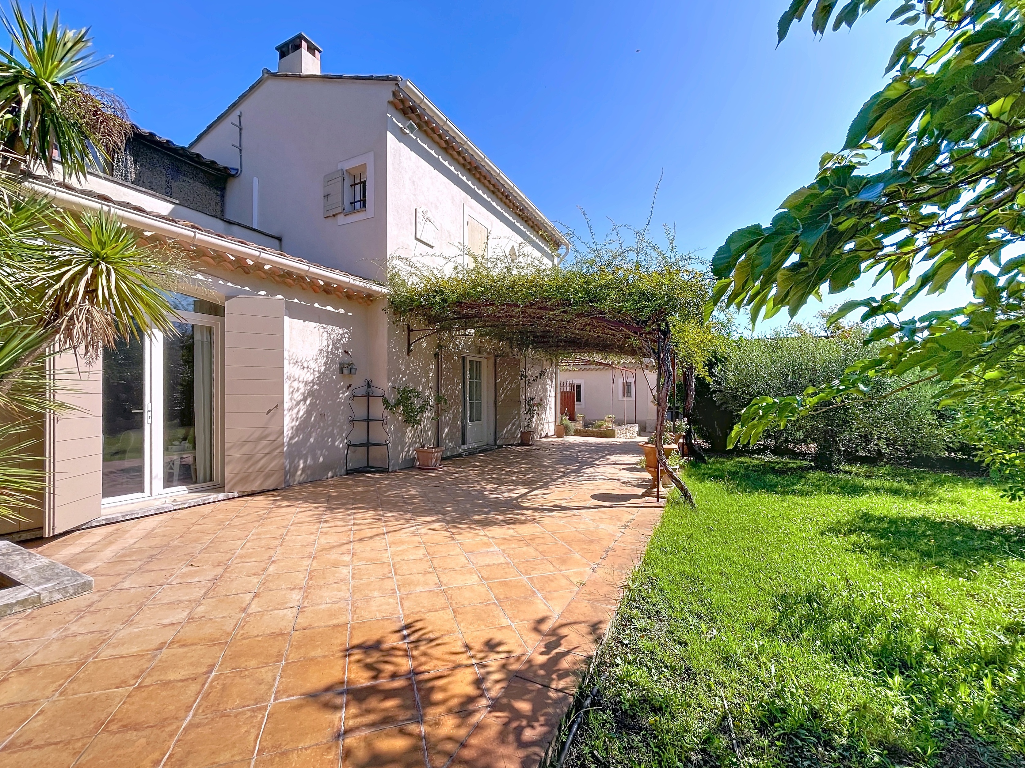Just moments from the heart of Maillane yet set in complete tranquility, this elegant south-facing villa offers approximately 230 m of living space on a beautifully sized 1,514 m pool-ready garden with no direct neighbors. Built in 2003 and designed primarily on one level with a partial upper floor, the home features bright, spacious interiors including a main kitchen, living room, dining area, charming orangery, pantry, and laundry room, along with four bedrooms, two of which are suites, three bathrooms, three toilets, and two generous walk-in closets. The upper level enjoys views toward the Alpilles hills, while the ground floor opens seamlessly to the garden. Additional highlights include two attached garages (21 m and 53 m), a separate summer kitchen with its own bathroom and WC, an on-site well ideal for irrigation or future pool use, and zoning that allows up to 40% ground coverage for potential expansion. Modern comforts include electric underfloor heating, reversible air conditioning in select areas, a fireplace with insert, and an automatic gate, offering a peaceful Provenal retreat just moments from village amenities. The asking price is 1,010,000 euros, reflected in U.S. dollars at the time of listing. Exchange rates may vary; call for price updates based on current market conditions. Listing Courtesy of the listing broker. Sotheby's International Realty (SIR) advertises this property as a referring agent only, and SIR does so with the consent of the listing broker. SIR will be referring buyers to the seller or local listing broker for the property who will provide information about the property and negotiate any agreements for the purchase of this property. Any information provided by SIR about the property was provided to SIR by the seller or local listing broker and has not been verified by SIR. Buyers should consult with their legal counsel or local real estate professional concerning the property or any resultant transaction.