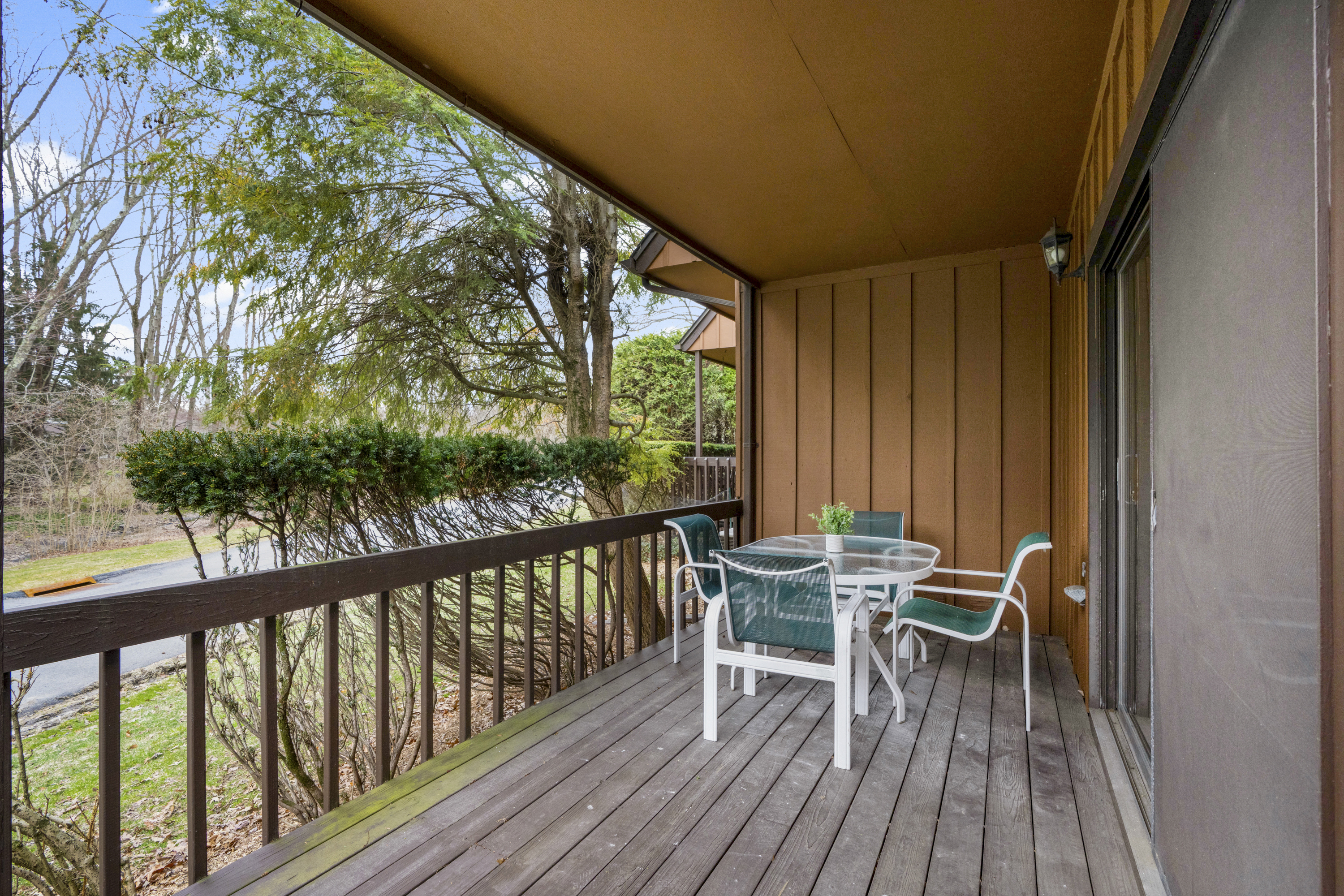 Tucked within the sought-after Downingwood community, this beautifully maintained 1,717 sq ft, 2-bedroom (that easily lives like 3 bedrooms), 2.5-bath, end-unit townhouse offers the perfect blend of comfort, style, and convenience. Hardwood floors flow throughout, complemented by large windows that create a bright, airy ambiance. The updated eat-in kitchen is ideal for both everyday living and entertaining, while the inviting family room features a cozy fireplace. A private den or home office provides flexibility as a potential third bedroom. Step outside to an expanded deck bathed in afternoon sun, perfect for relaxing or hosting. The spacious primary suite includes a full bath, dressing area, and an oversized walk-in closet. Additional highlights include an oversized, detached 1-car garage (measuring 11.5' x 23') with great additional storage potential. *NEW* Hot Water Heater (2025), Furnace (2025), AC Condenser (2025). Enjoy maintenance-free living with HOA amenities including exterior care, snow removal, clubhouse, pool, tennis courts, playground and gym all just moments from Irvington village, schools, Metro-North, and the Hudson River. An easy commute to NYC.