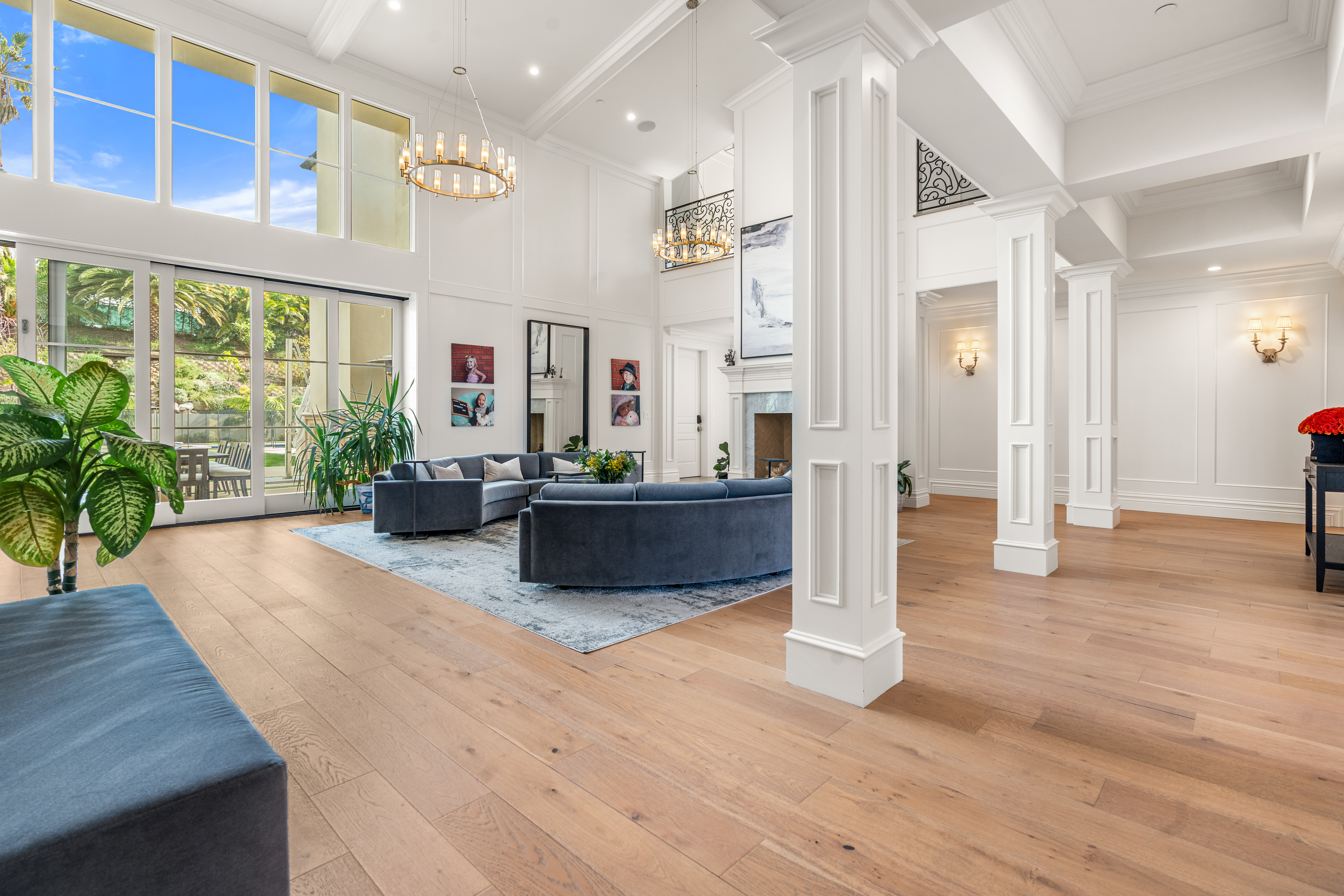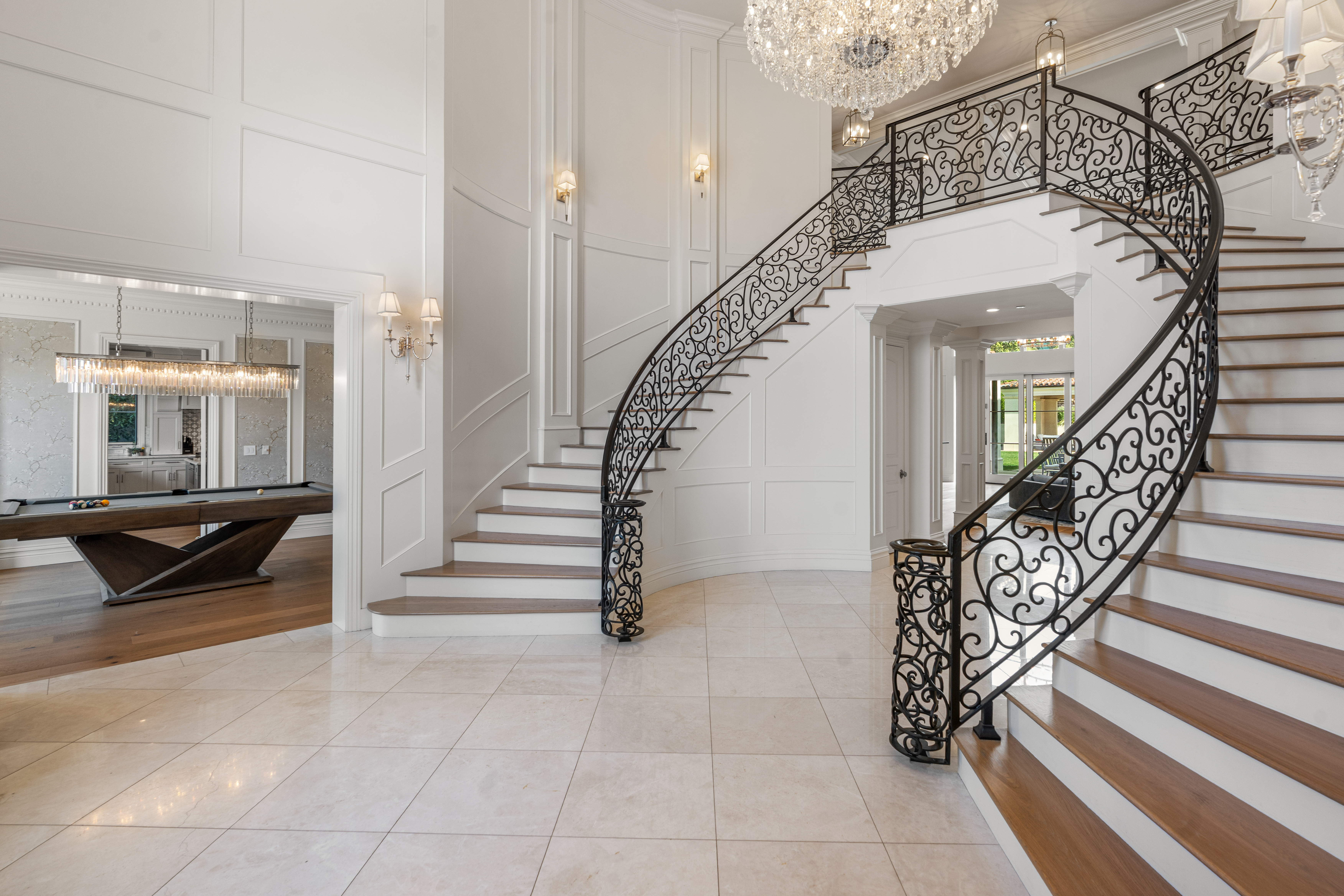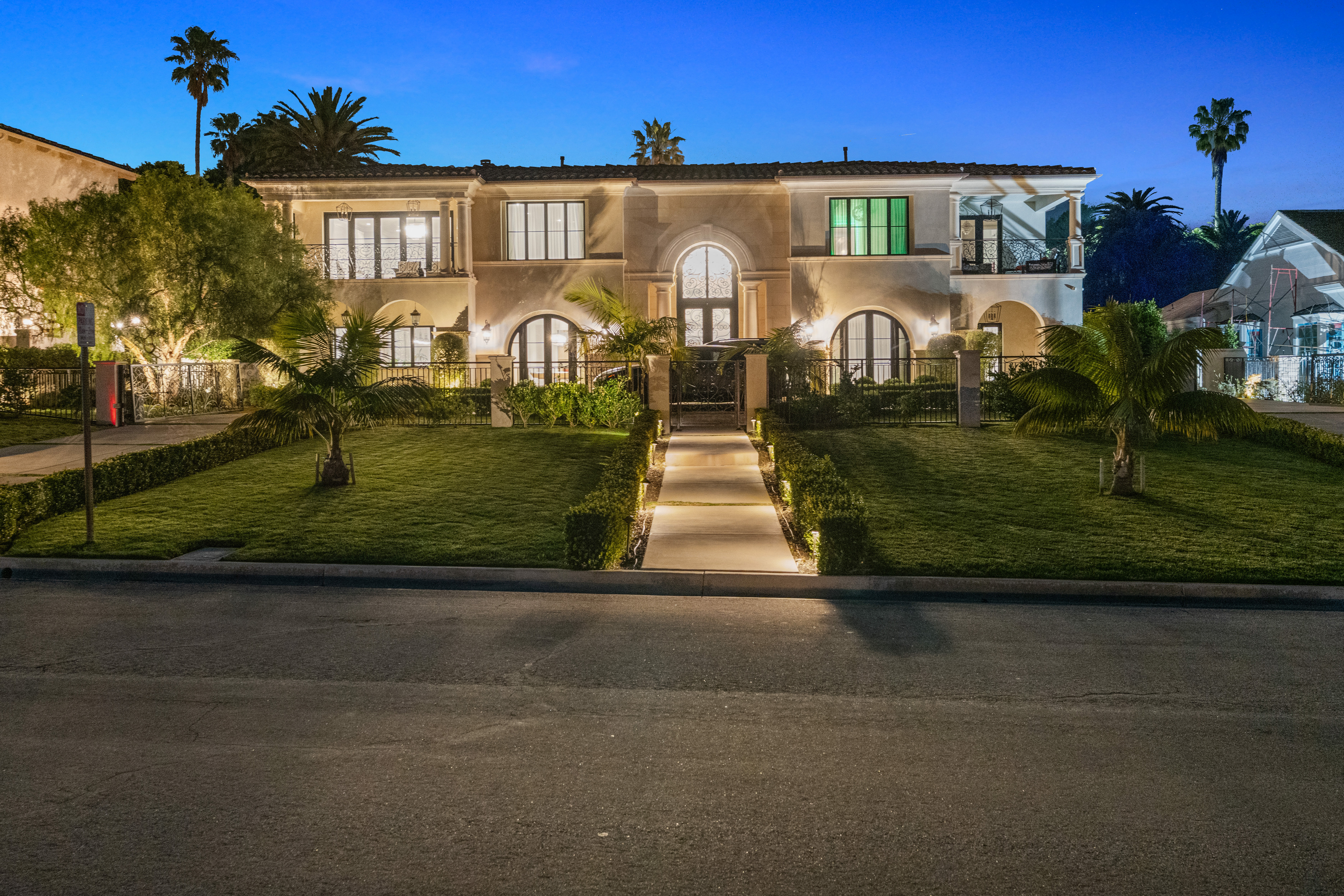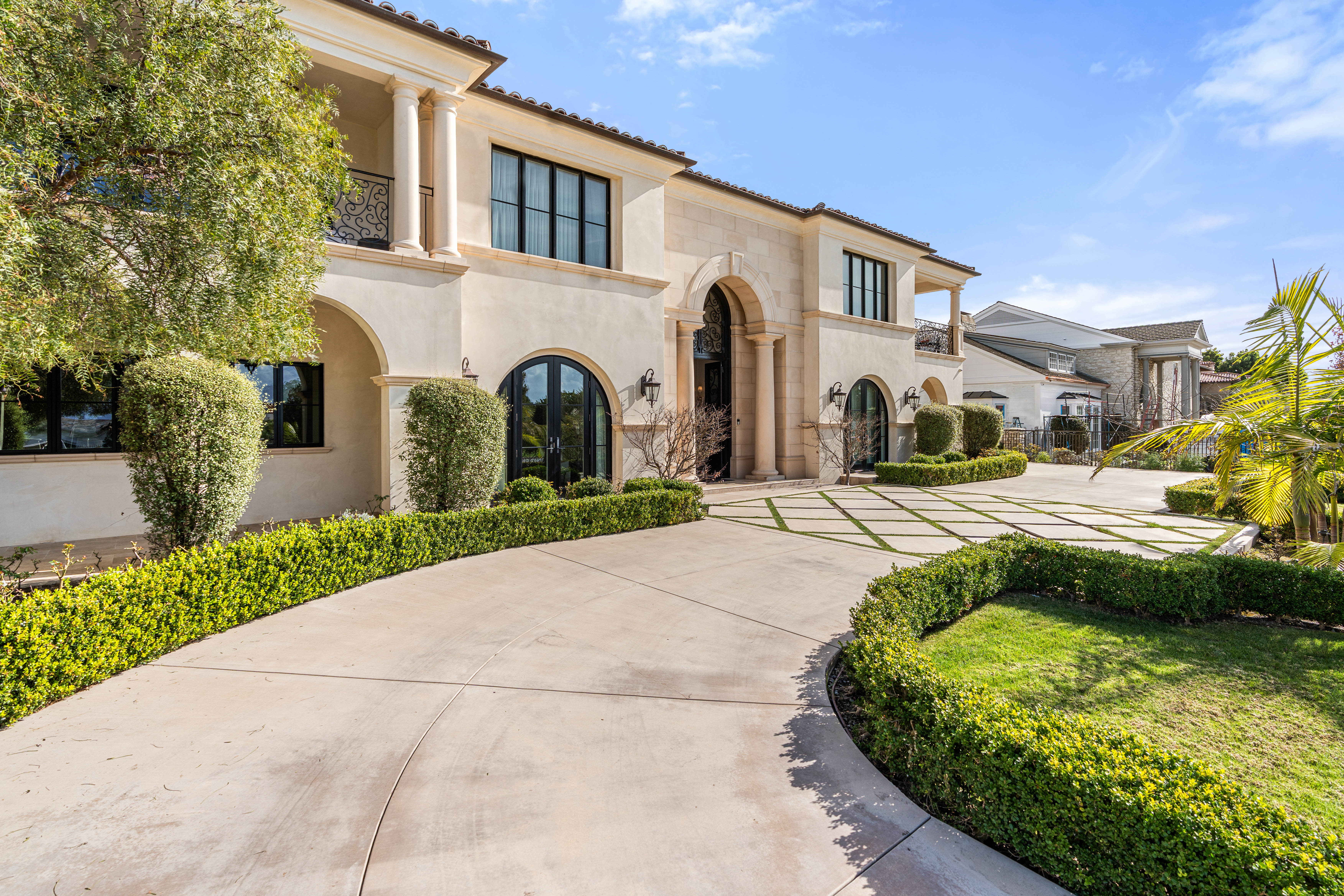 Welcome to 1816 Paseo Del Mar, a stunning custom-built Tuscan-inspired villa with modern elegance, situated on over a half-acre lot on one of the most prestigious streets in Palos Verdes Estates—directly across from the cliffs for unparalleled coastal proximity. This newer construction (built 2019) offers panoramic ocean views from the second floor and select upstairs areas, while the main level and backyard focus on resort-style privacy and entertaining. Enter through grand double doors into a dramatic two-story foyer featuring a massive crystal chandelier and dual sweeping staircases with custom wrought iron detailing. The open floor plan flows into a spacious living room with extra-tall ceilings and a grand fireplace, adjacent to a wet bar and temperature-controlled glass wine cellar. The gourmet chef's kitchen is equipped with high-end Wolf and Sub-Zero appliances and a large island topped in imported Carrara marble. The main level includes a guest bedroom with en-suite bath, a private office with attached bath, a total of 4 bathrooms, and an exceptional home theater perfect for entertaining or family movie nights. Upstairs, accessible by three staircases or an elevator, wide hallways overlook the grand living area below. The luxurious primary suite features a fireplace, automated window coverings for abundant natural light, a covered balcony ideal for sunset viewing, a spa-inspired bath with soaking tub, dual-head walk-in shower, custom cabinetry, Carrara marble inlaid floors, and his-and-hers vanities. The expansive walk-in closet includes custom built-ins and dual center islands. Four additional en-suite bedrooms (each with custom tile and marble baths) complete the upper level; two share an adjoining balcony, and one is configured as a gym with Tonal wall unit and Peloton equipment, and connected bath. The resort-style grounds boast multiple entertaining spaces: a detached casita with fireplace and TV, a connected casita with fireplace, a courtyard fireplace, covered BBQ area, advanced swimming pool with connected spa, and a dramatic large waterfall feature on additional land (not included in square footage). Over $500,000 in upgrades since home was purchased ($150K Control 4 smart home control system for lighting, HVAC, monitored Security system, sound system and fire) Home has fire sprinklers. Whole house water filtration and softener system. Tesla Charger. $150K backyard waterfall and upper portion landscaping. $50k automated drapes/shades.