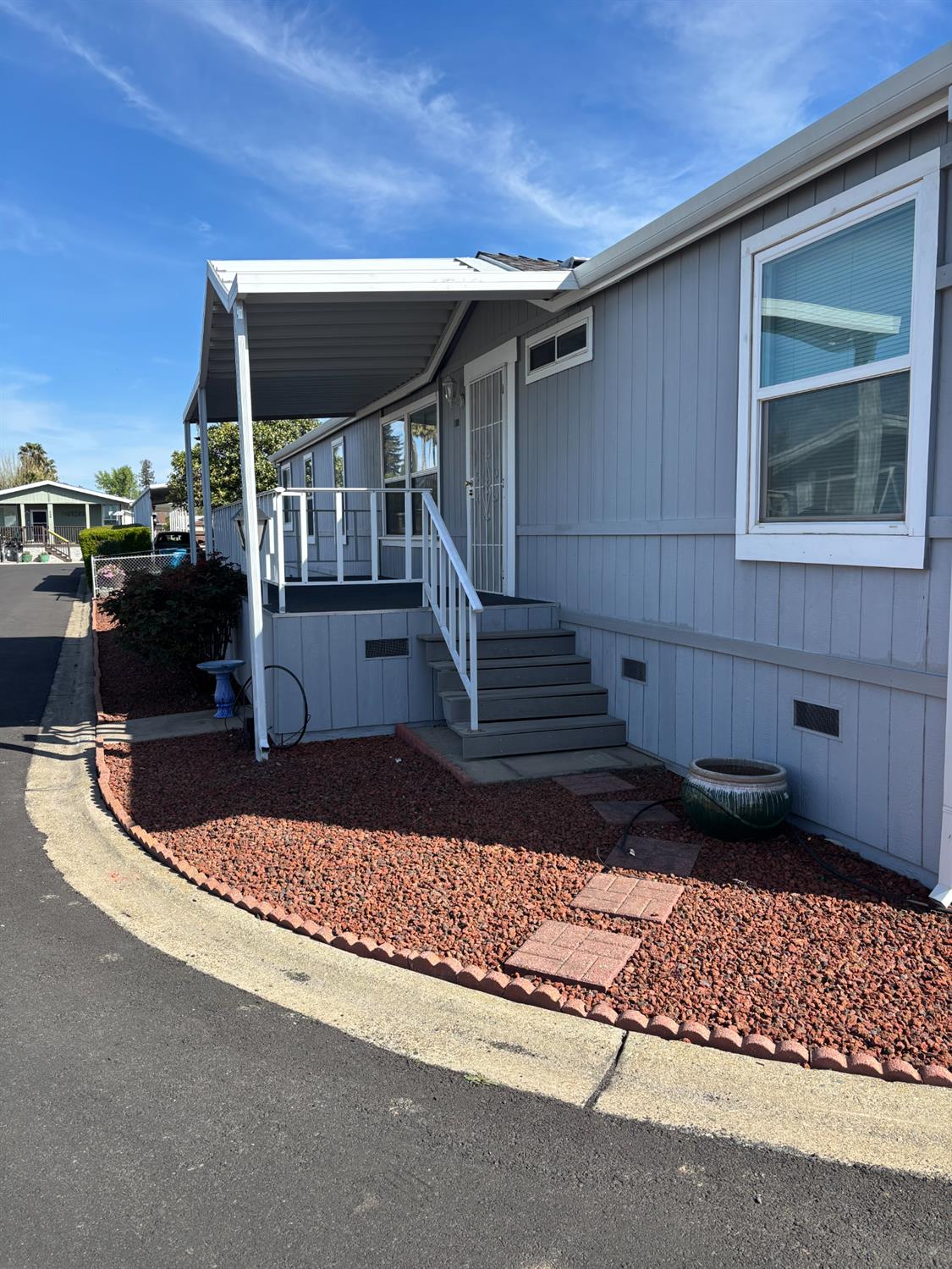 This corner lot property has so much to offer! In addition to the three bedrooms, there's an office space with storage. The kitchen boasts beautiful granite countertops with an island, and an abundance of cabinets. The northeast facing breakfast nook promises bright morning dining and a perfect spot to grow your houseplants! A utility closet is in the nook, making laundry days convenient! Enjoy your morning coffee on the west facing front porch. Looking to simplify and downsize? This home may be the perfect transition to enjoy a simple lifestyle with minimal upkeep. The property has a club house, RV storage, a small, fenced dog park, two pools and a quiet peaceful atmosphere. Park approval is required. Lift is negotiable.