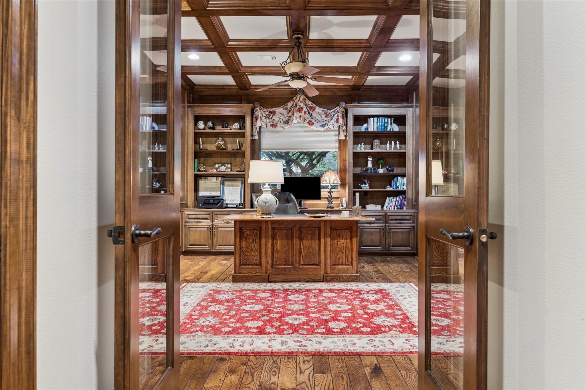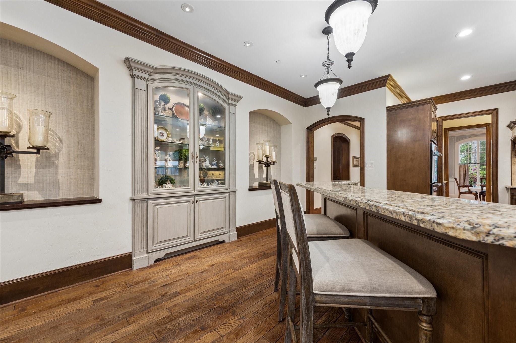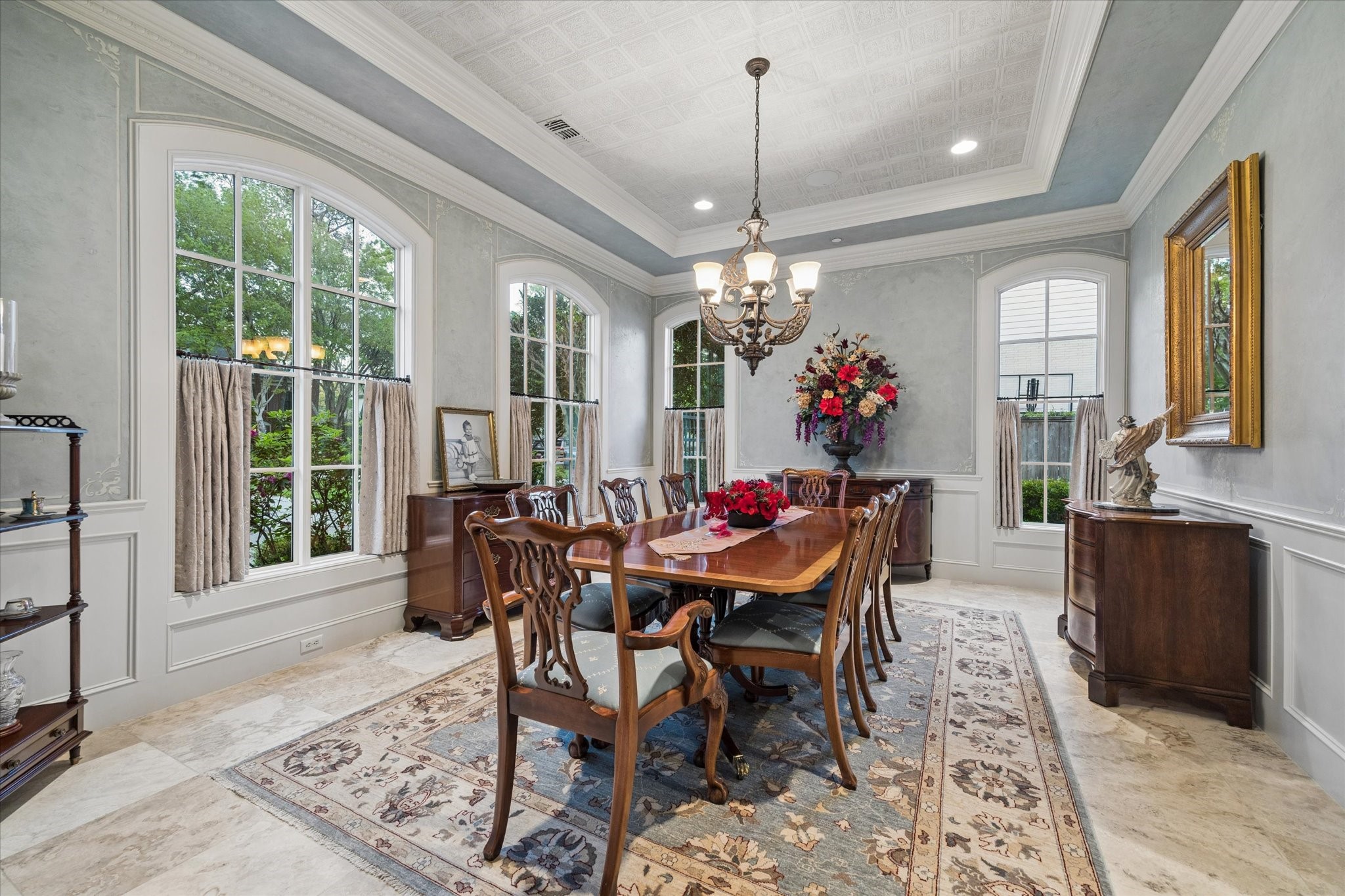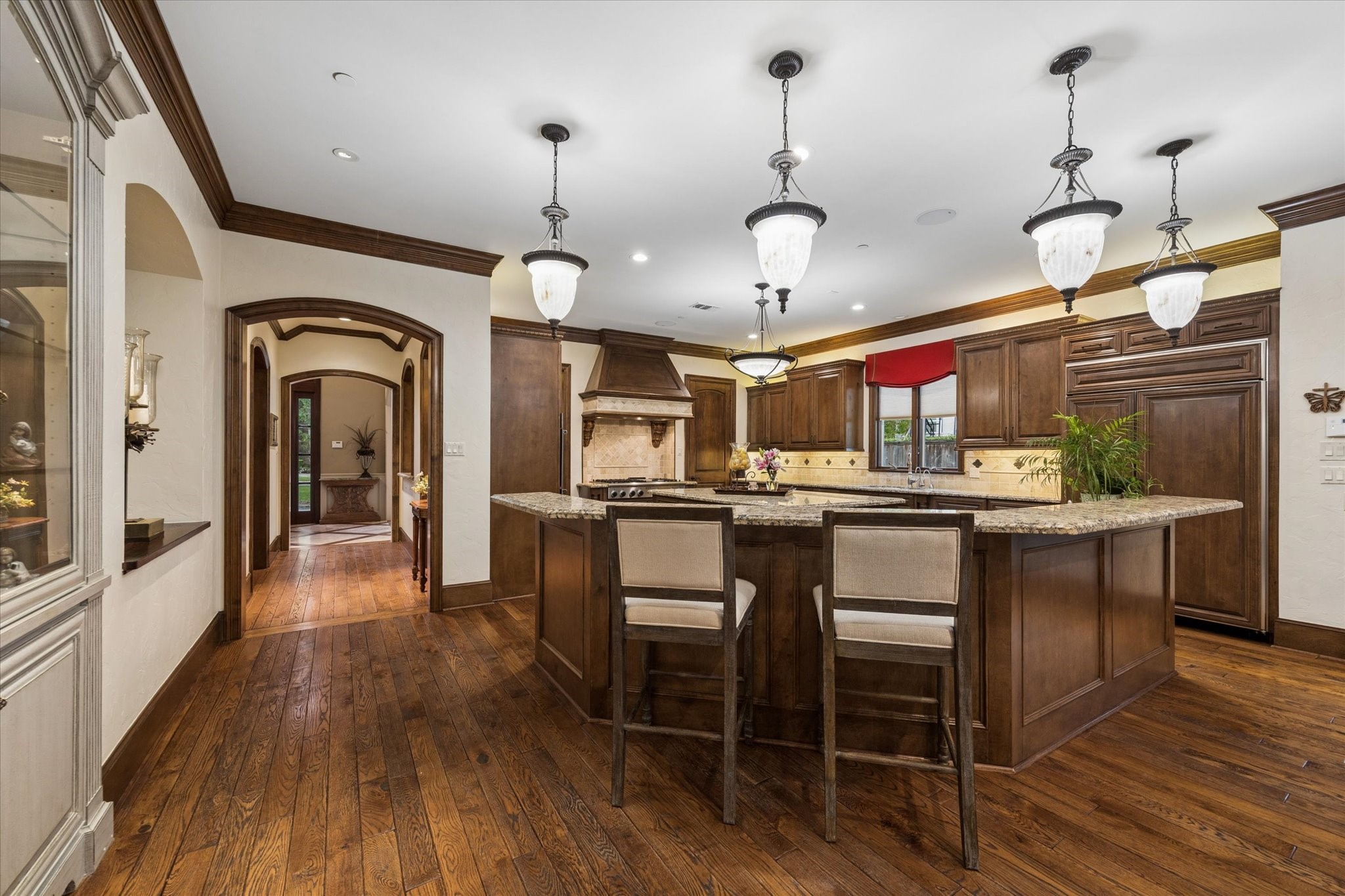Situated on a quiet cul-de-sac, this beautiful residence is surrounded by mature landscaping. The home has large and open living area designed for entertaining. A chef kitchen with double ovens and gas range featuring a large island. The outdoor living area features a gas fireplace and outdoor kitchen. The backyard offers a serene and private area to enjoy the mature landscaping with a water fountain. There is plenty of room for a pool. The floor plan features 4 bedrooms, with the primary suite and a extra room located on the first floor. This home has both formals as well as a wood panel study. Upstairs offers three spacious bedrooms, a game room with wet bar, and a media room. Large walk in attic storage. This home is not to be missed.