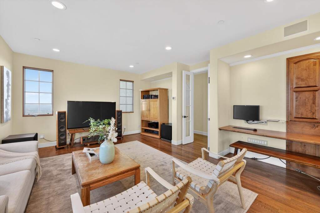 This French Country inspired residence offers rare serenity just minutes from top Cupertino schools, shopping, and major employers. A scenic 20 minute drive from Silicon Valley brings you to a private hilltop retreat nestled on ~10 acres along an exclusive road. Enjoy breathtaking ~270 panoramic views of the San Francisco Bay and the Santa Clara Valley - lush green hills by day, shimmering city lights by night, and a stunning above the clouds vantage when valley fog settles below. The 4bd/3ba home features a light-filled floor plan, main-level bed/bath, and an upstairs primary suite with a walk-in closet and spa-like bath. The kitchen offers premium stainless appliances, abudant cabinetry and countertop space. The main level includes a private office area and a sunroom perfect for a reading lounge or inspired workspace . The dining area opens up to the backyard which is ideal for entertaining. An oversized 3-car garage with abundant storage and leased solar complete the offering. Near acclaimed wineries including Ridge Vineyards and over 22K acres of hiking & 10K acres of biking trails, this home offers a perfect blend of luxury and an active lifestyle. Close to Cupertino schools and major employers. Experience refined living where the journey itself becomes part of the reward.