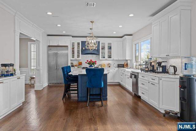 Stunning Center Hall Colonial built in 2019, offering 6 bedrooms and 5.5 bathrooms, ideally situated on ParamusaEUR highly desirable East Side on a quiet street surrounded by beautiful newer homes. A dramatic two-story foyer with marble-accented tilework sets the tone, showcasing the exceptional craftsmanship and detailed trimwork carried throughout. The main level features a sought-after first-floor bedroom with a full bath, along with a chef-inspired kitchen equipped with professional-grade appliances, custom cabinetry, and a large center island, seamlessly flowing into the impressive family room with soaring ceilings and abundant natural light. The space overlooks a beautifully designed backyard complete with a covered outdoor kitchen, grilling area, and seatingaEUR"perfect for entertaining. Upstairs, the luxurious primary suite offers a private sitting area, spacious walk-in closet, and a spa-like en-suite bath. Three additional well-proportioned bedrooms, two full bathrooms, and a convenient laundry room complete the second level. The fully finished lower level is an entertaineraEURs dream, featuring a large recreation room, theater room, additional bedroom, and full bath. Additional highlights include a two-car attached garage, mudroom, and a prime location close to ParamusaEUR top-rated schools, shopping, and amenities. Truly move-in ready with nothing to do but enjoy. All furniture in the home available for purchase.