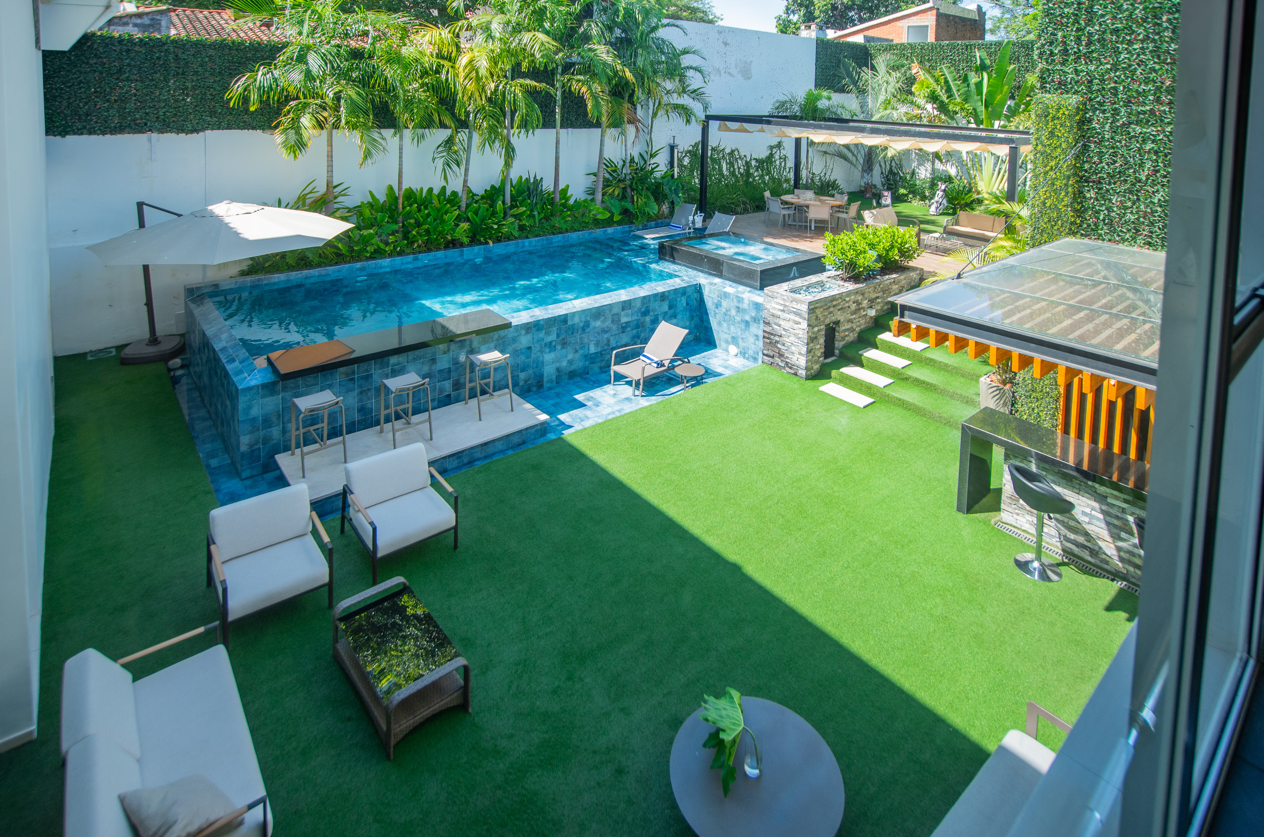 Located in the traditional Bernardino Caballero neighborhood of Asunción, this modern residence sits on a 756-square-meter lot, with 637 square meters of construction, distinguished by its spacious interiors, high-end equipment, and a design conceived for comfort and entertainment.