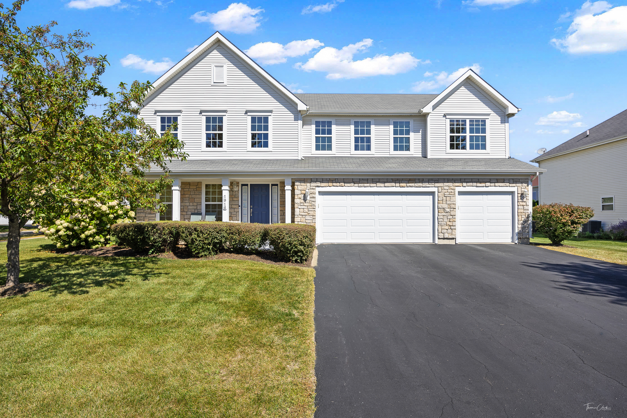 Beautifully maintained and exceptionally spacious home situated on a premium expansive corner lot. A welcoming entry opens to the formal living room featuring soaring two-story ceilings and an abundance of natural light, creating a bright and inviting first impression. The thoughtfully designed main level offers both comfort and functionality, including a large kitchen with an eat-in area, formal dining room perfect for entertaining, and a warm and inviting family room with a gas fireplace. A private first-floor home office, convenient powder room, and laundry room complete the main level. Upstairs, you'll find four generously sized bedrooms and two full bathrooms, including a spacious primary suite designed for relaxation. Recent updates include fresh paint throughout, new carpet in the family room and home office, a newly sealed asphalt driveway (2025), new garage doors and a new concrete walkway. The unfinished basement provides endless potential to create additional living space tailored to your needs. A three-car attached garage offers ample storage and convenience. This exceptionally well-cared-for home combines space, functionality, and pride of ownership - a rare opportunity you won't want to miss.