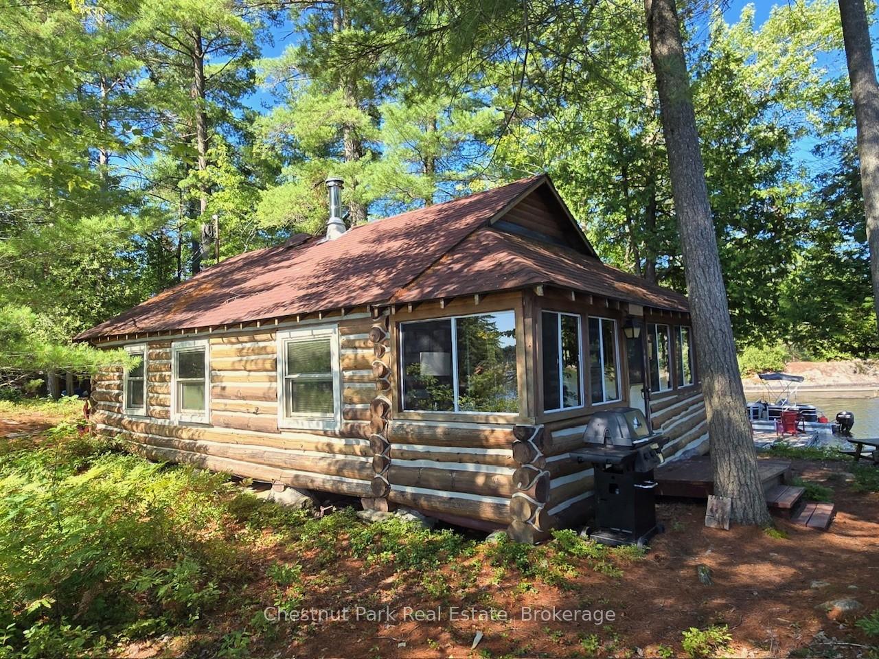 Along the scenic shores of Kahshe Lake in Muskoka lies a rare property with an iconic presence and 180 panoramic views. Set on a coveted point of land on Boyd Island, this appealing retreat offers all-day sun from east to west while being gently tucked into a quiet bay ideal for swimming, lounging, and lakeside living.Owned by the same family since the 1960s, this log cabin sits close to the water's edge with 1,050 feet of shoreline on 1.46 acres blending privacy, natural beauty, and potential for future development. Restored in 2014, the welcoming cottage was crafted to outlast the next generation. A WETT-certified wood stove brings warmth and ambiance to cooler days, while the classic Muskoka screened porch with sliding windows invites breezes and stunning views. Inside, the layout is functional yet flexible. The kitchen is separate but could easily be reimagined with an island that opens to the main living space. The inviting porch is the heartbeat of the cottage perfect for dining, reading, board games, or simply enjoying coffee or cocktails while taking in the sights and sounds of the lake. Accommodations include two main-floor bedrooms with closets, a sleeping loft with stairs, and a 3-piece bath. Offering a cozy, Hudson's Bay inspired log cottage feel, this cabin will charm those seeking a special cottage property. Just five minutes from two marinas, the property is easy to access while still feeling secluded. Whether basking in the sun, swimming off the point, or watching the seasonal colours reflect across the water, this property embodies true Muskoka cottaging, a rare chance to claim your own piece of paradise. Most furniture & Accessories. List to be provided.