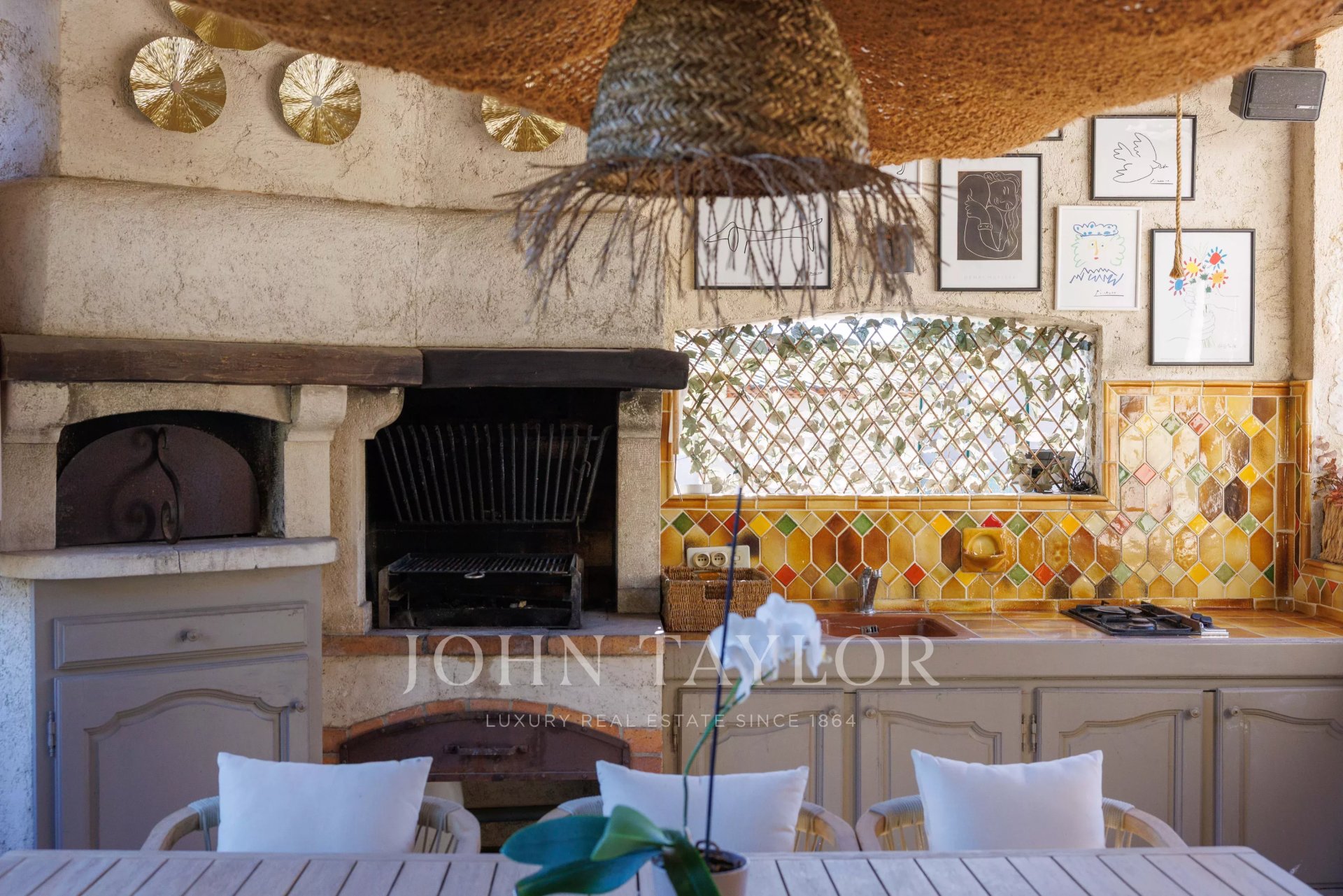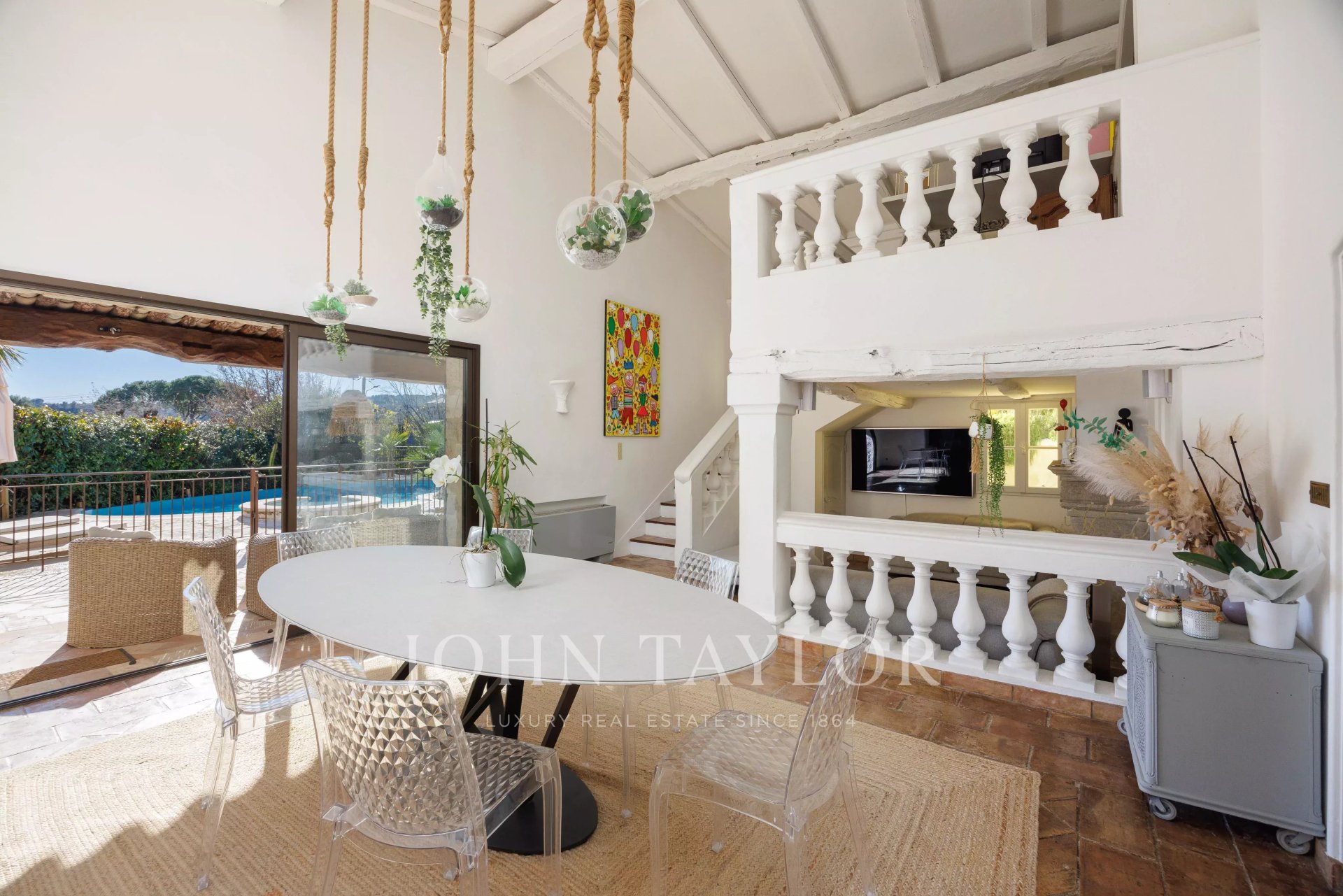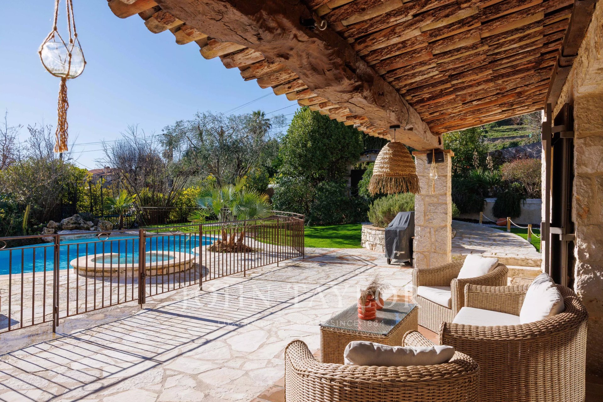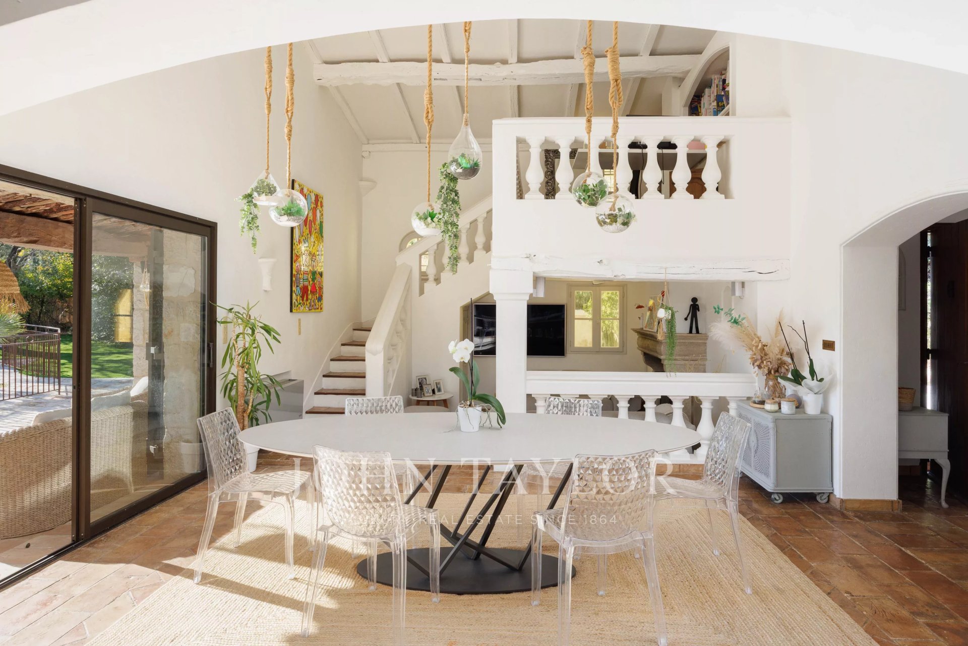 Located just a few steps from the village and yet in absolute calm, this property partially built with large stones will meet the needs of a large family or a family wishing to invest in a guest room activity.The main dwelling of about 170 m2, upstairs and yet on the ground floor with its private garden, consists of a beautiful entrance, a cathedral living room with fireplace, mezzanine, and open kitchen with utility room. Still without any stairs, the master bedroom benefits from a large bathroom, the other 2 bedrooms share a large shower room. Laundry room.This space benefits from a large private garden, in front of the living room, equipped with a beautiful summer kitchen with a covered terrace as well as an irregularly shaped infinity pool. Landscaped garden and noble materials!The intermediate space consists of a reception room with a kitchen as well as 4 beautiful suites with shower rooms. Also on the ground floor, this space has access to its private garden with a large terrace and a second pool.A separate small house houses the last and 5th suite of this guest area!Currently, this part of the villa is operated as a guest house. It could in the future accommodate a second family.Finally, on the garden level, there is a complete wellness area for 6 to 8 people with a large jacuzzi, a generous hammam, a sauna, a massage/changing room, and 2 showers.Currently, the spaces are separate but can be reconnected into a large residence if desired!