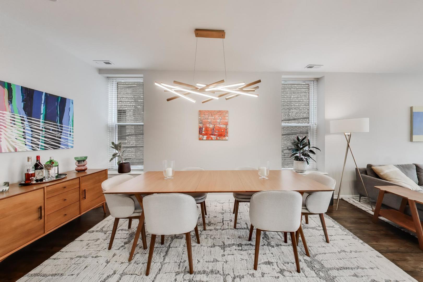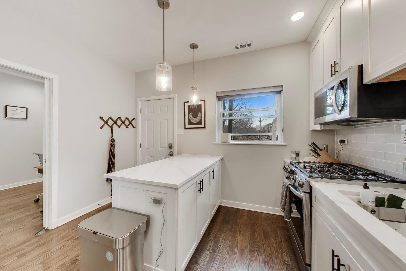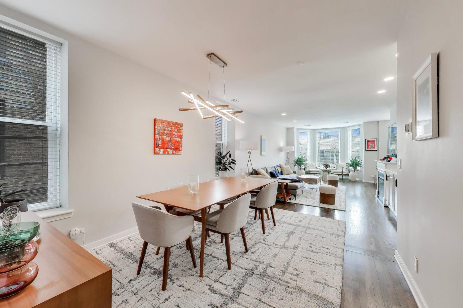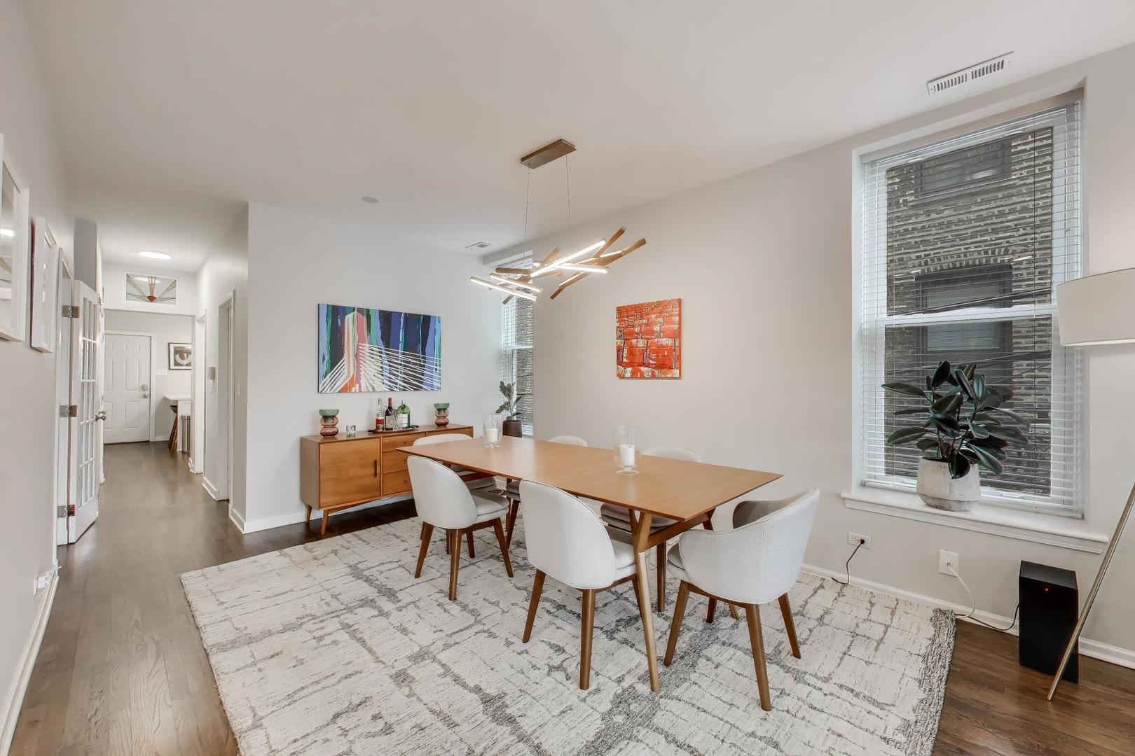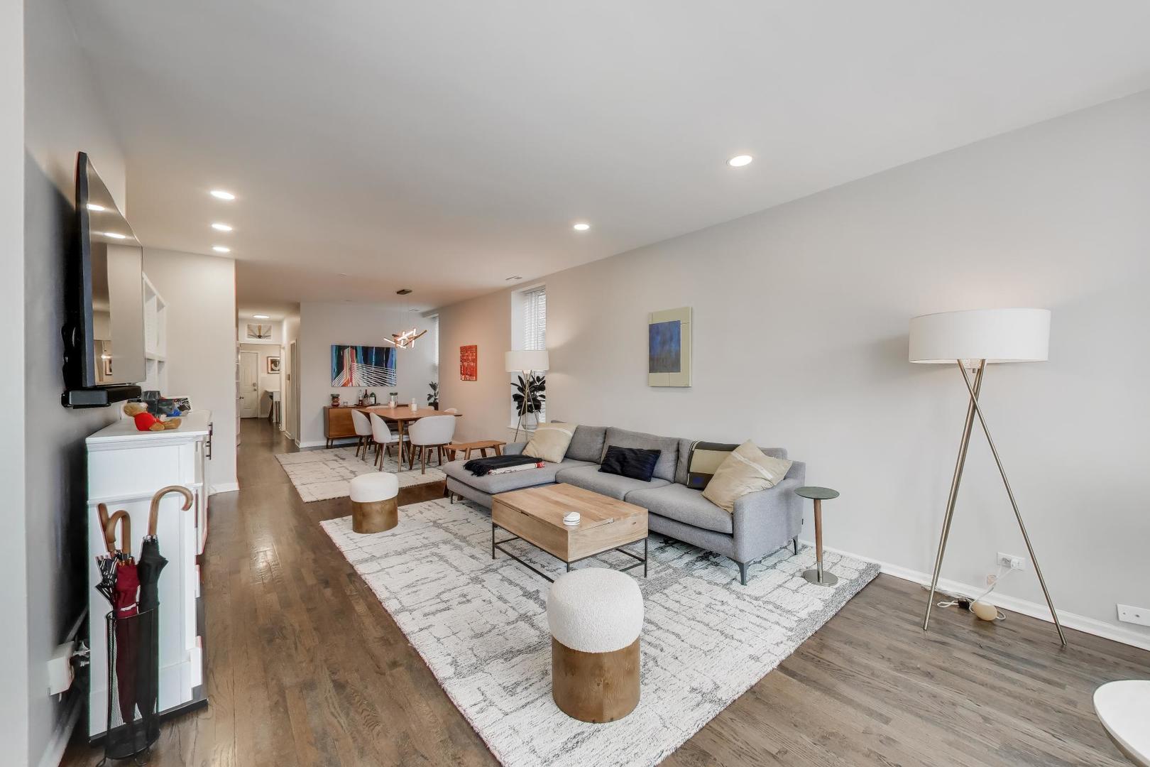 Bringing to the stage this beautifully updated 2-bedroom, 1-bathroom home in the heart of Lincoln Park. Ideally situated in the sought-after DePaul neighborhood, this impeccably maintained corner unit offers abundant natural light, high ceilings and hardwood floors throughout the main living spaces. The expansive living room flows seamlessly into a formal dining area, creating an inviting layout for both everyday living and entertaining. The renovated kitchen features white cabinetry, stainless steel appliances, quartz countertops and a peninsula with additional storage. The stylishly updated bathroom showcases tasteful tilework and a well-appointed shower. Both bedrooms offer comfort and functionality, while generous storage throughout, including a spacious walk-in closet, adds everyday convenience. Additional highlights include in-unit front-load washer and dryer, private deck and one included outdoor parking space. Recent improvements include all-new windows and additional hardwood flooring in the bedroom. Overlooking a beautifully landscaped common patio, this home offers the perfect setting for relaxing or entertaining outdoors. A truly move-in ready Lincoln Park residence with timeless appeal!
