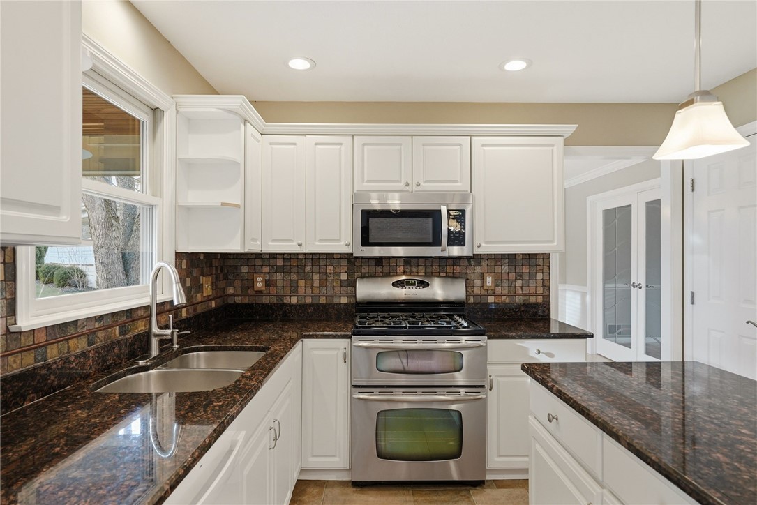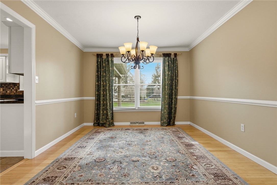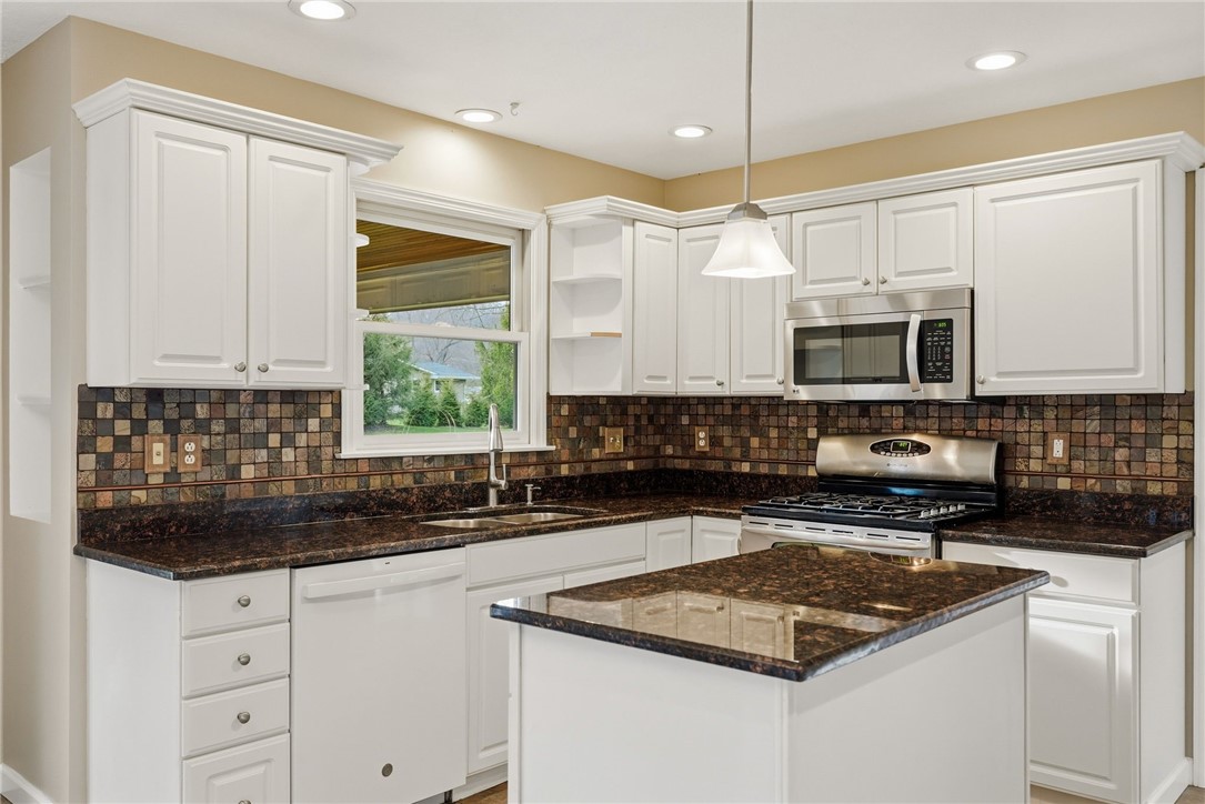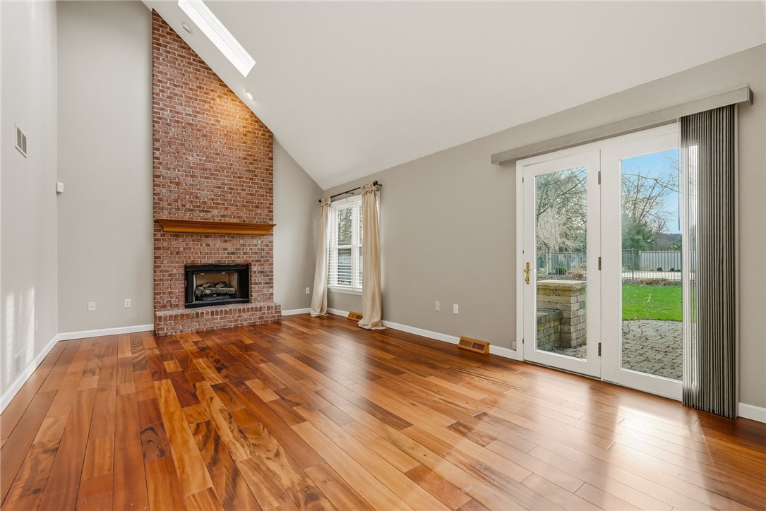 Welcome to Kimberwicke, a custom home, culdesac community where timeless design meets thoughtful updates. This beautifully maintained residence offers exceptional indoor and outdoor living, highlighted by a 40x20 inground saltwater pool complete with new saltwater chlorinator, pump and flexible safety cover - perfect for effortless summer enjoyment. This beautifully maintained home features a stunning kitchen with granite countertops, stainless steel appliances including double oven, and an ideal layout for everyday living and entertainment. French doors and light bamboo flooring connect the dining and living rooms while chair rail and custom trim add warmth and character throughout. Cozy up to the brick fireplace in the 2-story family room with Brazilian rosewood bamboo flooring and lots of natural light. The finished lower level offers incredible flexibility with a full bath, built-ins, storage, baseboard heat and a bonus room perfect for guests, office or fitness. Upstairs includes newer carpet, spacious rooms and closets and an updated primary bath with gorgeous tile and soaking tub. Enjoy outdoor living on the expansive covered brick patio with pillars, recessed lighting and ceiling fan, overlooking a private backyard. Newer furnace, AC and water heater plus fresh paint throughout make this home move-in ready, NO HOA FEE!!! Walking distance to Haine School, Graham Park and the Cranberry Municipal Building.