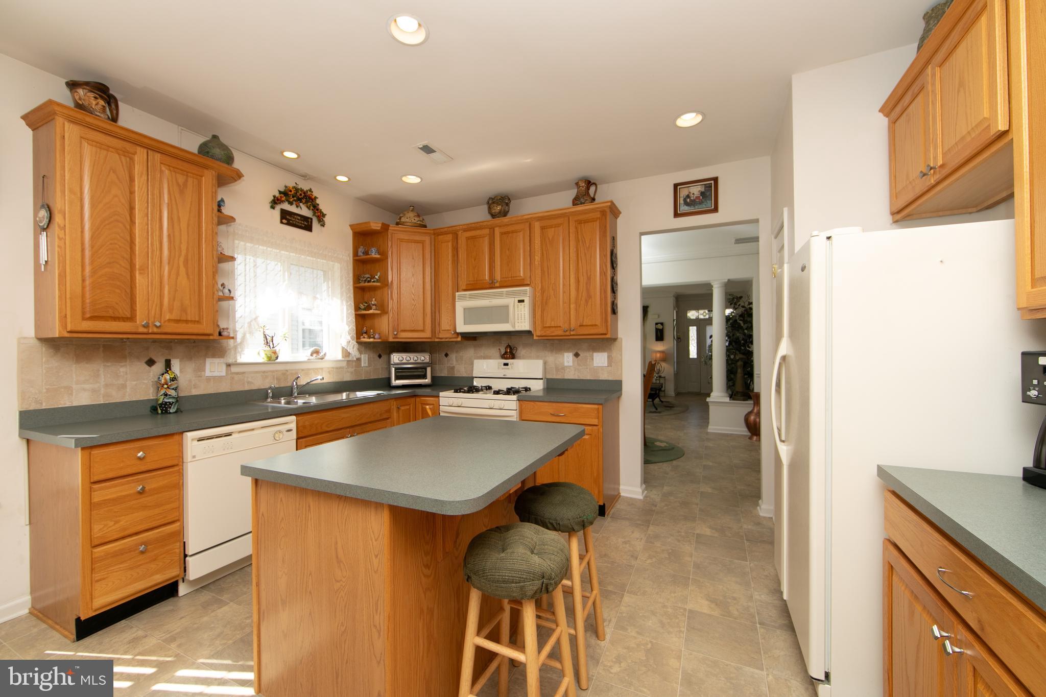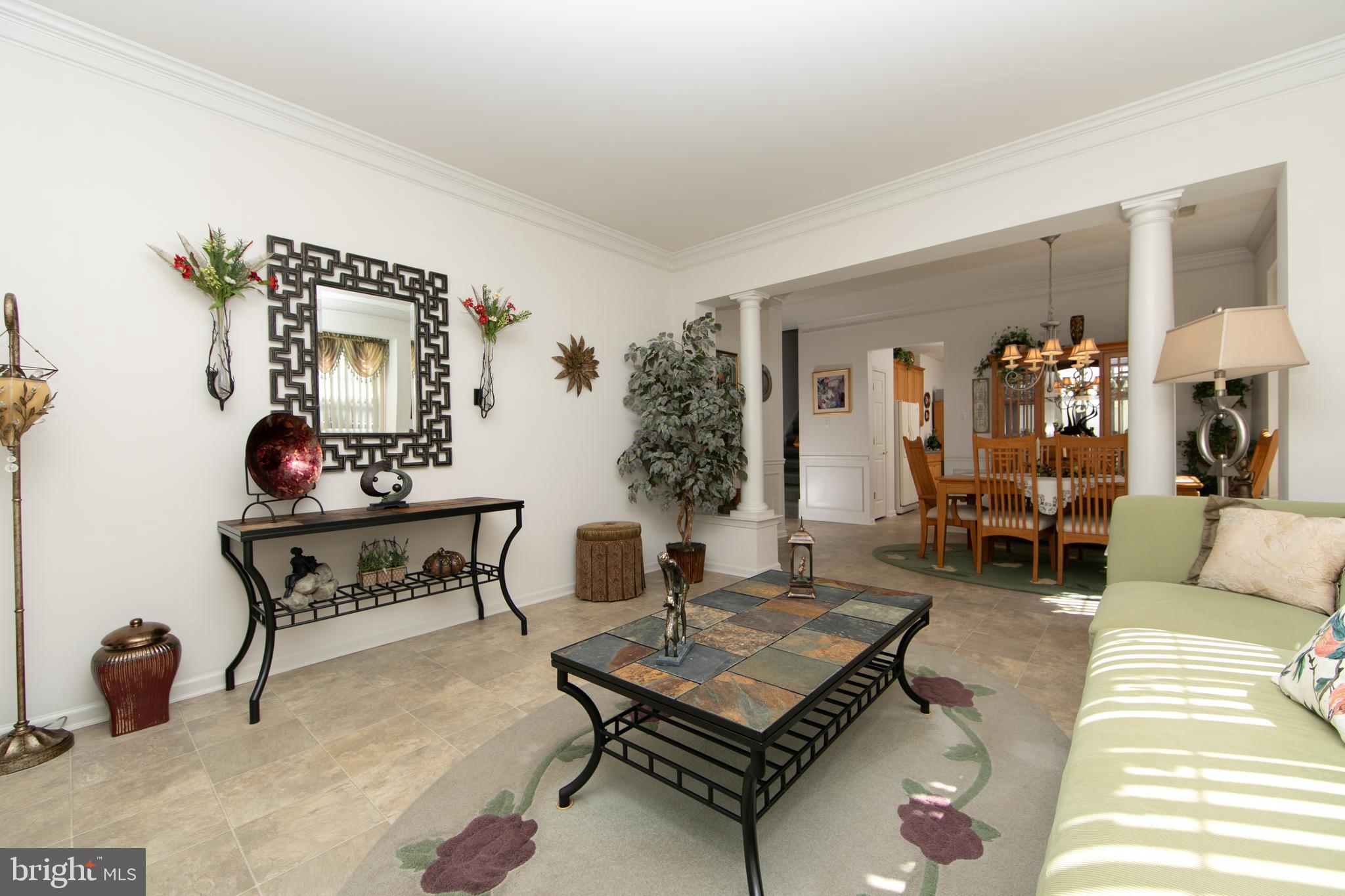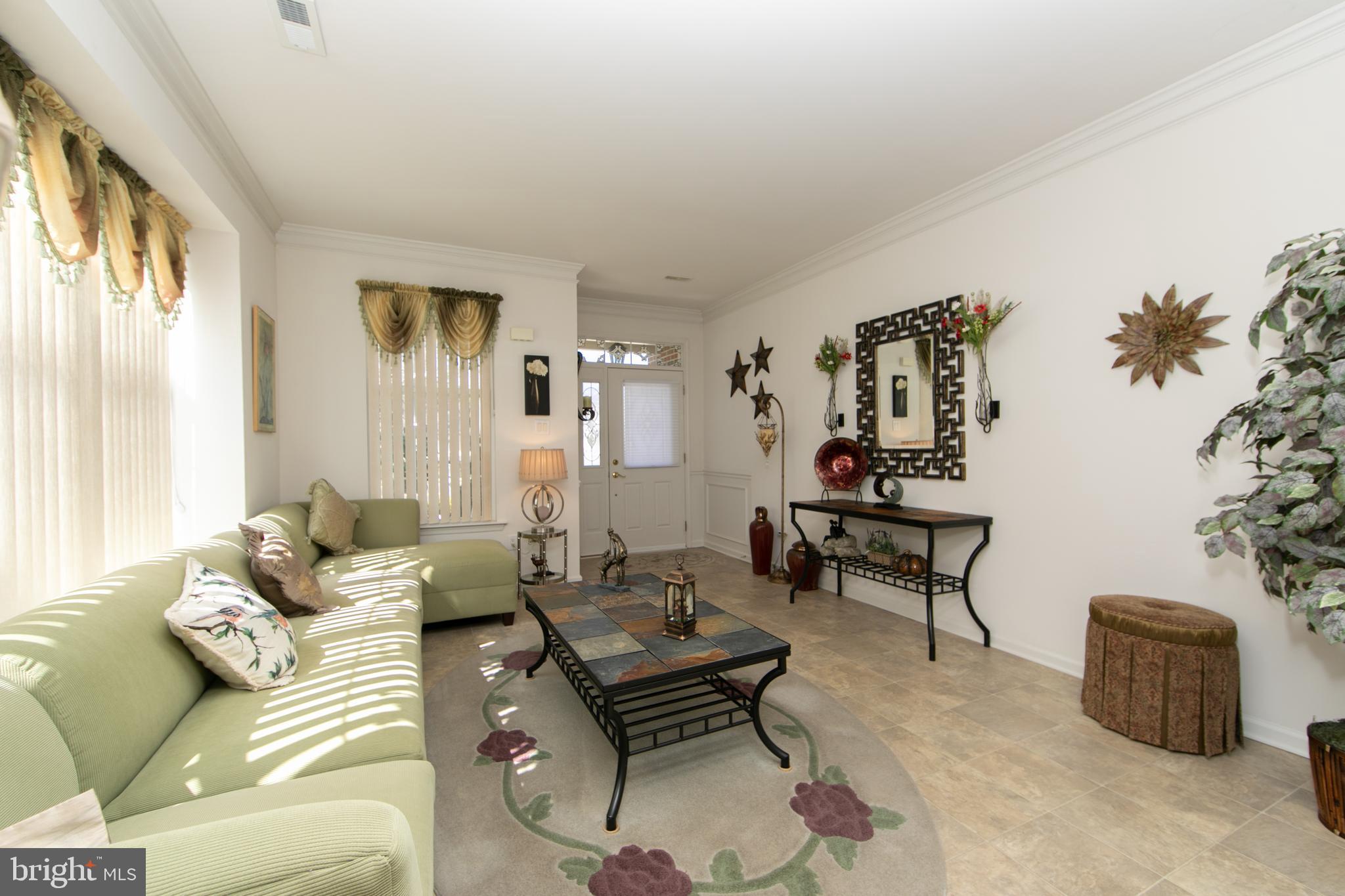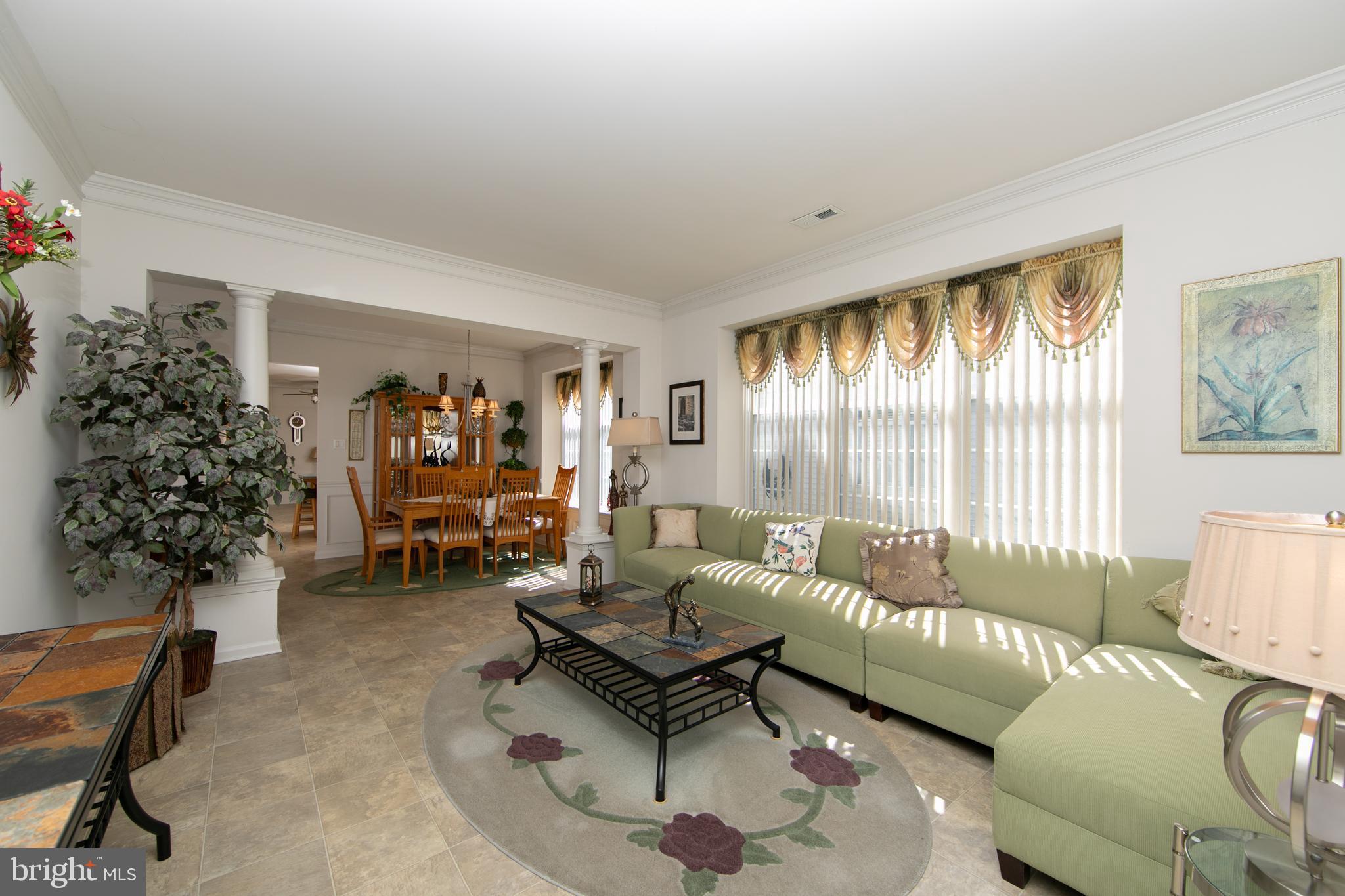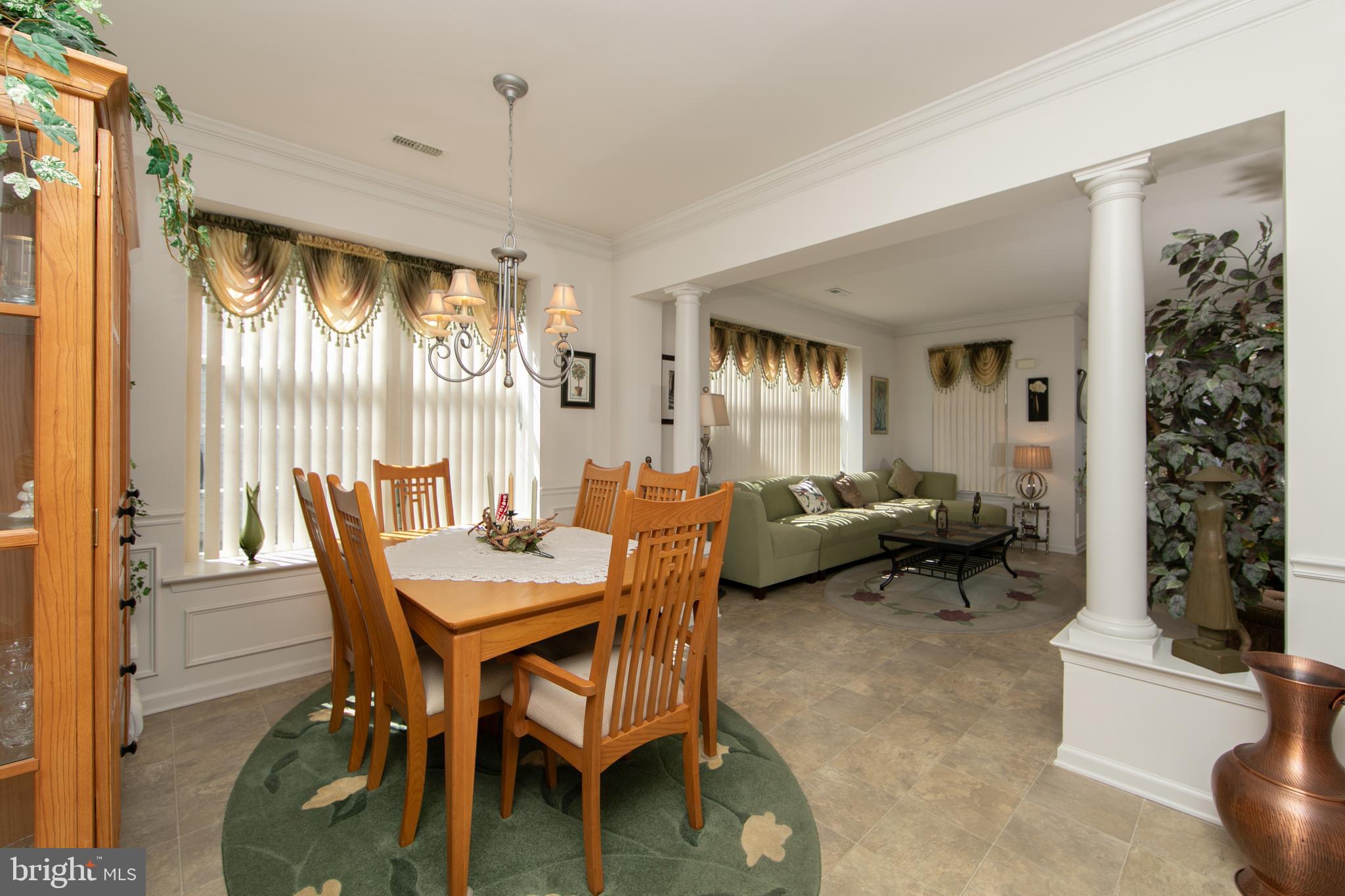 Welcome to this beautiful single-family home located in the desirable 55+ community of Leisuretowne, offering numerous amenities, including a clubhouse, tennis courts, and more. This stunning two-story residence offers comfort, style, and easy living. The main floor welcomes you with a bright and spacious living room featuring triple windows that fill the space with natural light and carefree vinyl tile flooring that continues through much of the main level. Elegant custom columns define the dining room, creating a perfect setting for entertaining. The dining area also features crown moldings and a charming boxed bay window, adding both character and warmth. The kitchen is truly the heart of the home, designed with both functionality and style in mind. It features a center island, an abundance of cabinetry, tiled backsplash, recessed lighting, pantry, and all appliances. The same easy-care vinyl tile flooring runs from the front entrance through the kitchen and into the family room. The kitchen opens seamlessly to the family room, creating an ideal layout for everyday living & gatherings From the family room, a door provides access to the rear patio, a relaxing outdoor space that backs to peaceful wooded grounds, offering privacy and a serene setting. The primary bedroom suite is conveniently located on the main level and features a large boxed window that fills the room with natural light, adding to the bright and airy feel throughout the home. The primary bath completes this comfortable retreat. Bedroom two is also located on the main level, along with an adjacent full bathroom. A laundry room on the main floor adds everyday convenience. Ascending to the second floor, you'll find an additional bedroom/loft area with a full bathroom and an oversized closet, making it the perfect private space for visiting guests. Additional highlights include a welcoming front porch and a two-car garage. This home truly offers the perfect combination of space, light, and low-maintenance living in a vibrant community setting.