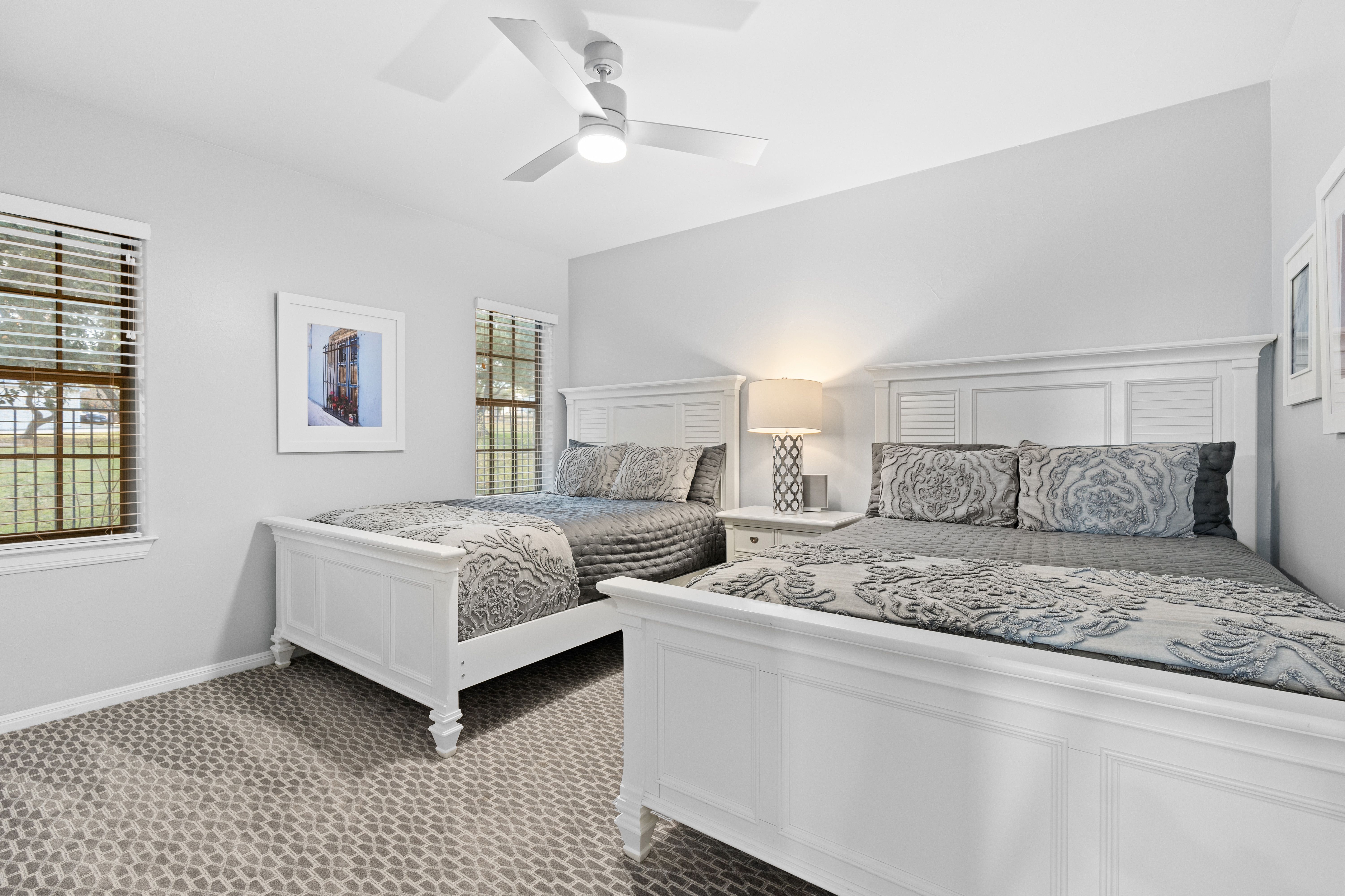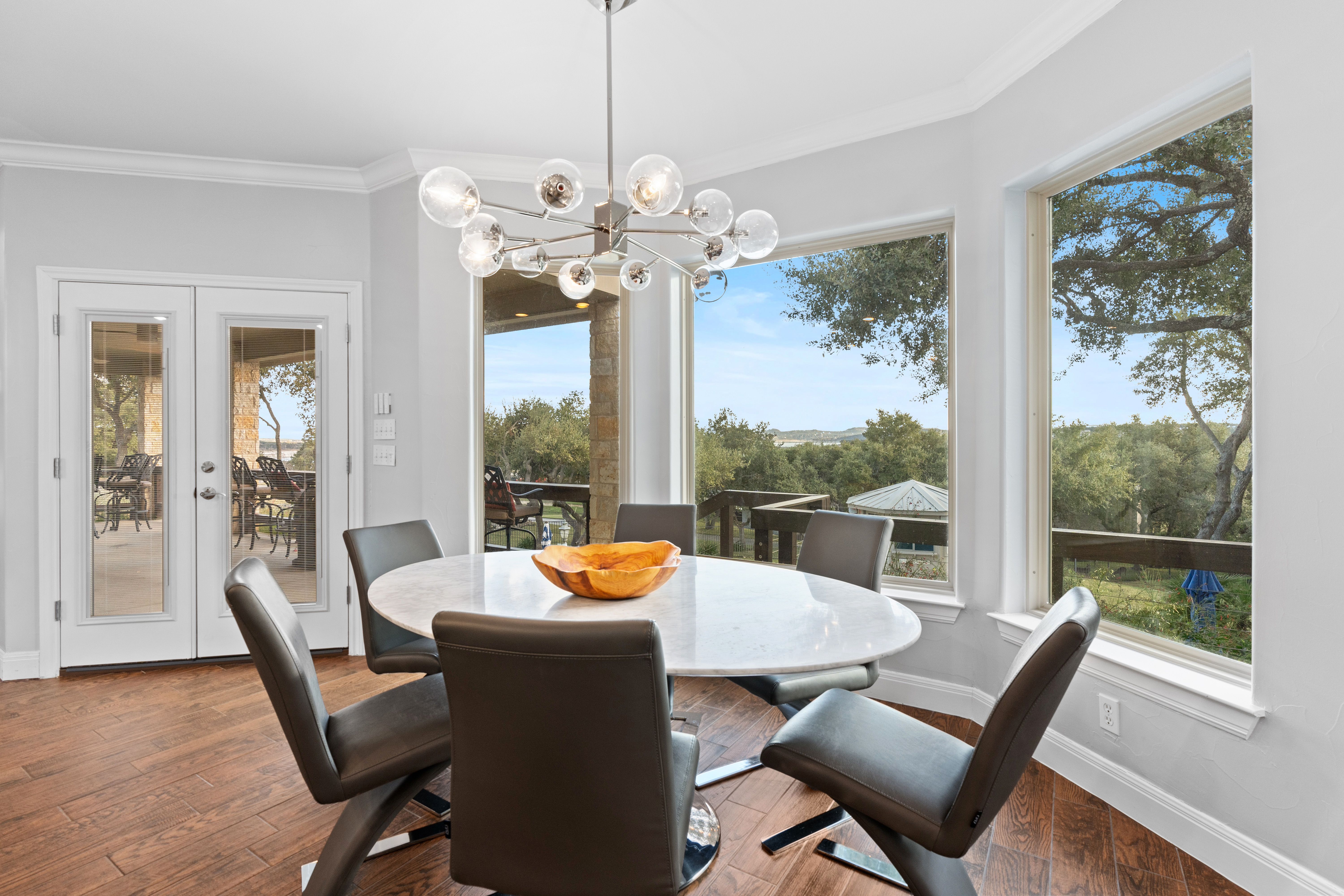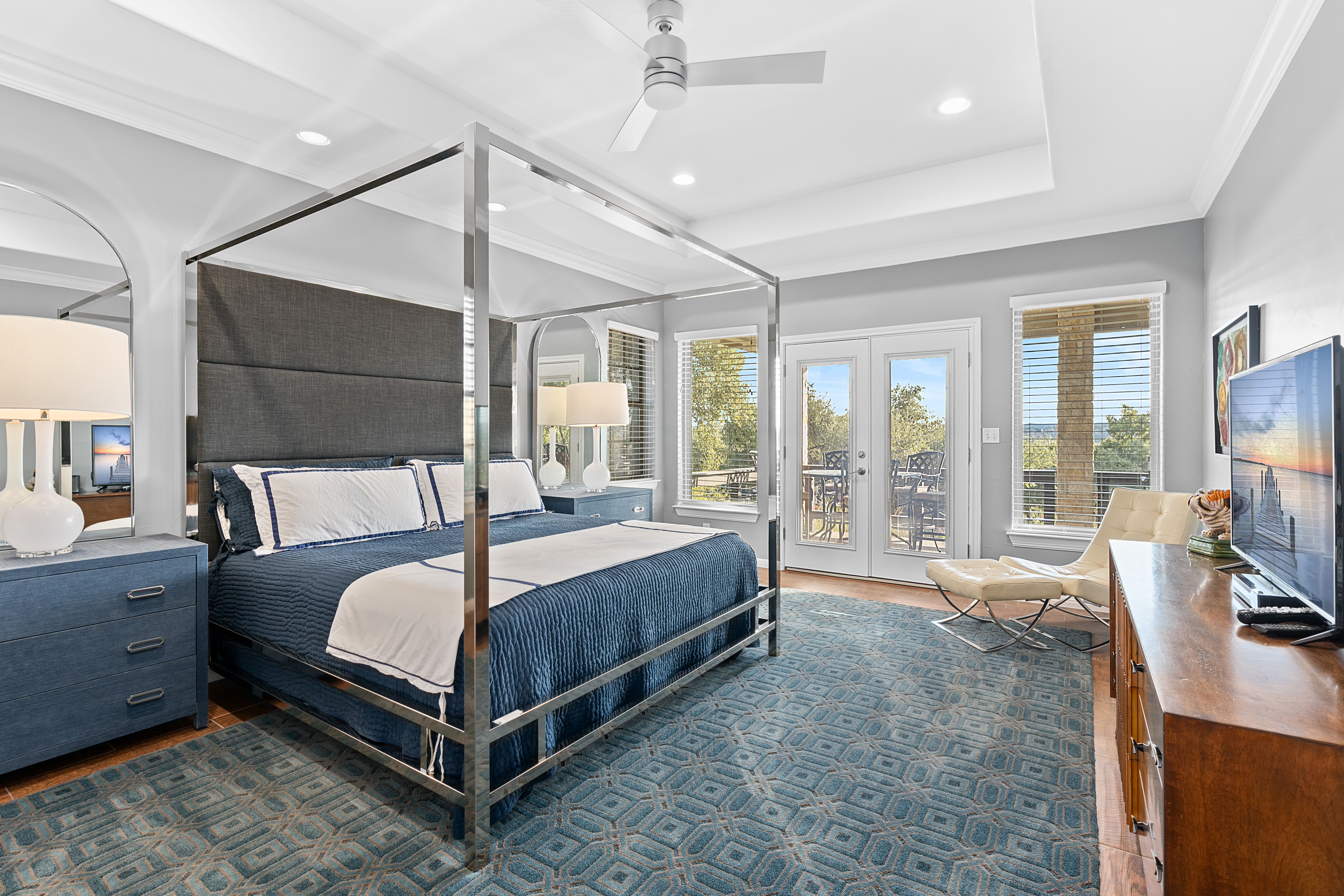 Welcome to your lake-view retreat on a rare double lot, where resort-style outdoor living and move-in ready updates come together to create the ultimate Canyon Lake lifestyle. Recently remodeled and designed for modern living, this open-concept home features a beautifully updated kitchen with generous workspace, stylish finishes, and seamless flow into the dining and living areas—perfect for everyday living or entertaining guests. With 4 spacious bedrooms, 2.5 baths, and a dedicated home office, this home supports today’s remote work and flexible living needs. The primary suite offers a private escape with double vanities, walk-in shower, freestanding soaking tub, and French doors leading directly to the outdoor living space. Step outside to experience what today’s buyers are searching for—a private backyard oasis featuring a luxury in-ground pool, expansive covered patio, and breathtaking lake views from multiple vantage points. Whether hosting gatherings or enjoying peaceful evenings, this home delivers true indoor-outdoor living. Additional highlights include three-car garage, high ceilings, mature trees, water access, and no city taxes, making this property both functional and lifestyle-driven. Ideally located with convenient access to both Austin and San Antonio, it's the perfect blend of lake living, modern comfort, and everyday convenience.