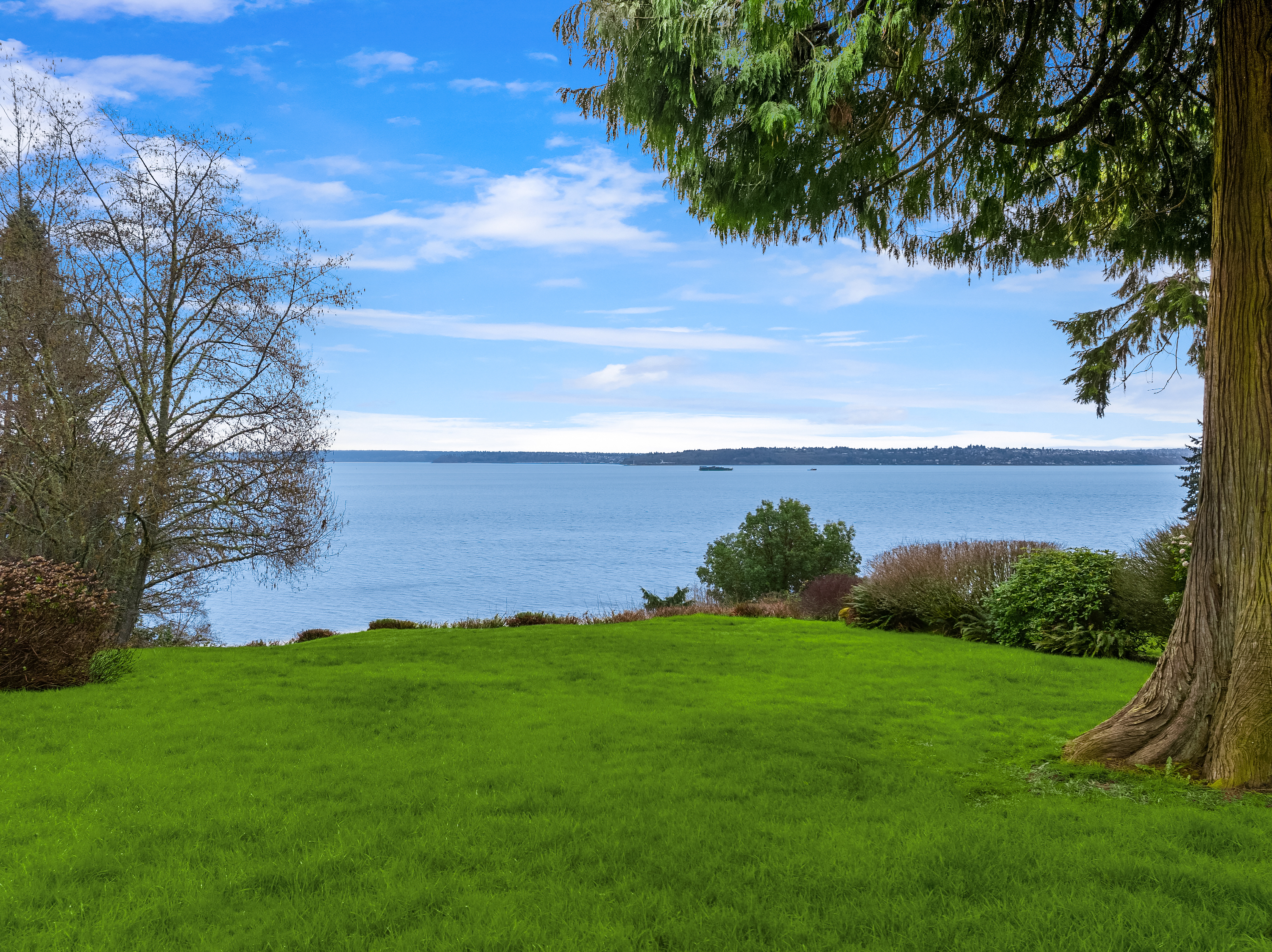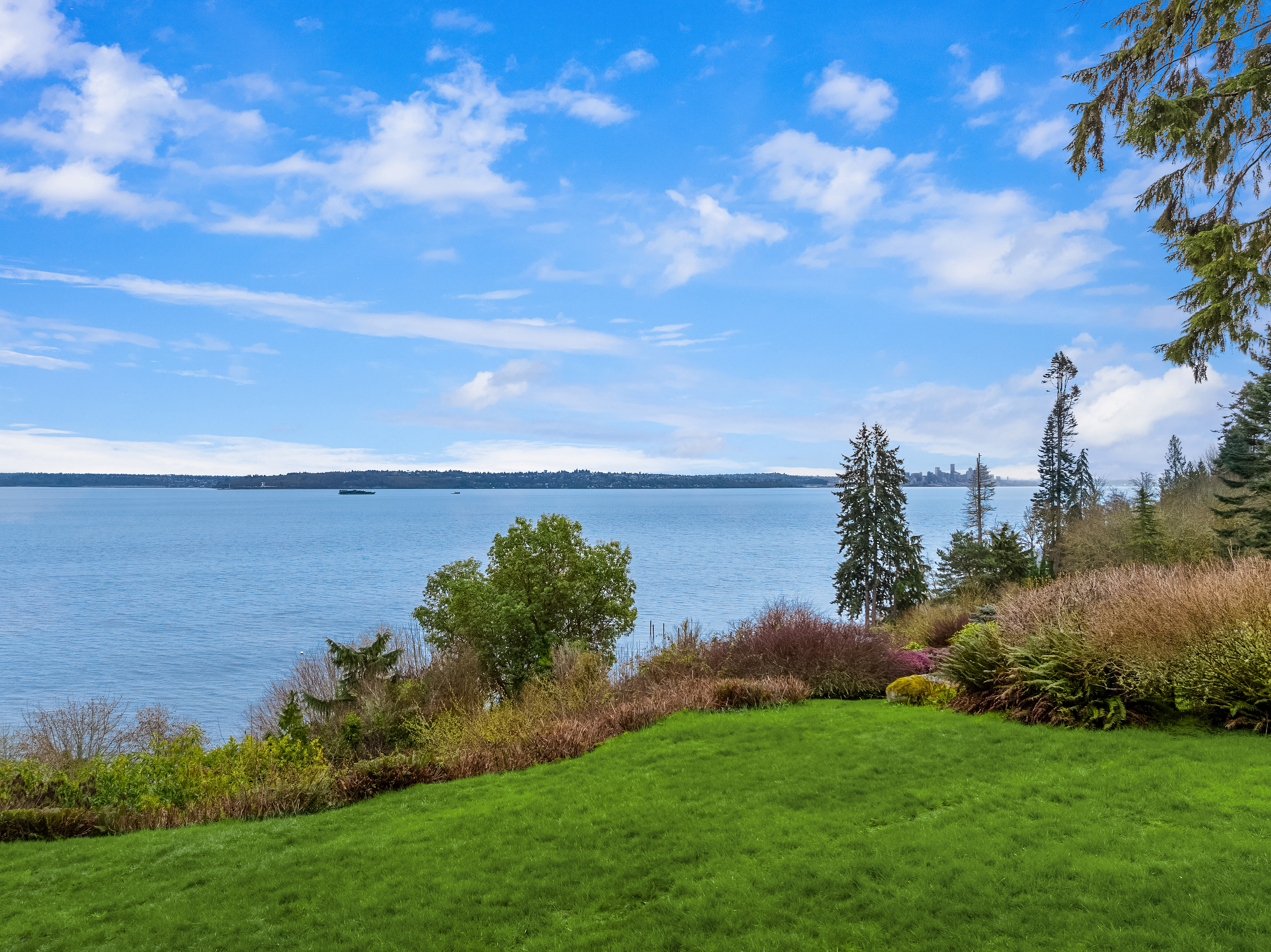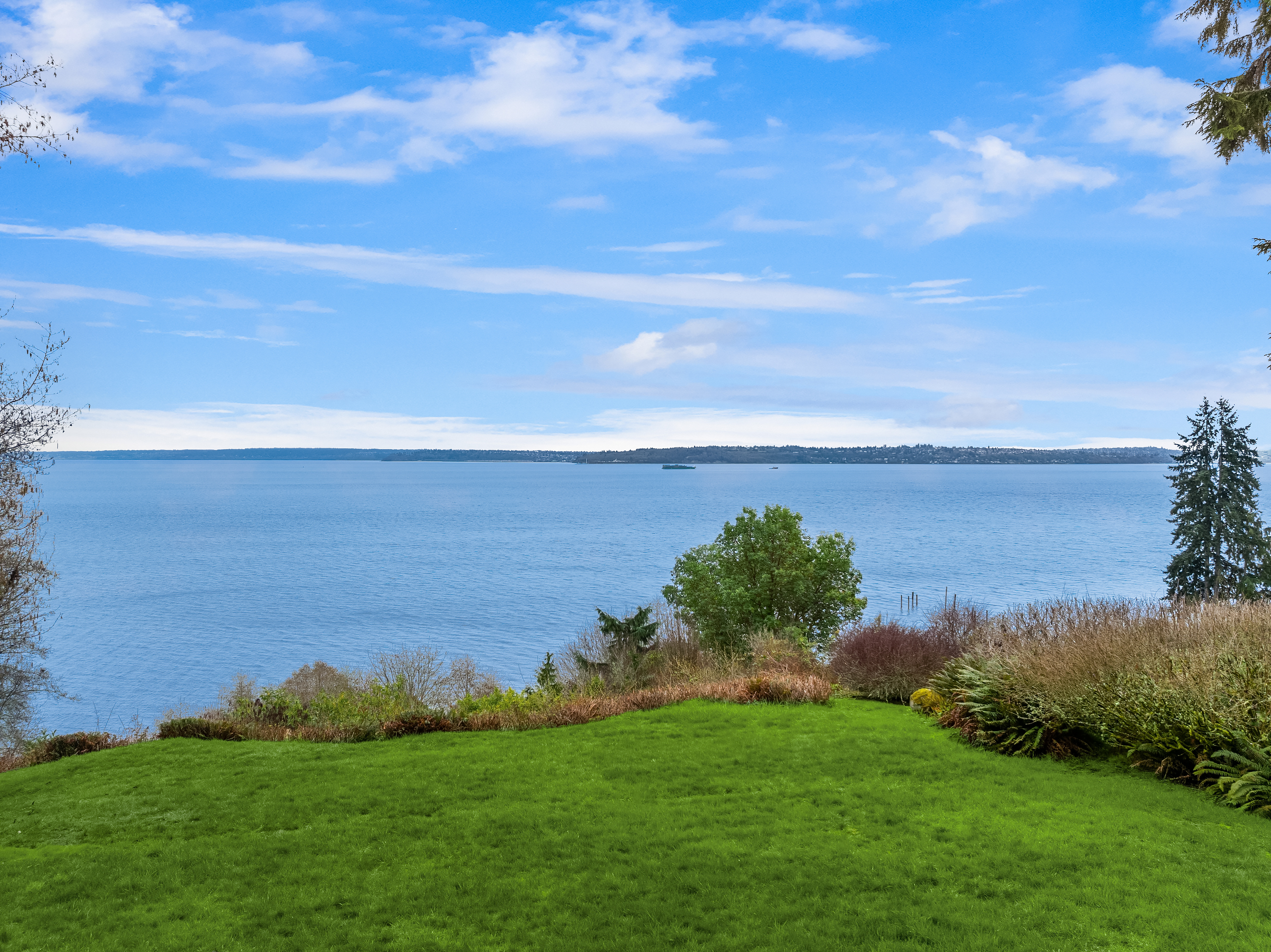 Grand Avenue private waterfront retreat on a generous 1.27 acre lot. Take in the 100’ of high-bank waterfront and dramatic sweeping views of Downtown Seattle, Puget Sound, Mt. Baker, and the Cascades. Sought after one-level living with primary on the main, and open light-filled spaces, a chef's kitchen, view loft and daylight flex room with fireplace and cozy Swedish built-in beds. Enjoy the expansive decks on both sides offering seamless indoor/outdoor flow and all-day sun. Surrounded by lush Northwest grounds and a tranquil water feature, this serene home feels worlds away—yet is just minutes from downtown Winslow and the Seattle ferry. Newer heat pump and generator connected.