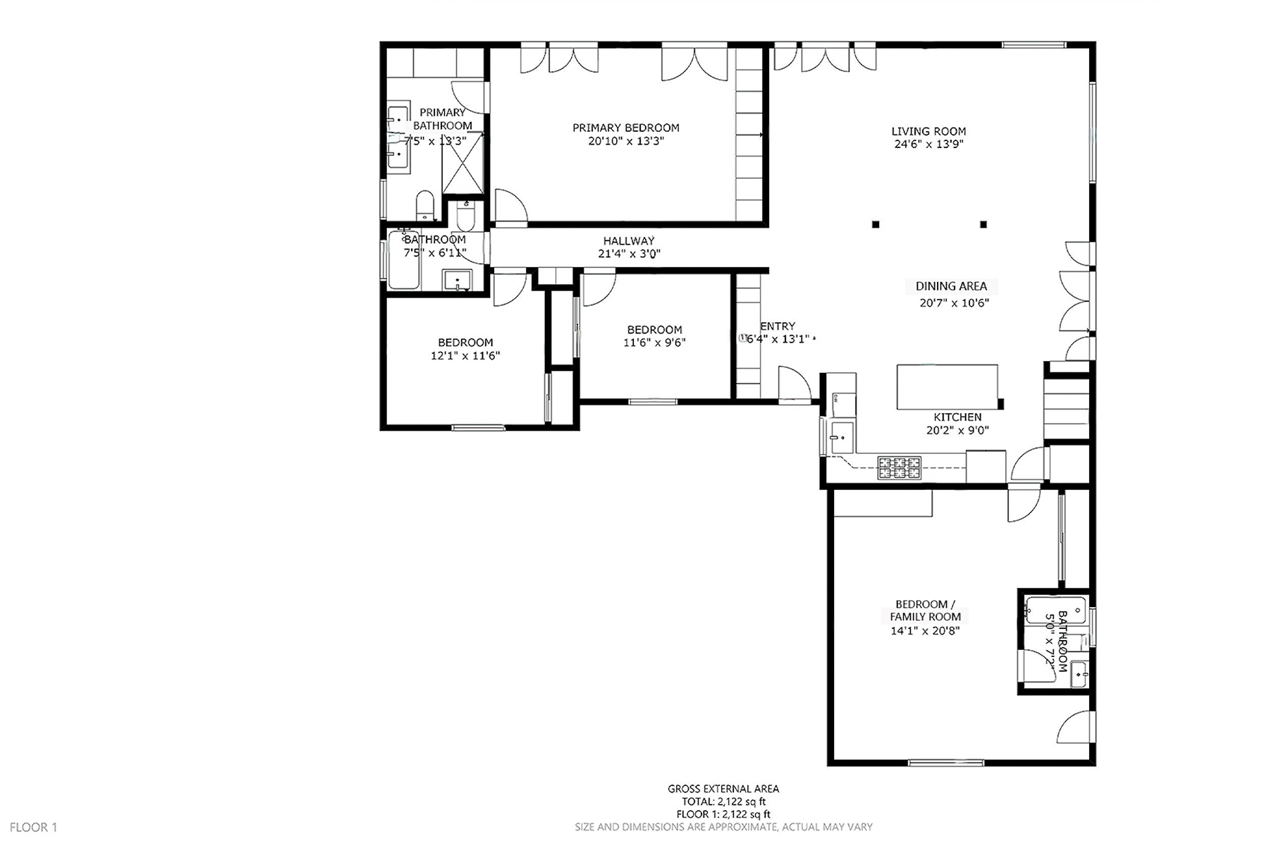 Spanning approximately 2,122 square feet, the home offers four bedrooms (alternately, a family/media room) and three baths arranged within a light-filled open floor plan. The kitchen and great room form the heart of the home, creating a welcoming space for everyday living and gathering.