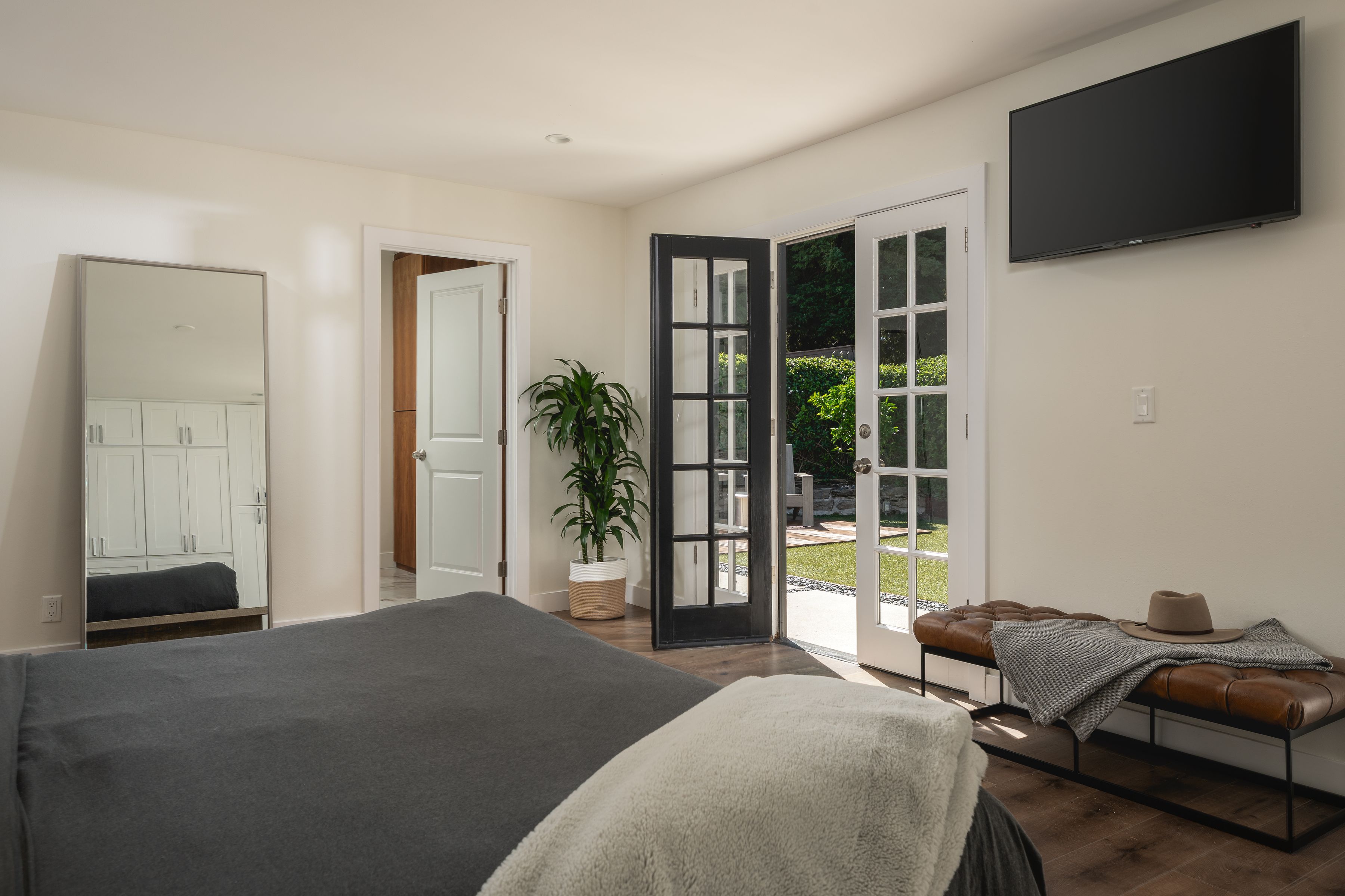 Originally built in 1963, the home has undergone a comprehensive renovation and expansion, resulting in a refined single-level residence with updated finishes, all-new appliances, owned solar energy, numerous system upgrades, and beautifully redesigned indoor and outdoor living spaces.