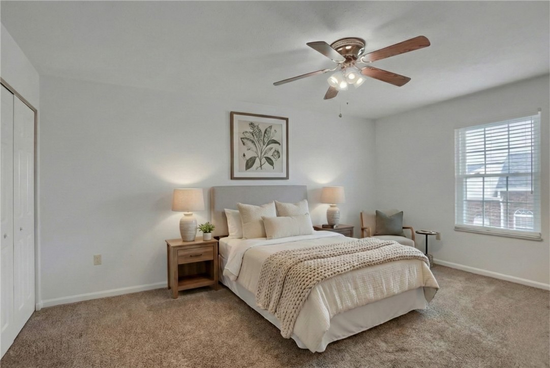 Move right in to this well maintained 3 bedroom, 2 1/2 bath end unit. Many recent updates include newer front porch/steps, LVP throughout first floor and lower level, newer windows and sliding door. The entire townhouse has been freshly painted and all carpets professionally cleaned. Newer stainless appliances highlight the spacious kitchen along with a large pantry with laundry hook-ups. Owners suite has two double closets, full bath and ceiling fan. Two additional bedrooms, hall bathroom and hall closet complete the second floor. The lower level flex space features fresh paint and new LVP flooring, offering a versatile area ideal for a home office, cozy retreat, or entertaining space. Step outside the first floor slider to the low level deck and level backyard. This end unit has a one car garage and is next to the visitors parking area. Conveniently located near Robinson shopping, dining and Pitts Int'l Airport. HOA covers roof, gutters, exterior, lawn care and snow removal of street.