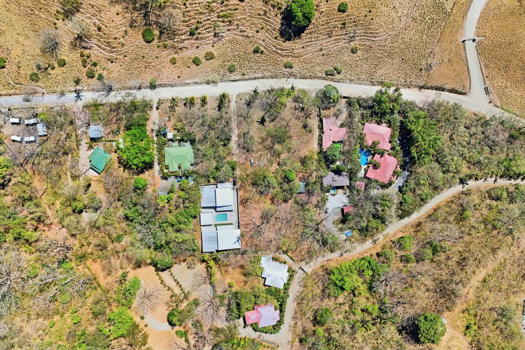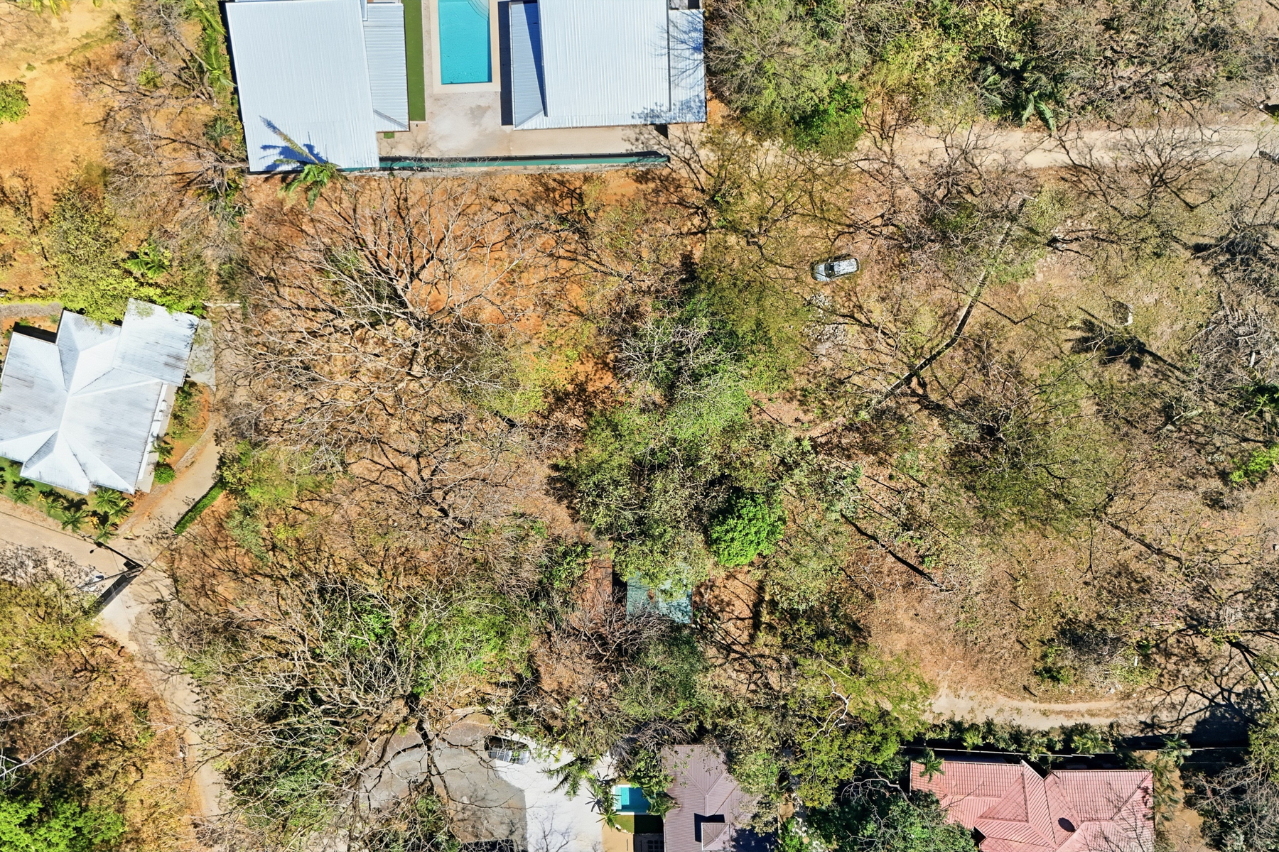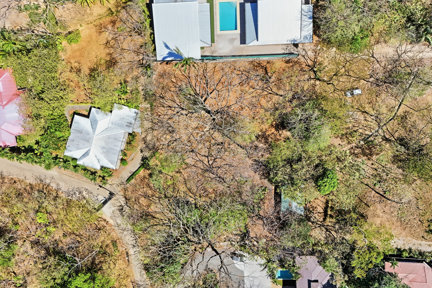The property is flat, bordered by established residential homes, and sits within a calm, safe neighborhood. A mature Guanacaste tree anchors the north end of the property, providing natural shade and a natural centerpiece for outdoor living.