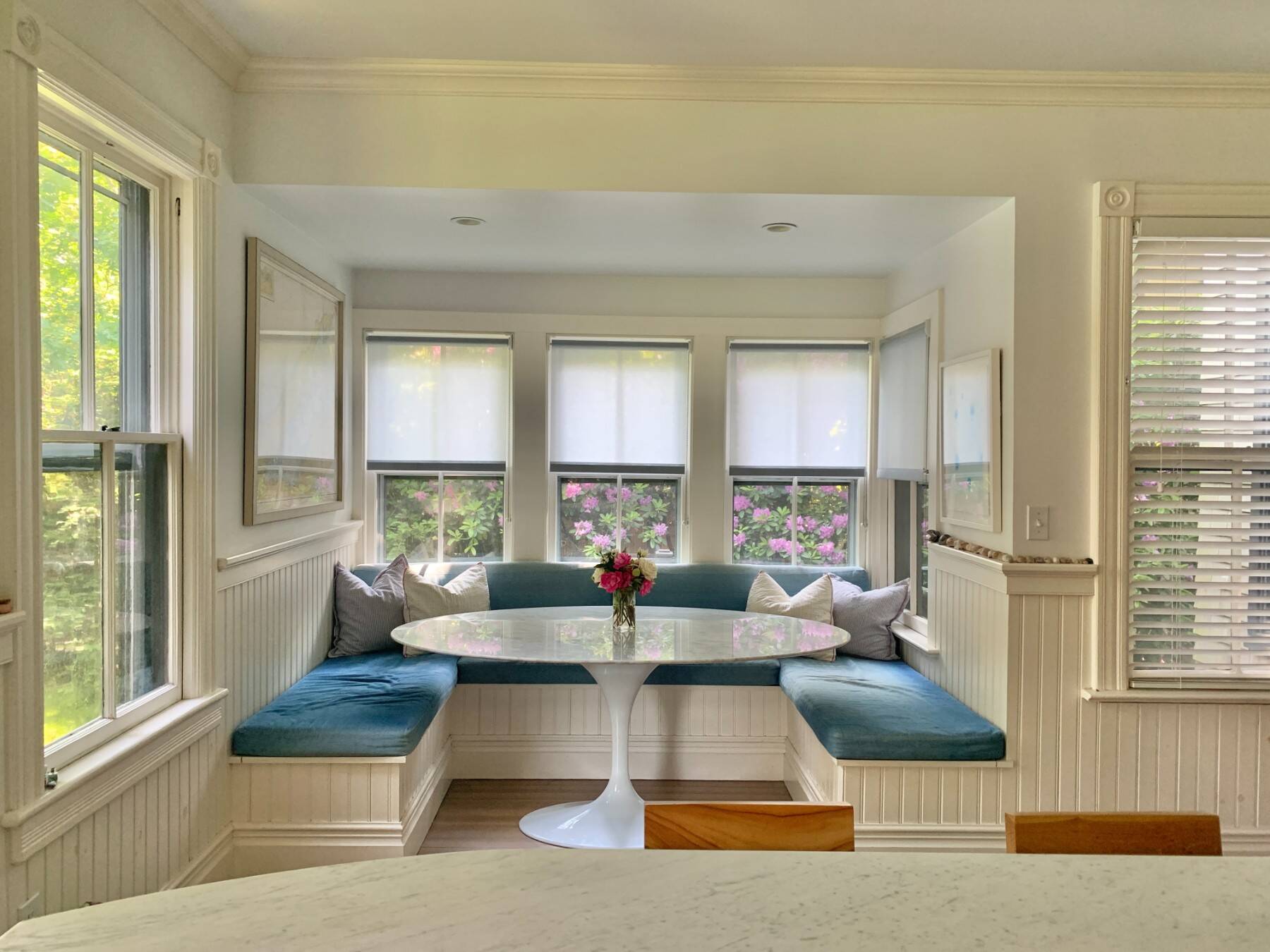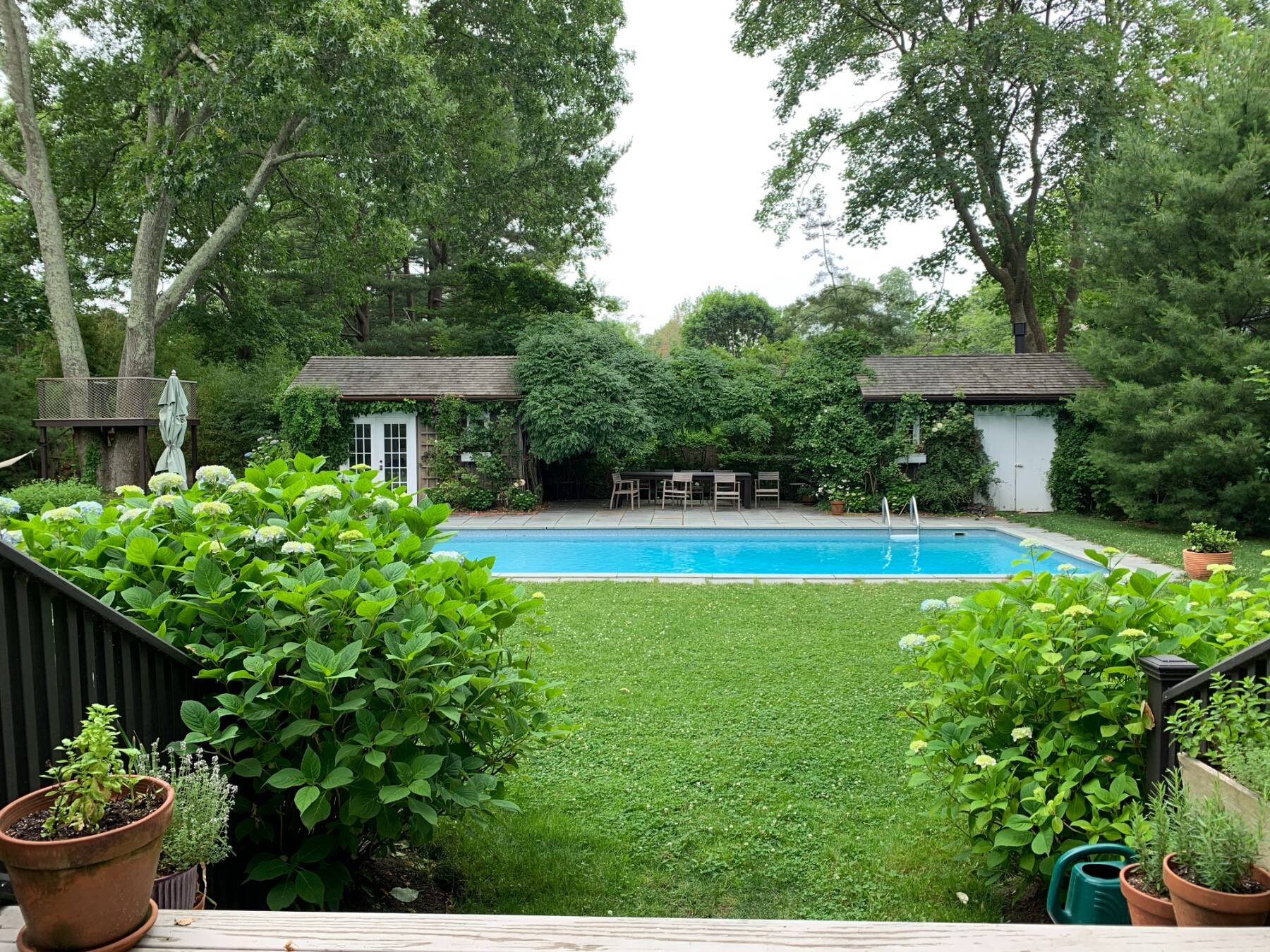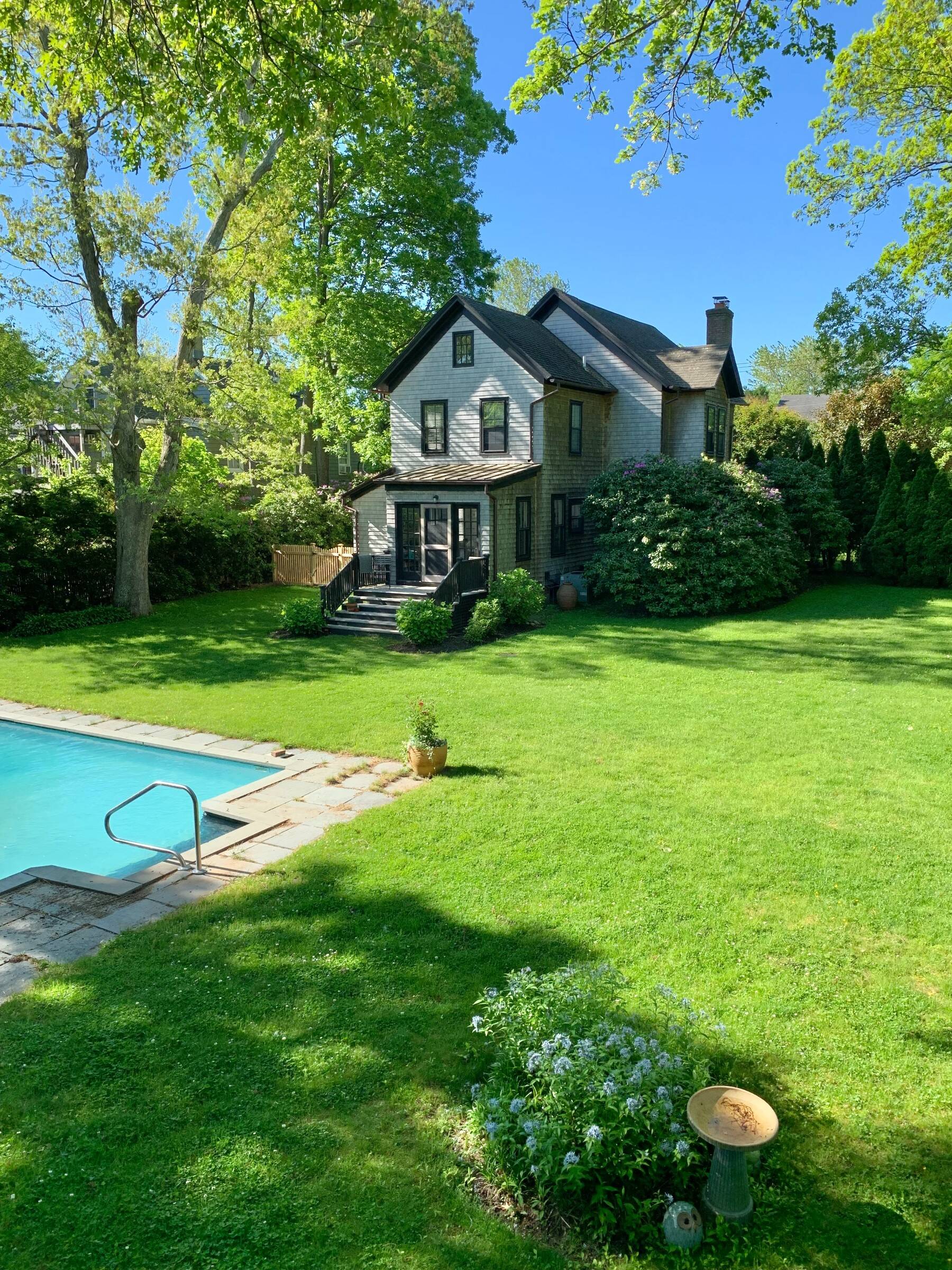 Updated Historic in the Village and close proximity to Bay Beaches. Consider this your home away from home in Sag Harbor Village, a relaxing respite and perfect for entertaining. You'll find comfort and sophistication in this historic, contemporary home. Filled with natural light, you're nestled away from the street and situated in nature, so even though you're in town it's easy to forget with the flora and fauna surrounding you. With 4 bedrooms, 2 full baths, 2 half baths, and a private outdoor shower, you'll also find an impeccably maintained rear lawn with heated salt-water pool, hammock and a spacious outdoor dining area on the back deck connected to the kitchen, perfect for taking in the morning. The main floor features a freshly remodeled state-of-the-art gourmet kitchen with marble counters, a center island with stools, and a cozy breakfast nook that seats up to 6. Alongside is the dining room that seats up to 10, laundry, and the living room with a gorgeous fireplace, flat screen TV, bay window seat, and built in bookcases filled with a photographic library framing a Steinway piano. The living room opens onto an enclosed front sitting porch with ceiling fans. A half bath with pocket door and a light-filled playroom complete the first floor. The second floor includes a primary suite with queen bed, sitting area and ensuite bath with glass-enclosed shower. Connected but still private is a bedroom with twin beds (can be exchanged for full and twin or crib as needed). A third, sunny bedroom has a full size bed and antique desk. A separate full bath accessible from the hallway rounds out the second floor. The third floor features a huge room with 2 twin beds (can be pushed together to make a king), a Mid-century modern daybed, a desk and a private half bath. A *rare* find in Sag Harbor Village - Enjoy your home away from home as you relax by the pool and garden, entertain and dine al fresco (the outdoor table sits 14 comfortably!) surrounded by twinkling lights, wisteria vine, cedar, and slate. The property is situated in a perfect location-a few blocks from Havens Beach and close to cinema and shopping on Main Street.