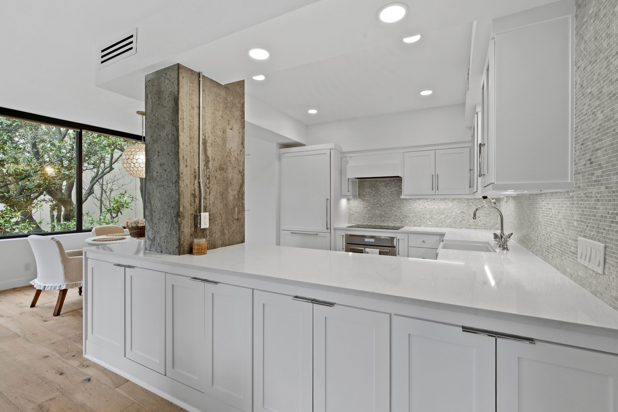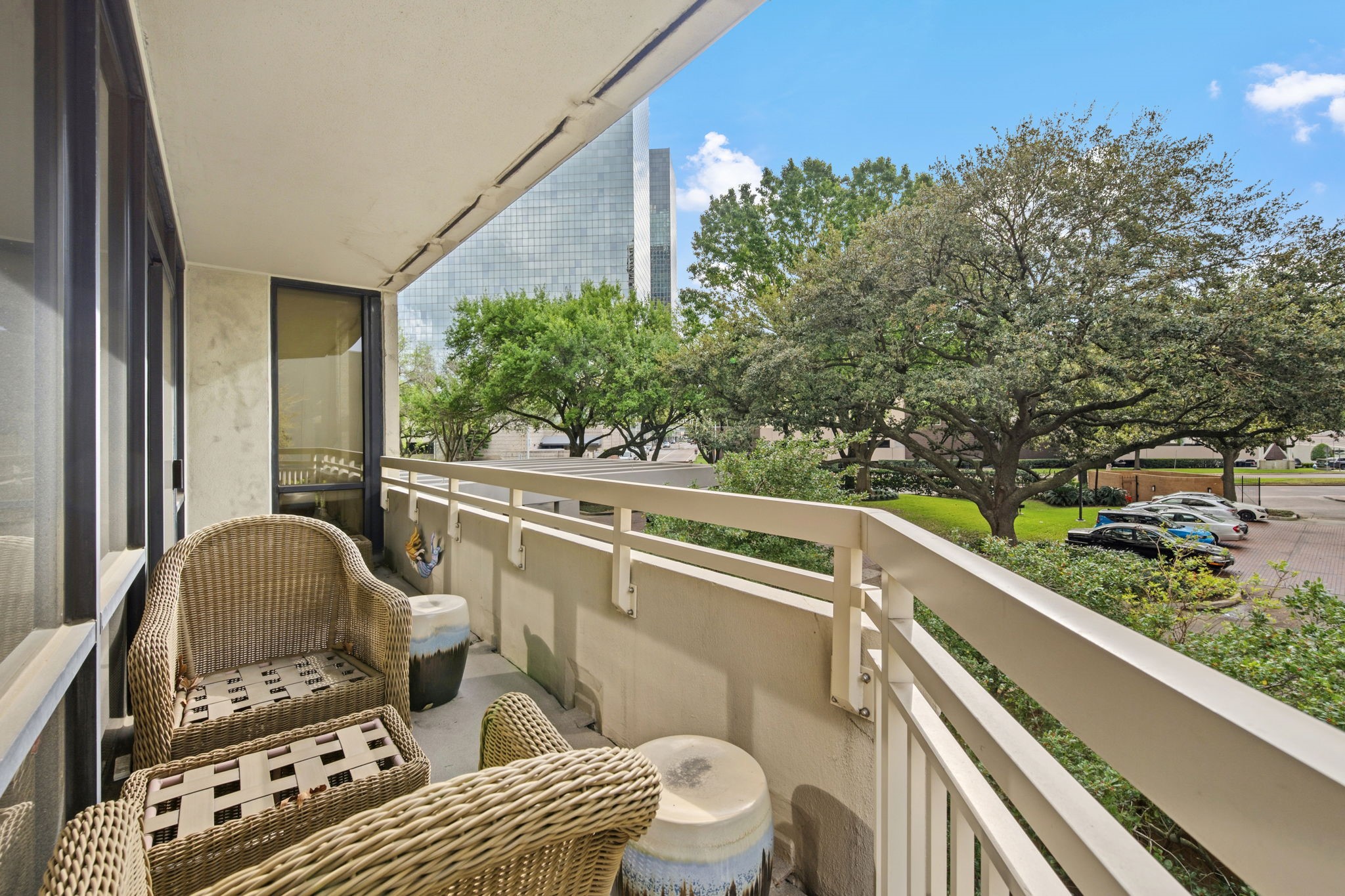 Beautifully updated corner unit in The Greenway featuring tree-top views and a functional, open layout. This 2-bed, 2-bath residence includes an updated kitchen with contemporary finishes, a paneled refrigerator, and an open connection to the living area. Both bathrooms feature elegant herringbone tile flooring. The primary suite offers a spacious walk-in closet, while the secondary bedroom provides flexibility for guests or workspace needs. Additional features include a private balcony, in-unit storage closet, and two reserved parking spaces. The Greenway’s premier services—valet, doorman, porters, 24-hour security, and a heated pool—offer an effortless, luxurious lifestyle. Ideally located near Downtown, the Medical Center, Highland Village, and The Galleria, this residence provides an exceptional lock-and-leave experience in one of Houston’s most desirable high-rise communities.