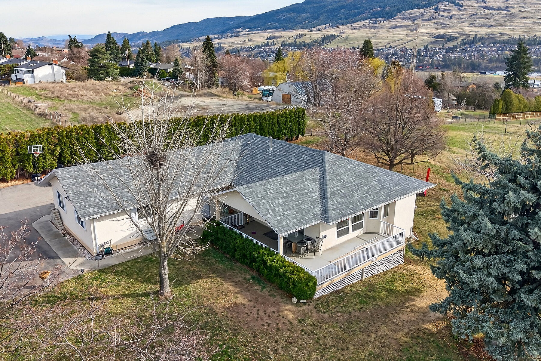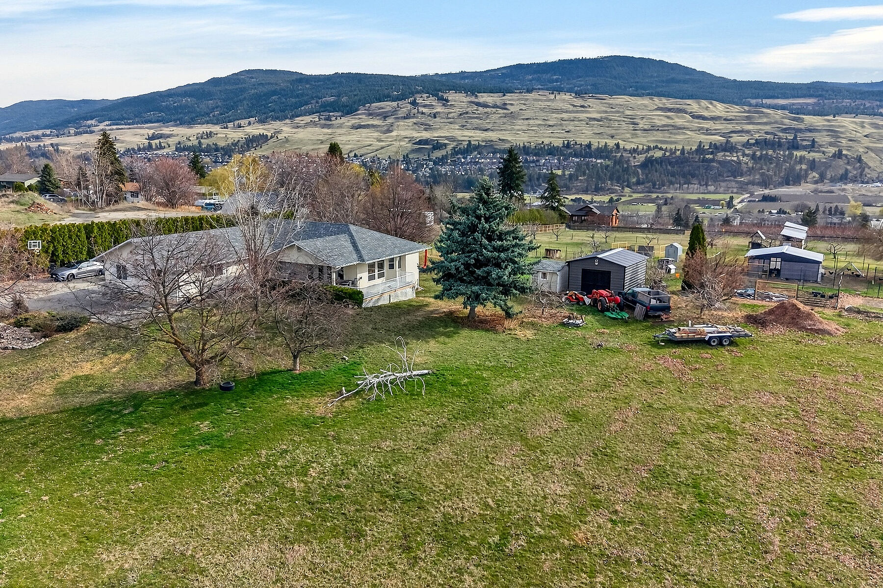 Your Dream Hobby Farm Awaits in Lake Country! This is the property you’ve been looking for! Experience the ultimate rural lifestyle on this gorgeous 4.98-acre private estate. Featuring a functional four bedroom, three bathroom rancher, this property is a blank canvas for your agricultural dreams. The home’s main floor offers a bright, spacious kitchen and dining area perfect for farm-to-table entertainment. Relax by the gas fireplace during Okanagan winters or head through French doors to the expansive covered deck to overlook your land. The walk-out lower level includes a one bedroom in-law suite with separate laundry—ideal for multi-generational living or a farm hand. Built for the Modern Farmer with a detached 36'x28' Shop: Powered and ready for equipment, a workshop, or home-based business. 4.98 Usable Acres: Flat, versatile land with unlimited possibilities. Whether you envision a lush orchard, a boutique vineyard, or a professional equestrian setup, there is room to grow. Storage Galore: Oversized two car attached garage plus plenty of space for tractors, trailers, and toys. Nestled in the heart of BC’s agricultural hub, you are surrounded by world-class orchards and wineries. Enjoy the peace of a rural setting while being minutes away from Okanagan and Kalamalka Lakes, rail trails, and local farmers' markets. This is more than a home; it’s an opportunity to cultivate the life you’ve always wanted. Bring your horses and your vision