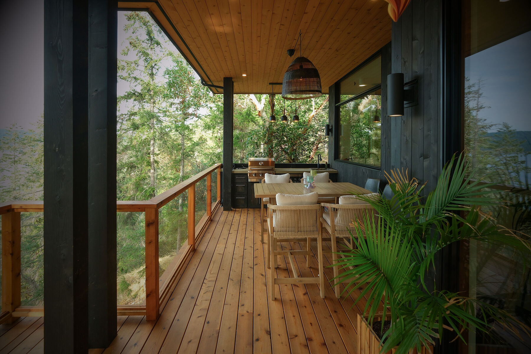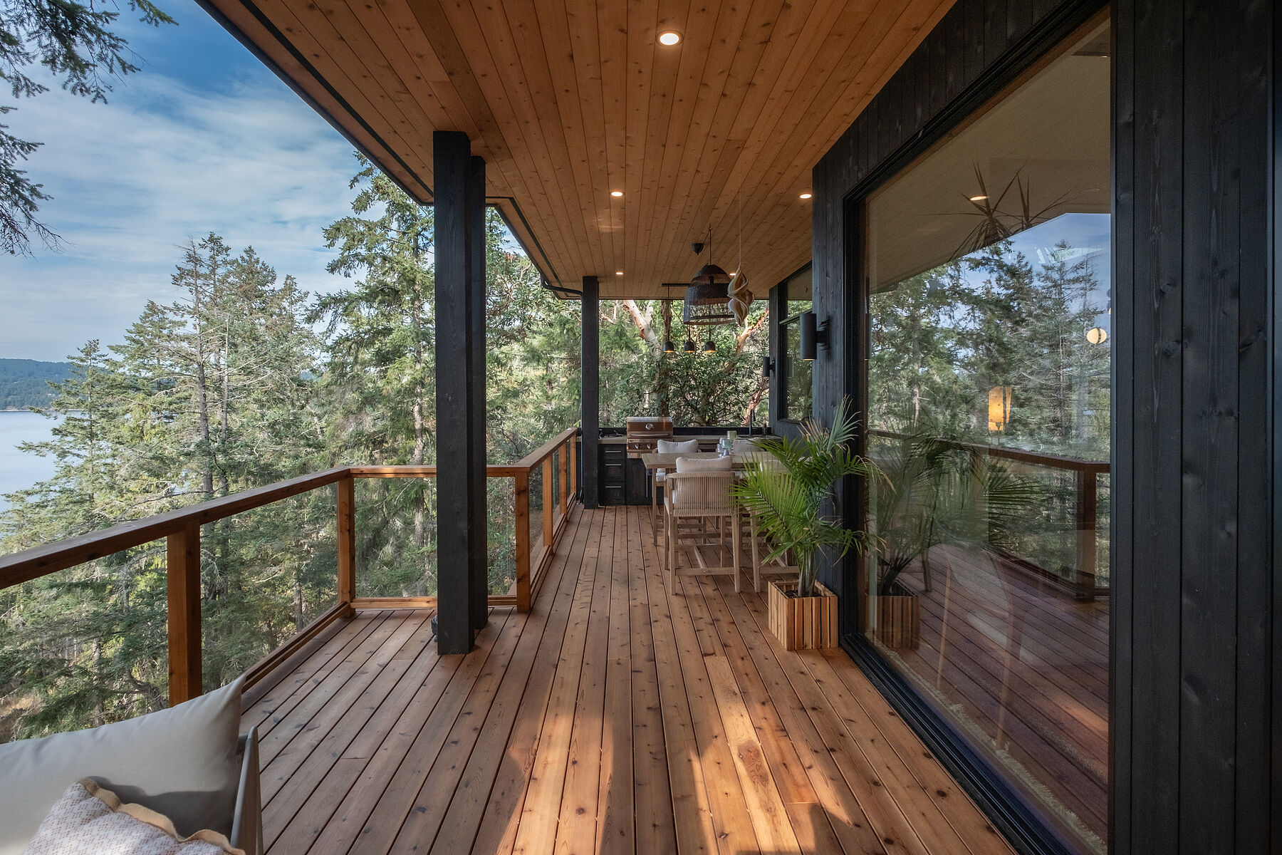 Presented on an elevated four acre stretch of high level oceanfront in Narrows West, design savvy owners chose to capitalize on the natural contours of the land and welcomed the stone outcropping and mature forest's input into the layout. This collaboration resulted in a spectacular Northwest modern aesthetic with a graceful minimalism that can only be born of exacting detail. While the nearly new home is impressive for its pristine open spaces and orderly architectural lines, it is also a place that feels instantly inviting and alive: a setting from which to observe nature up close in the utmost of comfort. The sophisticated entertainer's kitchen is equipped with a high-end appliance suite. Ceilings soar to lofty heights in the gallery-like living room. Oceanside primary suite features luxury and calm with refreshing ensuite and walkout to sunken hot tub. Guest bedrooms feature private walkouts and custom bunk beds. Outdoor kitchen. Copious storage. Sensational views. One of a kind!