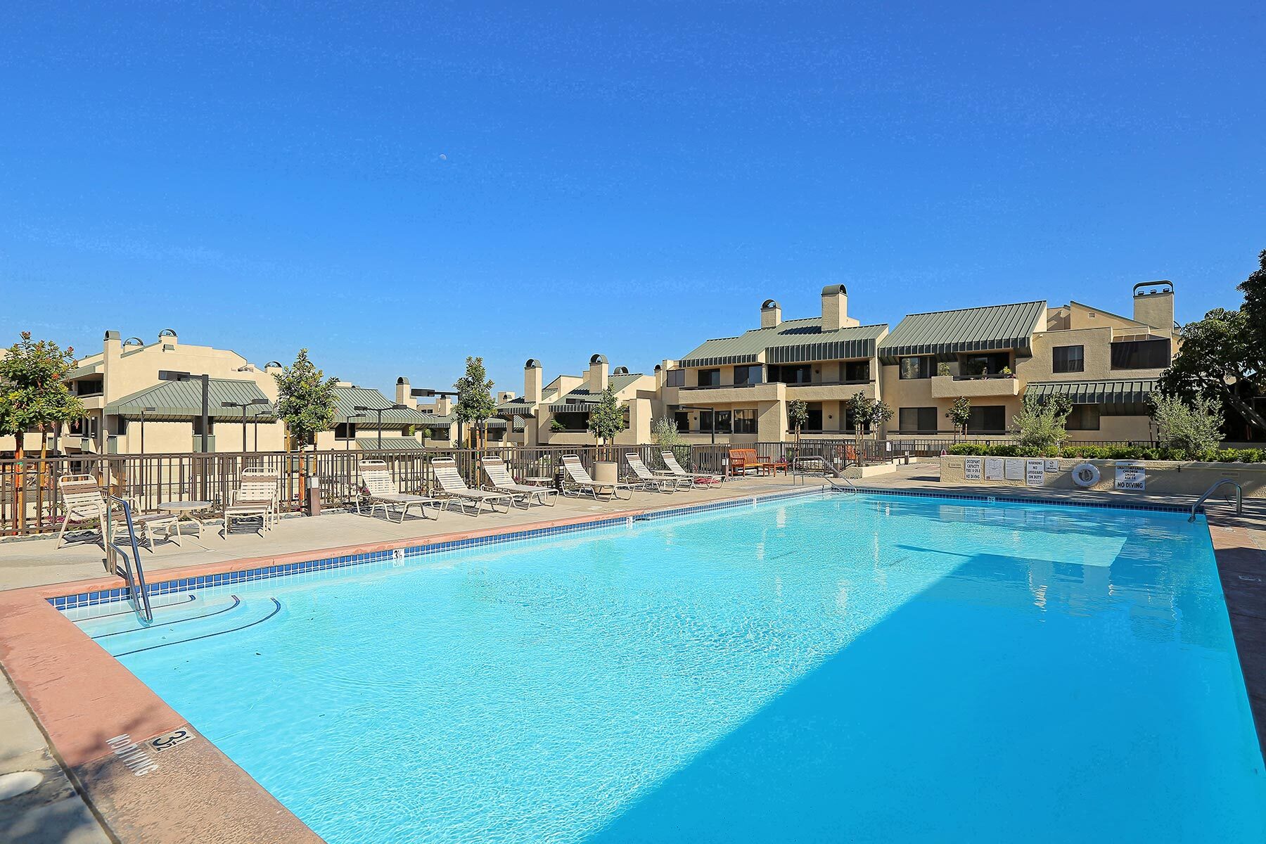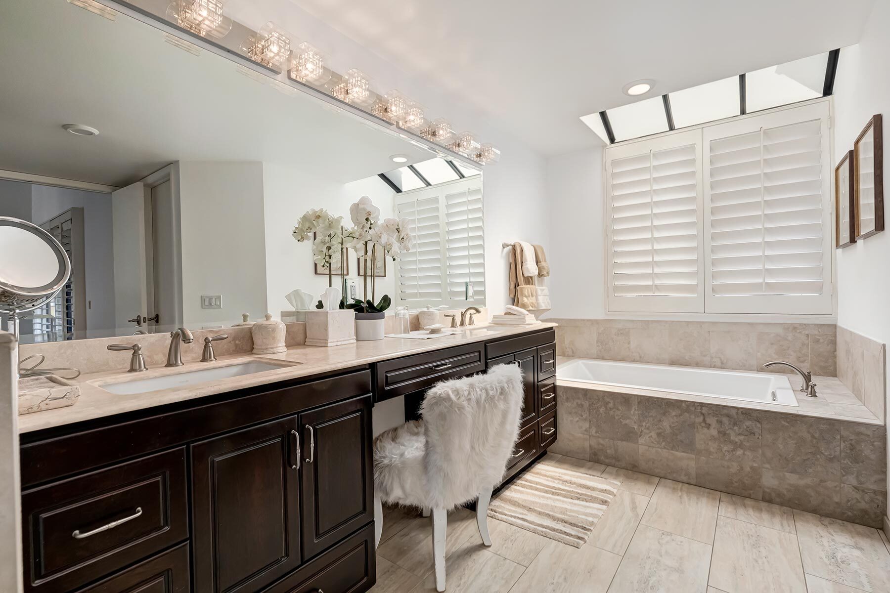Welcome to your escape from the noise of the busy city in the highly sought after gated community in the heart of Century City, with onsite security, 5 pools, gym, golf, tennis, clubhouse. This beautiful recently remodeled 2300 square feet property with new HVAC system, boasts exceptional appeal as you pass through beautifully maintained community gardens to your own travertine patio where you enter through your own front door. As you step inside you will be greeted by gorgeous acacia hardwood floors that flow through the entry into the dining room that is adorned by top of the line double pane sliding French doors that open to a private atrium. The large living room has plantation shutters and a custom stone fireplace. French windows and doors throughout the interior of both levels open into a private sunny travertine atrium. The atrium is a perfect spot for delightful morning breakfasts. The recently remodeled kitchen is a chef's delight showcasing Wolf stove top, Sub Zero refrigeration and double oven, Bosch dishwasher and quartz countertops, porcelain tile flooring and lighting and lots of cabinets along with a built wood banquette with storage. The upper level retreat opens to two bedrooms. Walk into the primary bedroom through double doors that enter to see 20" ceilings and a floor to ceiling custom hand laid travertine wall surrounding a second fireplace where on cold evenings one can relax on a cold evening in the adjoining sitting area in front of the fireplace. Walk across gorgeous walnut floors through another set of double doors into a remodeled bathroom retreat with soaking tub, enlarged shower, double sinks and two separate walk in closets. The primary then opens onto a 2nd floor balcony through plantation shutters where you can enjoy a glass of wine as you relax for the evening. The second bedroom, steps away from the primary, has custom-built bookcases and desk and doubles as a comfortable bedroom with remodeled bathroom with quartz counters, wood cabinets and an oversized shower. The lower level has a laundry room with built in cabinets adjacent to custom wood cabinetry as you exit the home into your own private 3 car garage with one deep section that could be walled off into a separate space for storage or a mini-man-cave. All minutes away from dining and shopping in Century City and Beverly Hills.