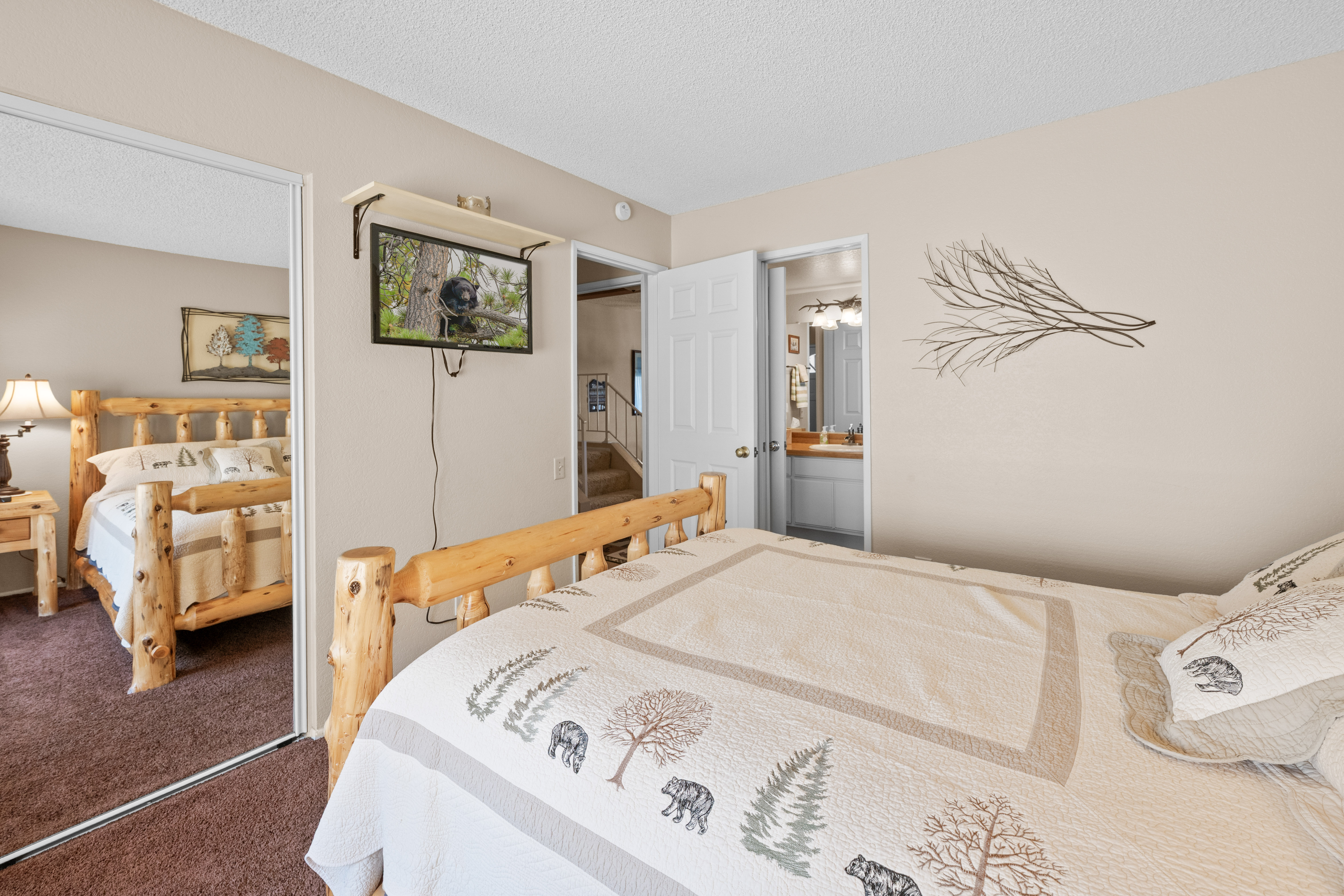 Deep-cleaned, fully furnished, and ready for immediate enjoyment. This well-maintained Bayshore Ski& Racquet Club condo sits on the quiet inner circle, away from the main road. Enjoy mountain living with knotty-pine wood flooring in the living room and kitchen, plus a well-designed kitchen with breakfast bar that opens to the living area. A brick-trimmed fireplace adds warmth on cool fall evenings, and a newer Trex-style deck off the living room is perfect for outdoor grilling and relaxing. The main floor includes one bedroom with an attached bath. Upstairs are two roomy bedrooms, including an owner’s retreat with ensuite bath. Bayshore Ski & Racquet Club, built in 1981 along the shores of Big Bear Lake, offers outstanding amenities: day-use docks, two swimming pools, two outdoor spas, and multiple tennis courts. Pleasure Point Marina is just a few blocks away ideal for keeping your boat and docking conveniently for lunch at the condo. Ski slopes are about 10 minutes away, and the popular Castle Rock Trailhead is close by. The complex is beautifully maintained with attractive landscaping, and snow removal is included in the HOA fee. Short- and long-term rentals are permitted. If you’re looking for a turnkey mountain getaway you can enjoy immediately with no work required, this condo is a gem. The sellers are will to finance with competitive interest rate at a minimum of 30% down payment.