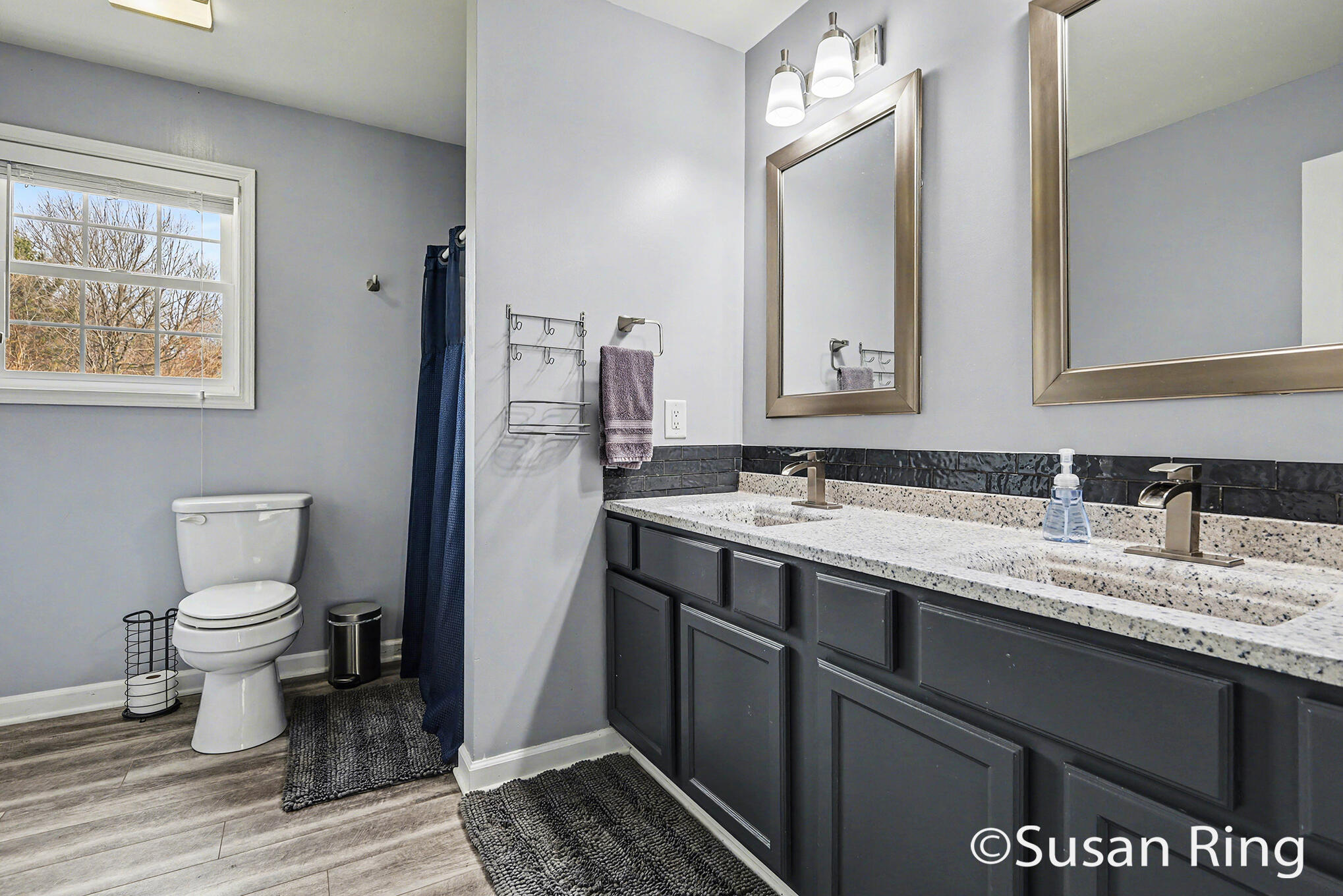 Welcome to this beautifully updated 4 bedroom, 3 bath home situated on a private wooded and park like lot. Features include; open concept living, a spacious kitchen with granite counters, plenty of counter space and cabinets, the primary suite features a sliding door to the private deck. There is so much closet space and storage, built in shelving in basement storage area, a finished daylight basement with rec room that is perfect for gatherings, hobbies or movie nights, plus a 4th bedroom and a full bath. The backyard offers a deck, plus a patio with hot tub. The backyard shed with it's own bar adds a fun and unique touch for hosting guests. This is a wonderful home offering privacy, space and great gathering areas both inside and out.