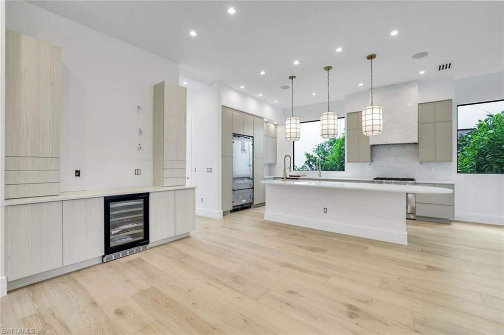 Experience the pinnacle of coastal luxury at 513 92nd Avenue North in Naples, Florida, a brand-new 2026 custom-built residence by LaGrasta Homes showcasing superior craftsmanship and an uncompromising standard of design, ideally located just two blocks from the beach in the heart of North Naples. Built with exceptional quality and storm-conscious design, this home features concrete block construction through the entire second floor, hurricane-impact resistant doors and windows, and is positioned at the highest elevation possible, built to flood elevation plus one. Air conditioning units are elevated to approximately 16 feet above flood and pool equipment 13 feet above flood, an incredible and highly valuable feature for added storm protection and peace of mind. Inside, 3,791 square feet of living space showcases a refined, open-concept layout with seamless indoor-outdoor flow. Wide plank wood flooring runs throughout the primary living areas, complementing the home's clean architectural lines and natural light-filled spaces. The chef's kitchen is both elegant and functional, featuring Thermador appliances and a layout designed for customization, ideal for both everyday living and entertaining. Offered as a designer-ready opportunity, there is still time for your personal designer to bring your vision to life and select the finishing touches, creating a truly customized luxury residence tailored to your style. The home offers four bedrooms and four and a half bathrooms, with the primary suite thoughtfully positioned on the second floor as a true retreat, featuring an expansive custom closet, exceptional dual vanities, a soaking tub, and a massive walk-in shower. A first-floor guest suite provides flexibility for multigenerational living or extended stays, offering comfort and privacy for family and visitors. The second-floor loft with kitchenette creates the perfect space for guests, a media lounge, or executive office. Outdoor living is designed to impress, with a covered lanai featuring a fully equipped summer kitchen and grilling station supported by a 1,000-gallon propane gas tank. The backyard is a private retreat with a 14x28 custom pool, integrated sun shelf, and six-foot spa. The property is professionally landscaped with privacy in mind, creating a serene and secluded setting for relaxation and entertaining. Enjoy one of the most walkable coastal locations in North Naples, where you are just a short stroll to the beach for morning walks, sunset views, and everyday access to the Gulf. Close proximity to premier shopping, dining, and entertainment enhances the ease of living in this exceptional location. This is coastal luxury designed for both elegance and everyday livability.