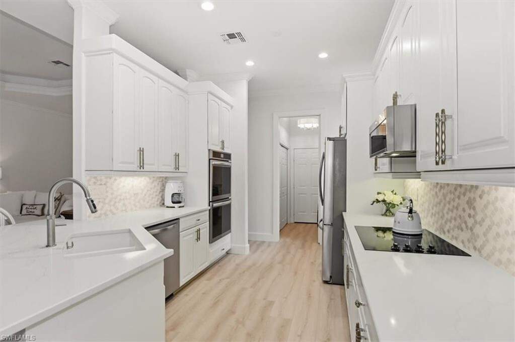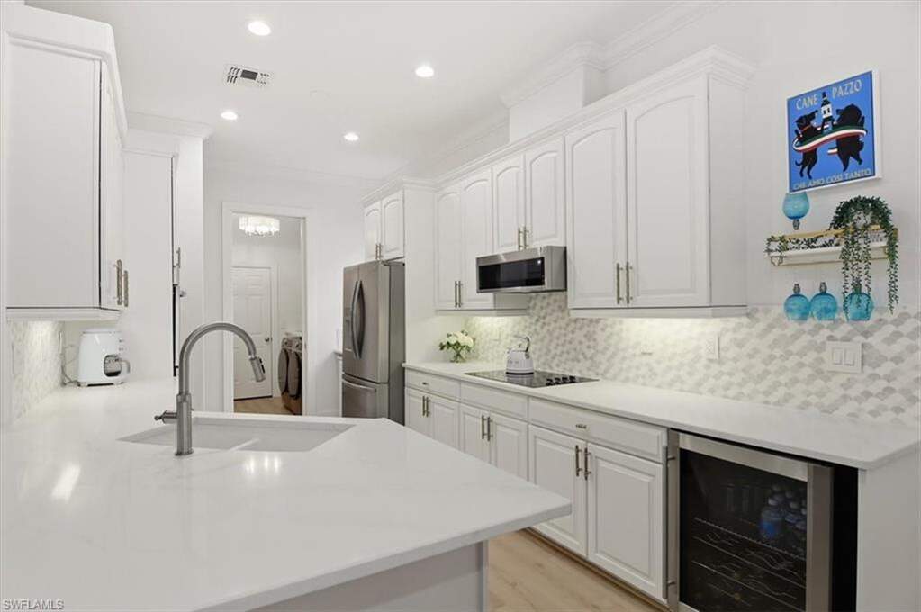 Welcome home to this recently renovated, move-in ready 3 bed, 2 bath single family home in Cypress Woods that offers immediate bundled golf and with a cohesive, high quality renovation throughout. New flooring spans the home, complemented by a renovated guest bath, updated lighting, and a well appointed kitchen featuring new appliances including refrigerator, wine coolers, dishwasher, along with updated countertops and backsplash. Additional improvements include a new washer/dryer, outdoor kitchen with electric cooktop, new pool pump, and a 2021 roof. Positioned with desirable western exposure overlooking the 3rd tee, the home's outdoor living is equally compelling, featuring a heated pool and spa designed for incredible sunset views and a seamless connection between indoor and outdoor spaces. Cypress Woods Golf & Country Club is a bundled golf community centered around an 18 hole Gordon Lewis designed championship course, complemented by tennis, pickleball, bocce, a resort style community pool and spa, fitness center, and an active, member focused lifestyle, all within a prime North Naples location.