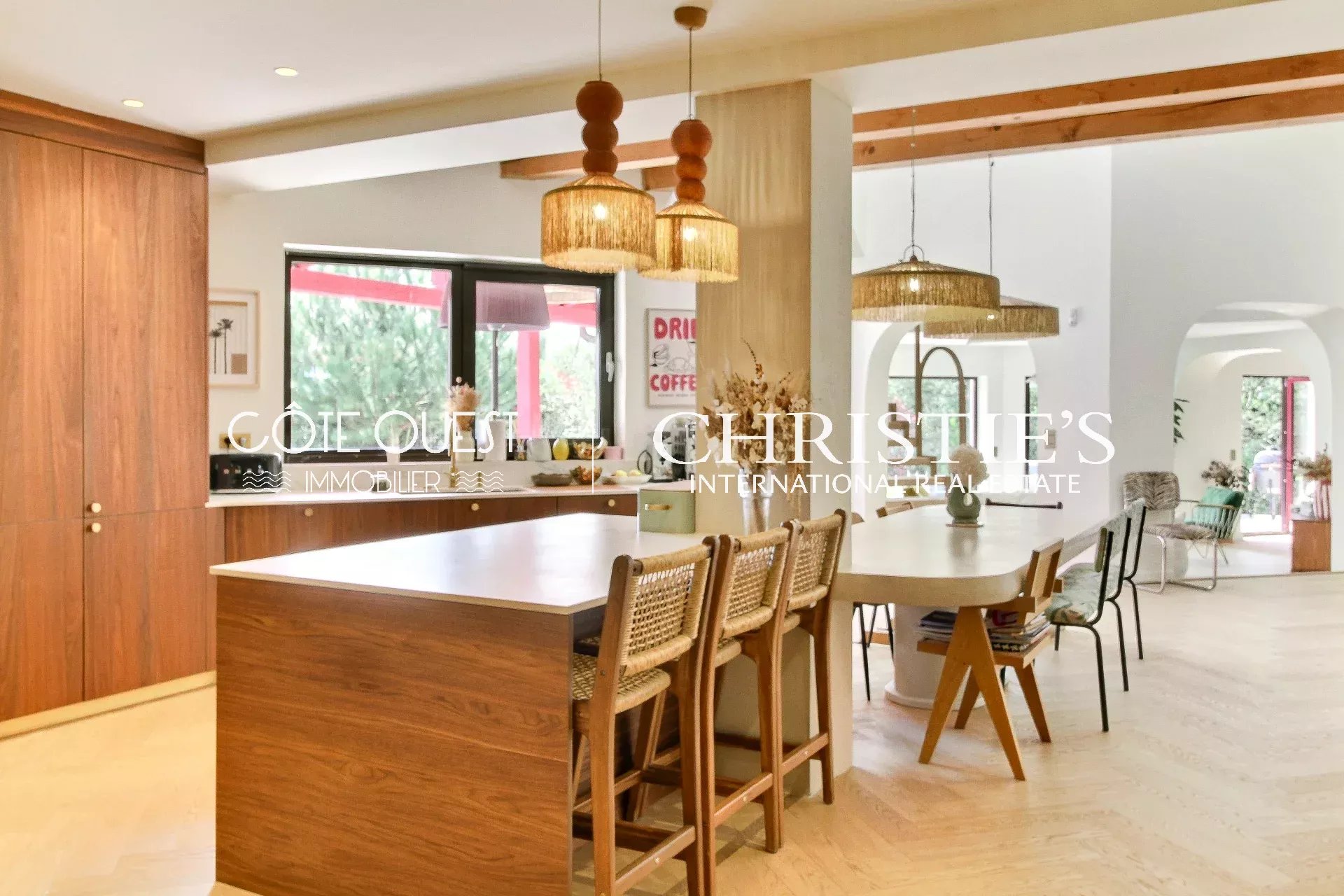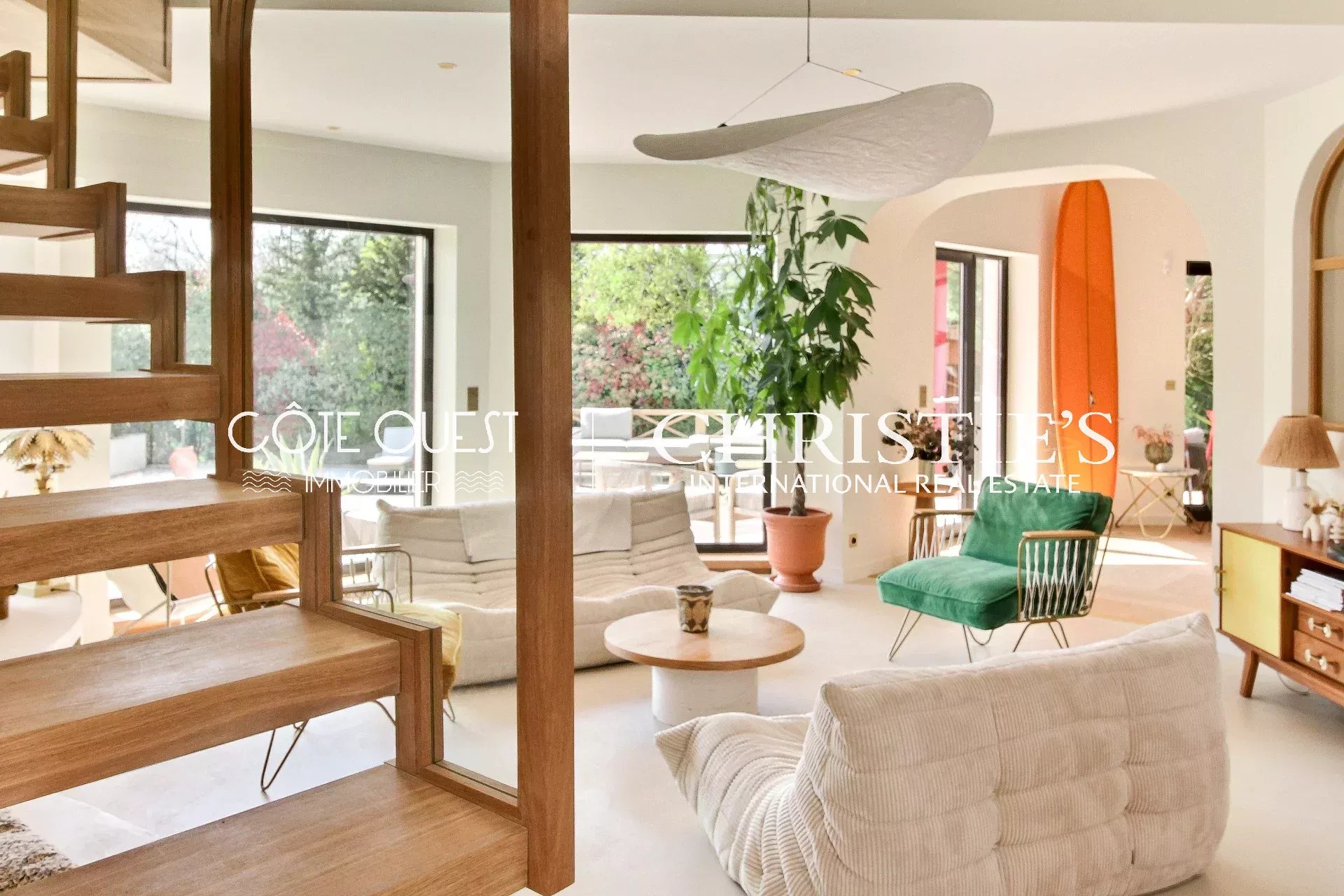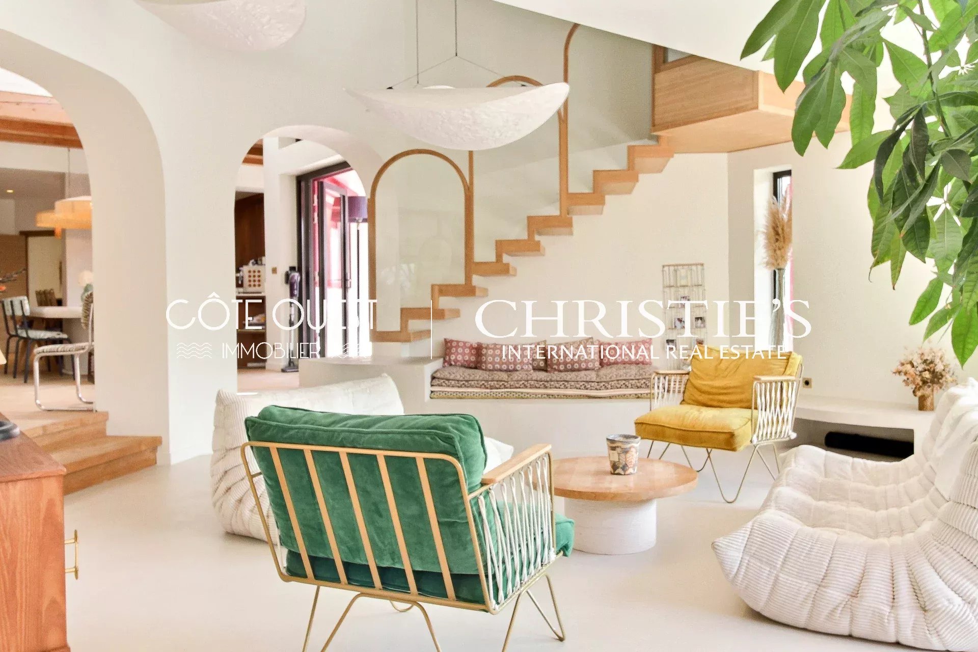 The property consists of five bedrooms, including two elegant suites, as well as three bathrooms. We find a large fitted and equipped kitchen, open to a bright double living room. A closed mezzanine office completes the living spaces, ideal for teleworking.