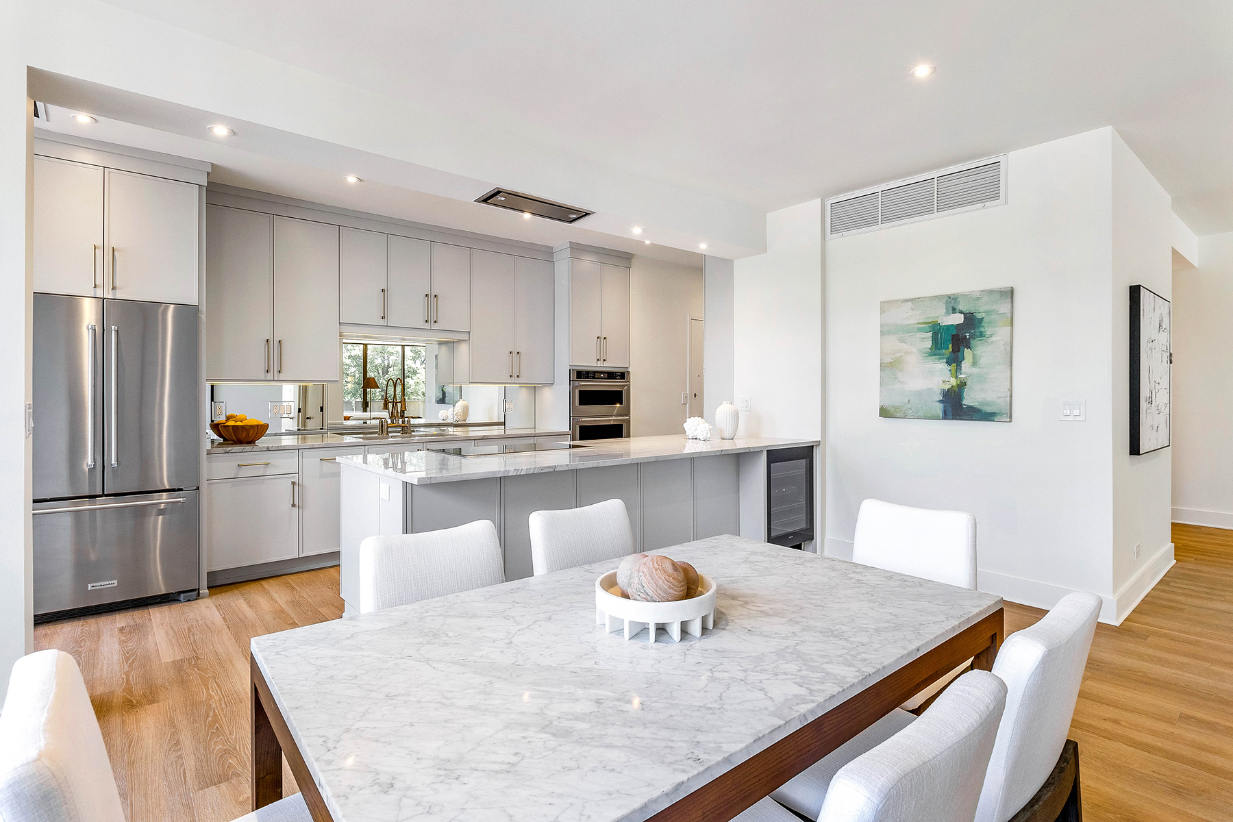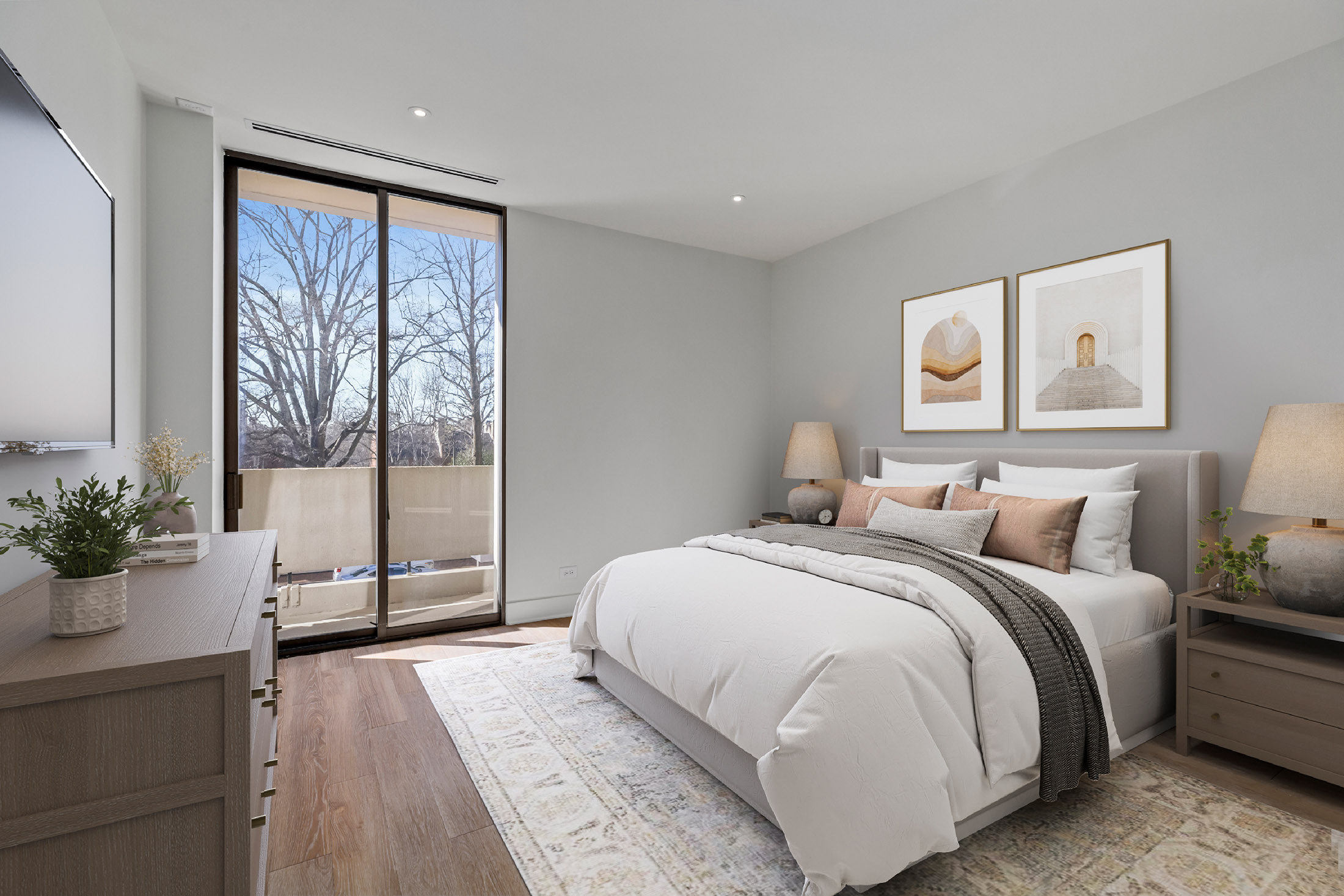 At Plaza Towers, Residence 6G offers a quietly elevated take on in-town living, just above the treetops along Peachtree. With 1,594 square feet, two bedrooms, and two baths, this home balances classic Atlanta character with a clean, modern sensibility that feels both refined and approachable. Recently reimagined from the ground up, the interiors have been thoughtfully redesigned to simplify and elevate daily living. New flooring, updated baseboards, and a fully integrated lighting plan create a calm, gallery-like backdrop, while the reworked kitchen brings both function and presence - featuring custom cabinetry, Quartzite countertops, a flush vent hood, and a full suite of Wolf and KitchenAid appliances, including a warming drawer. A rare and cleverly concealed utility space adds a level of practicality not often found in the building, accommodating a washer, vented dryer, and additional storage without interrupting the flow of the home. The primary suite offers a custom walk-in closet and a bath designed with intention, while the secondary spaces remain equally well considered. Positioned just two levels above the lobby, the residence enjoys a unique vantage point - connected, yet quietly removed - with soft, tree-lined views over Peachtree and the building's iconic entrance. Life at Plaza Towers is defined by ease: 24-hour concierge, all-inclusive utilities, renovated common areas, a fitness center, and guest suites - all just moments from the Garden Hills Duck Pond and the best of Peachtree's dining and shopping. Garage parking is available, offering secure, convenient access. Now reintroduced at a compelling new price, this is a rare opportunity to step into a fully realized home - where the work has already been done, and the living is effortless.