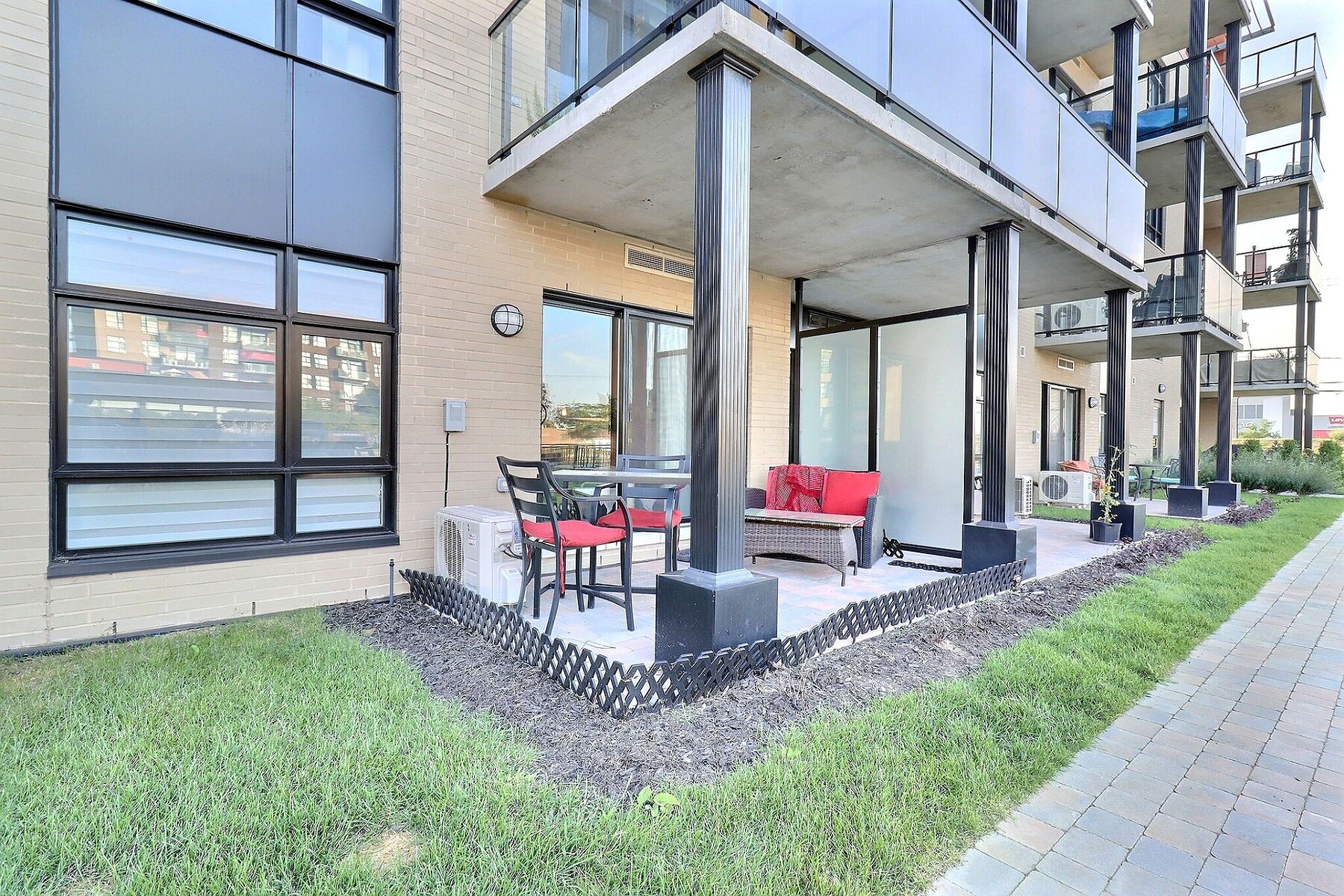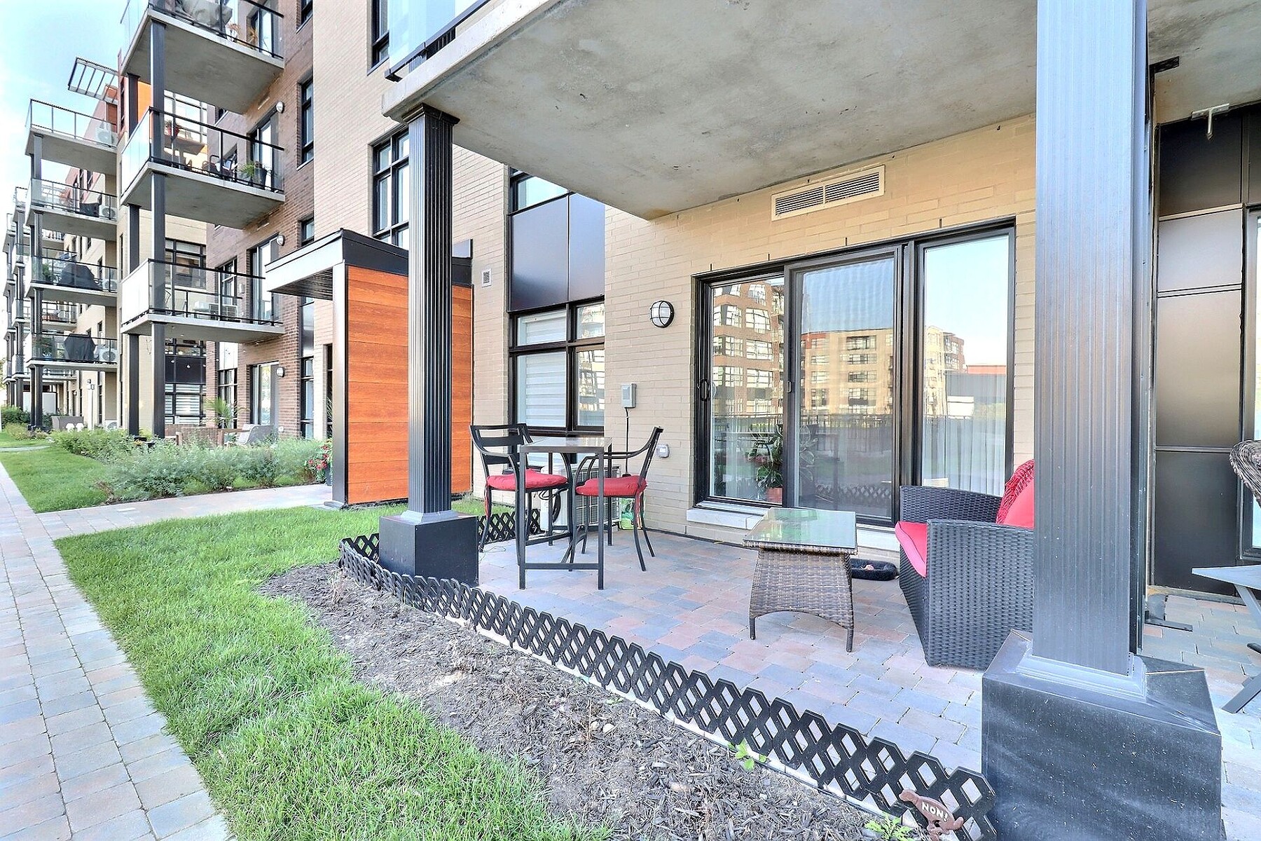 Cozy and thoughtfully designed, this ground-floor 1-bedroom condo features an open-concept layout, a private interlock patio, and a bedroom with an 11-foot closet. A washer and dryer are included in the bathroom. The Onze de la Gare complex is impressive, boasting a heated saltwater pool, a patio with BBQs and gas fireplaces, a gym, a children's playground, and a private function room. Prime location in Vaudreuil-Dorion--commuter train, bus, shops, restaurants, waterfront, and quick access to Highways 20, 30, and 40. A complete lifestyle.