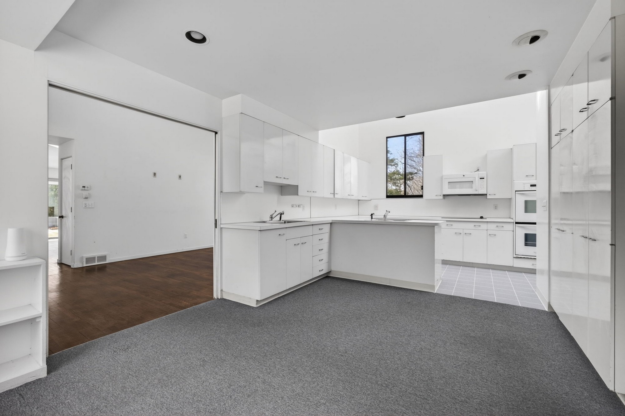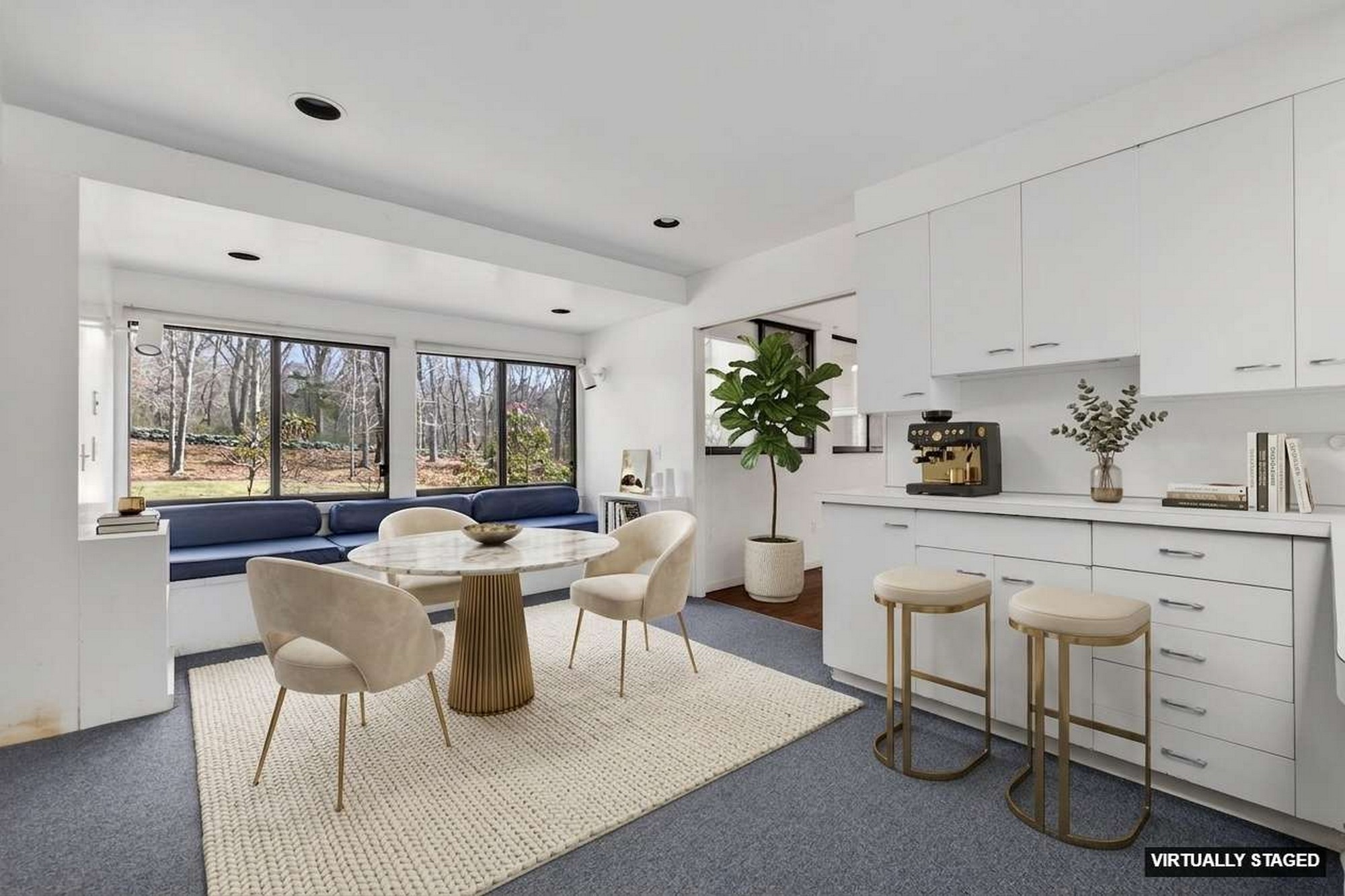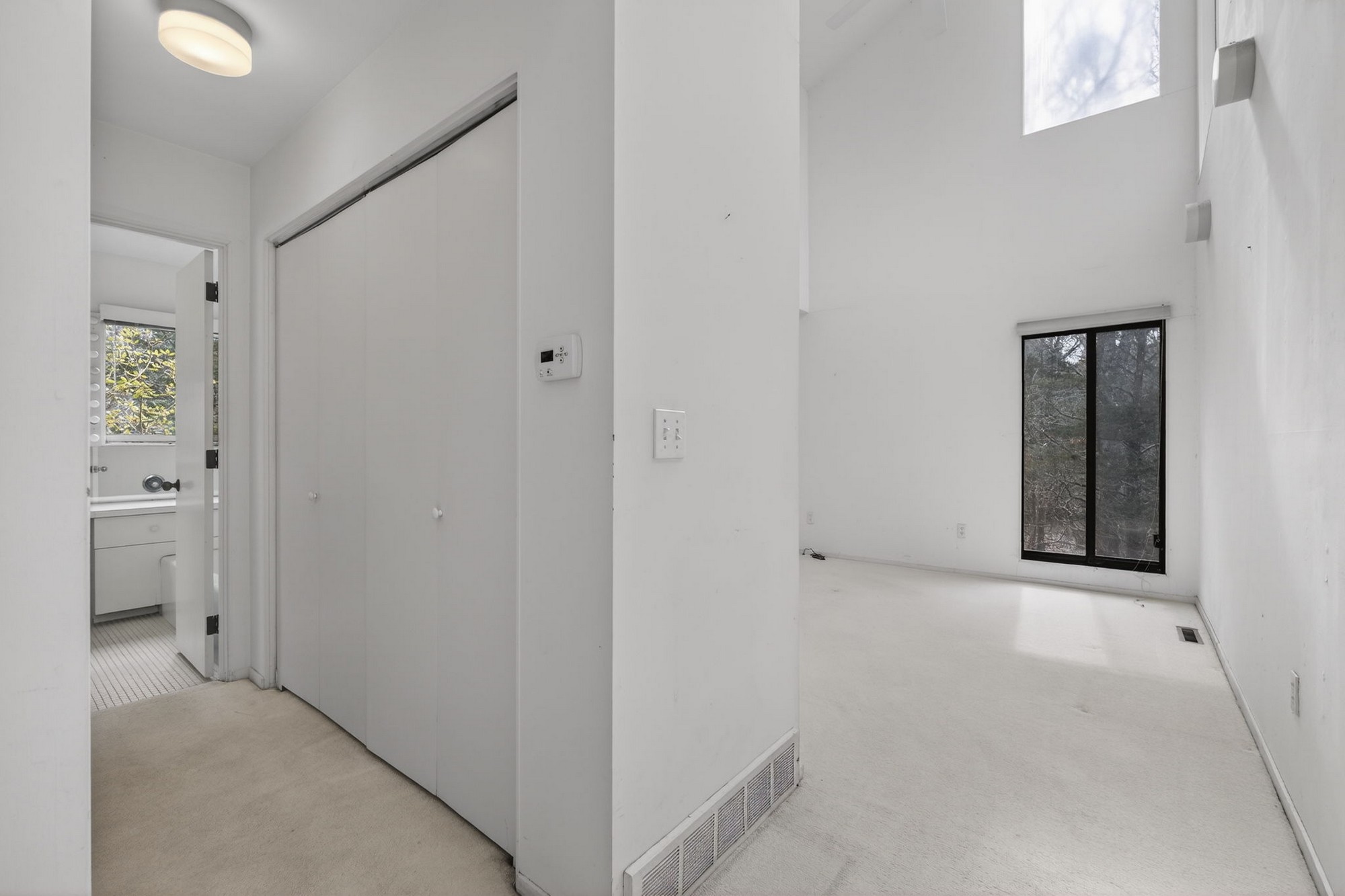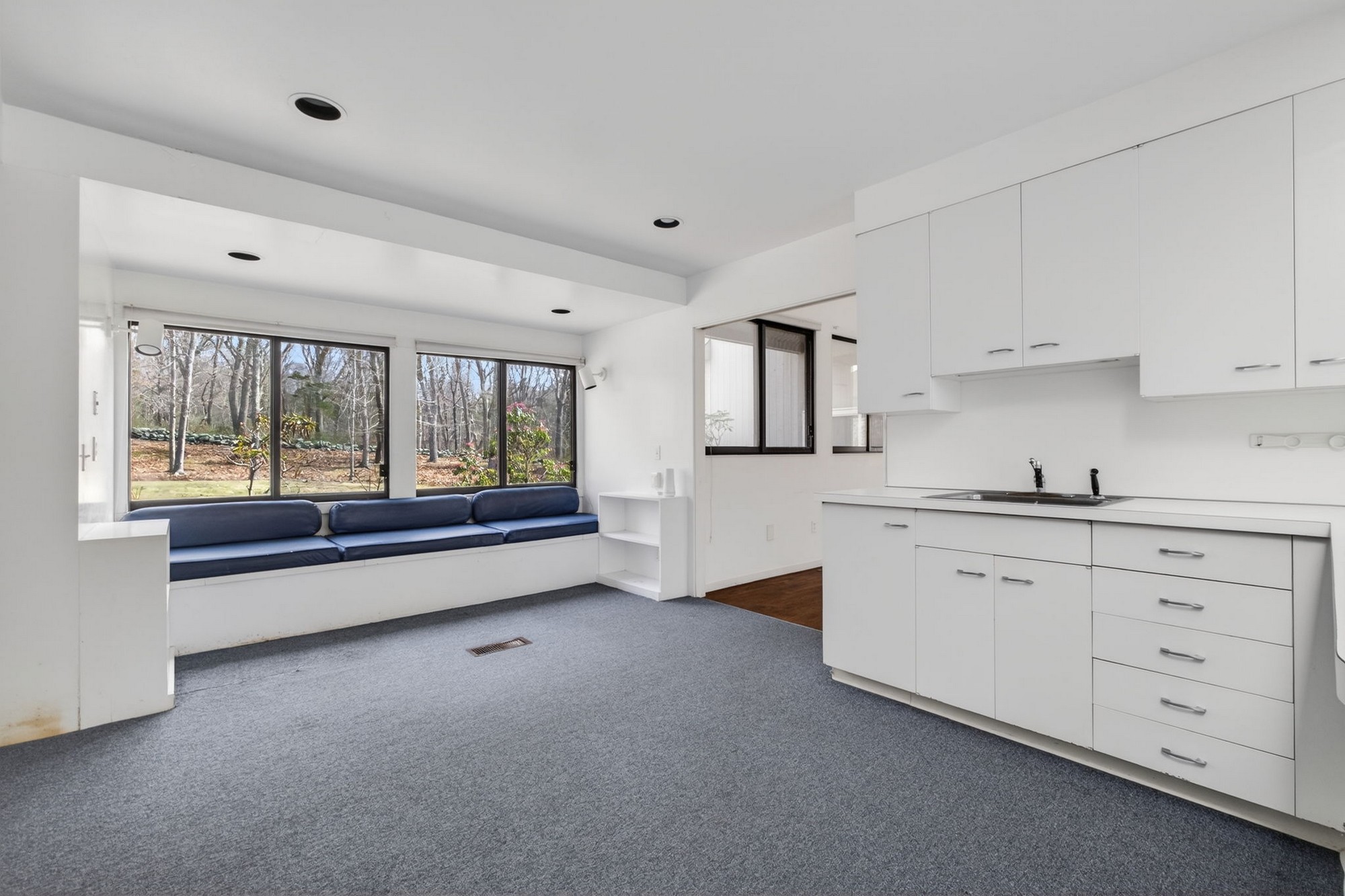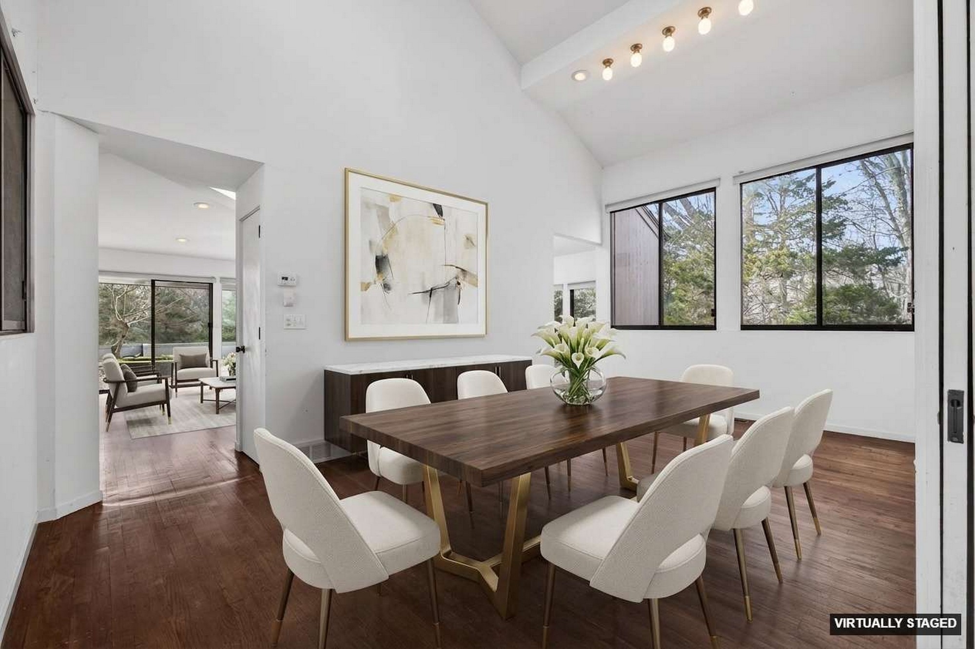 Modernist Elegance - Discover a master class in Mid-Century Modern design by Charles Moore, one of the founders of Centerbrook Architects and Dean of the school of architecture at Yale. Tucked away on 5.88 private, wooded acres near the historic heart of Old Lyme Village. Built in 1972, this 3,971-square-foot contemporary estate is a rare architectural find, where bold geometric forms meet the tranquil beauty of the Connecticut shoreline. The journey begins in the large foyer leading to the expansive living room, a soaring centerpiece defined by cathedral ceilings and a wall of glass sliders. This transparent boundary invites the outdoors in, leading you directly to a stone patio and "garden room" courtyard-an intentional architectural transition designed for effortless indoor-outdoor entertaining. From the main gallery, the home flows into a large, modern culinary hub featuring a sun-drenched eat-in area with a custom built-in banquet, perfect for slow mornings. For quieter moments, the private library offers a sanctuary of refined comfort, complete with rich hardwood floors and floor-to-ceiling built-in bookcases. The main level is anchored by a large primary retreat, a space designed for ultimate convenience with its own private sitting room and a sprawling, boutique-style walk-in dressing room. Upstairs, the architectural drama continues with two additional bedrooms-each boasting their own cathedral ceilings-connected by a classic Jack & Jill bath