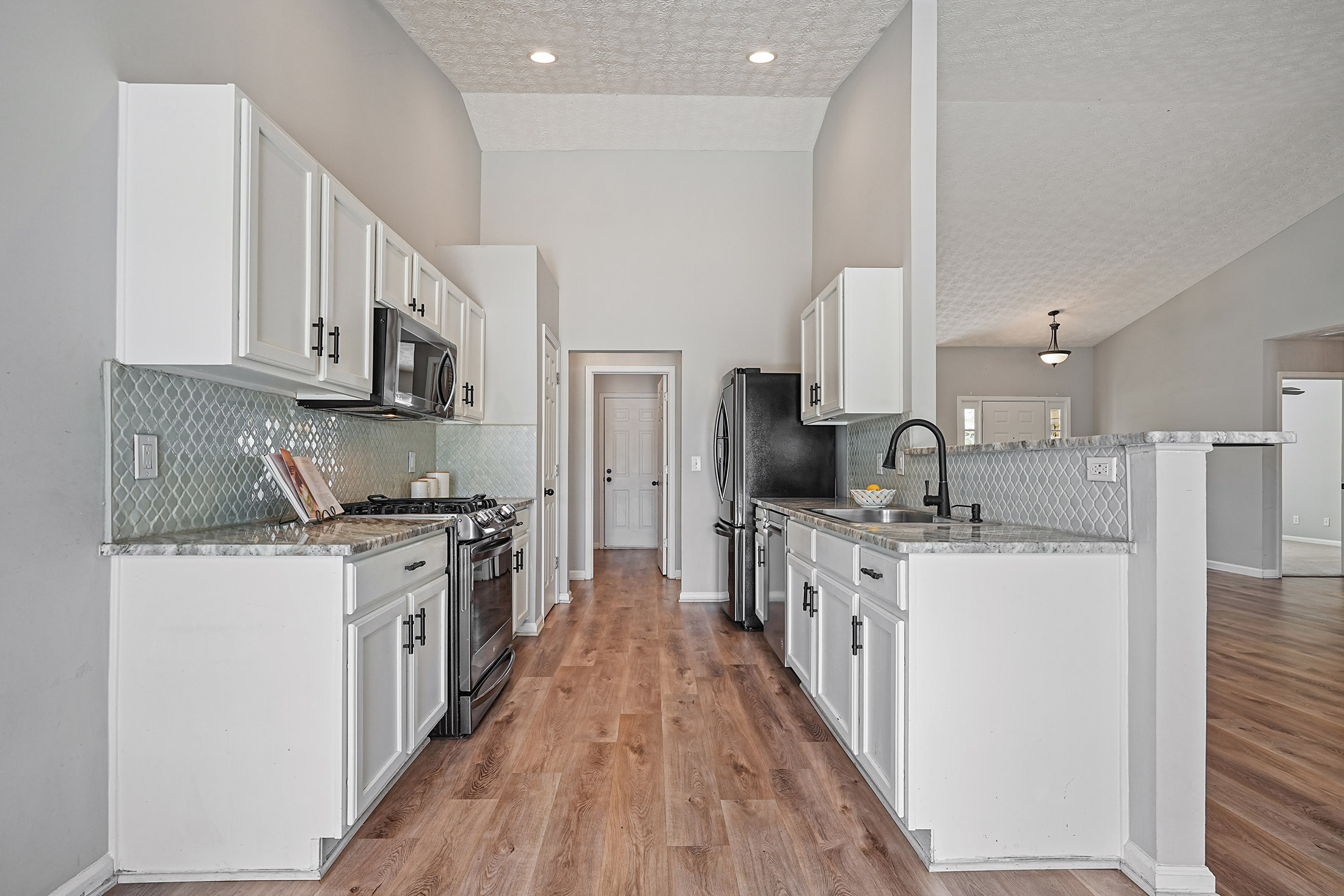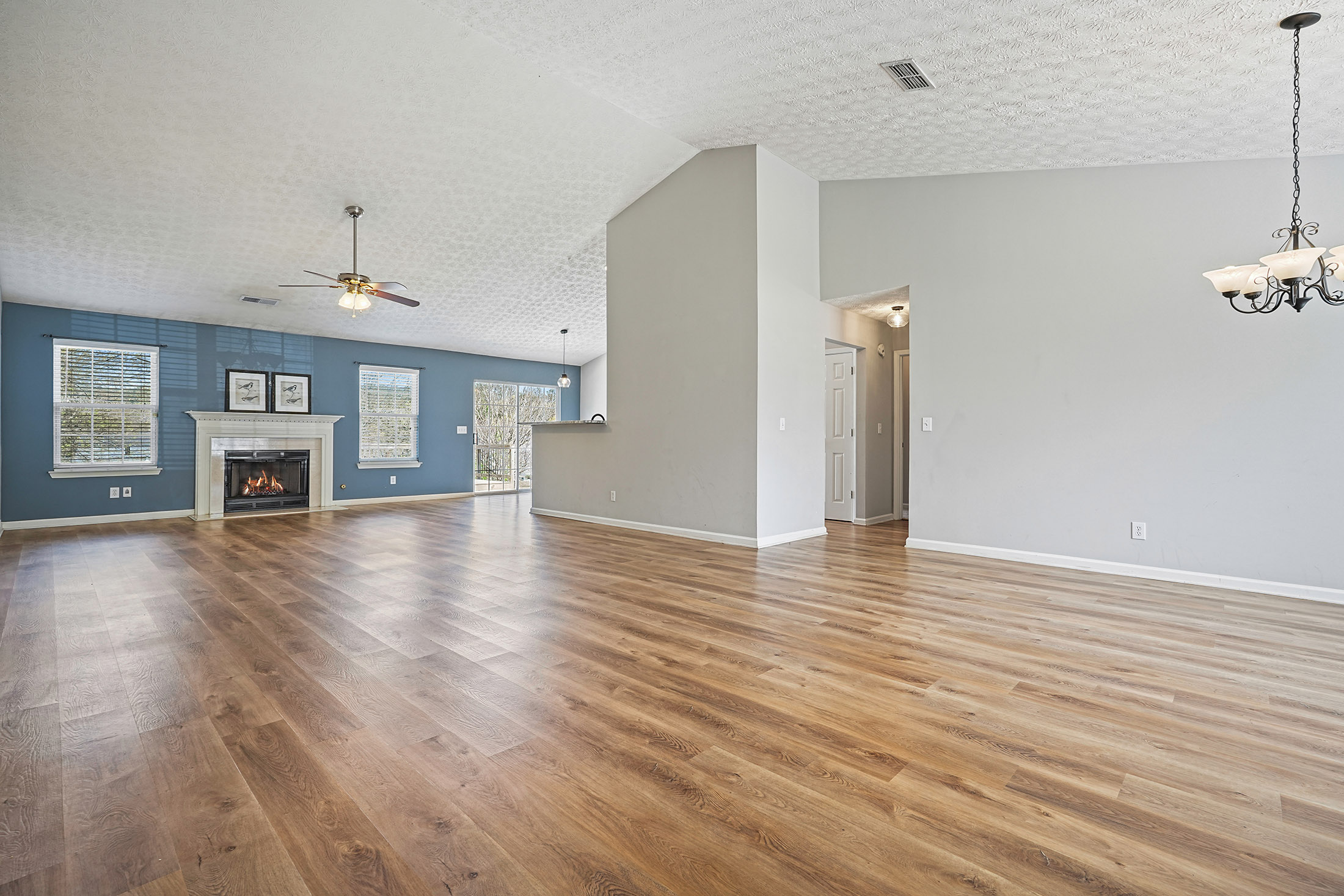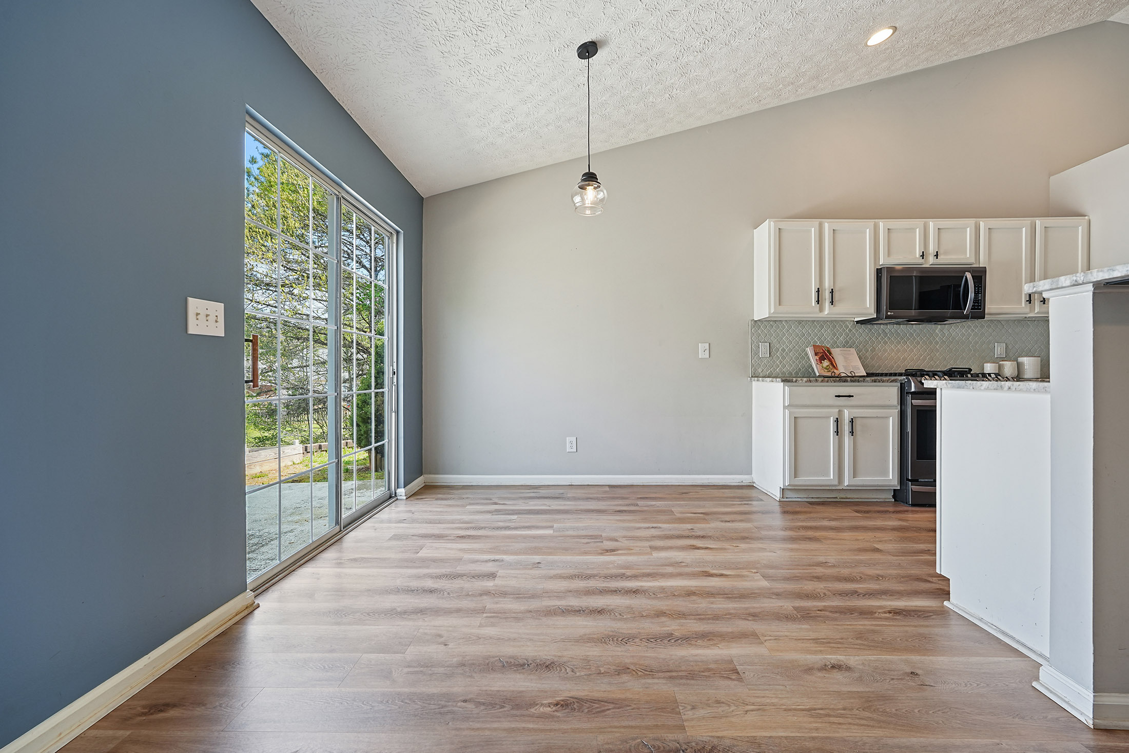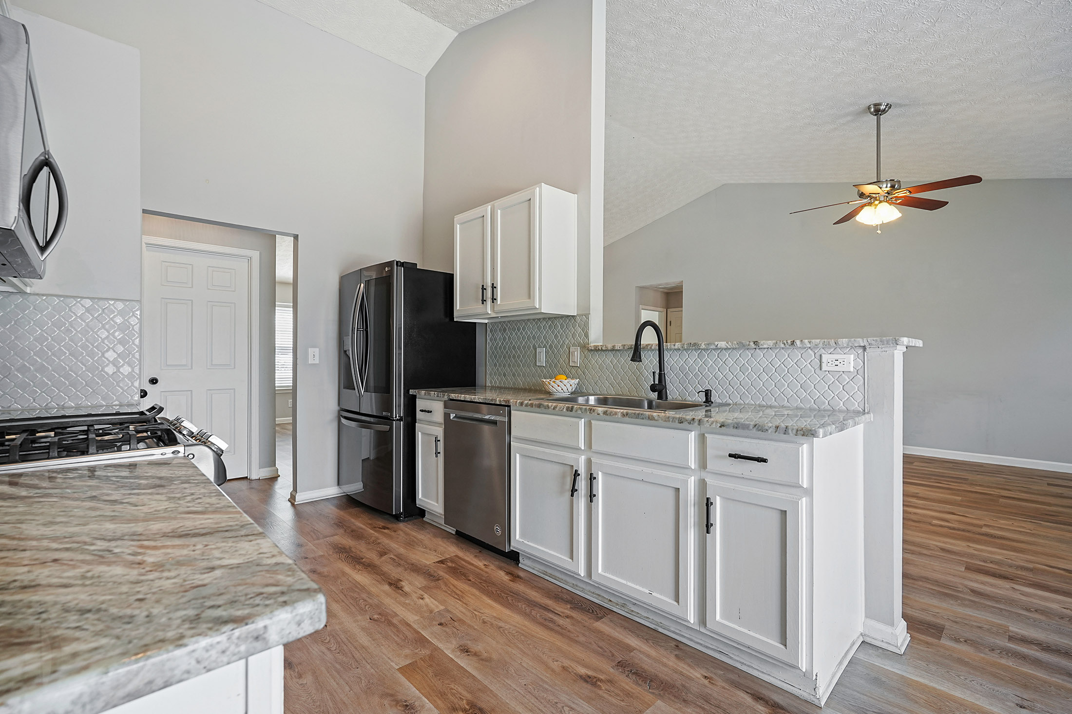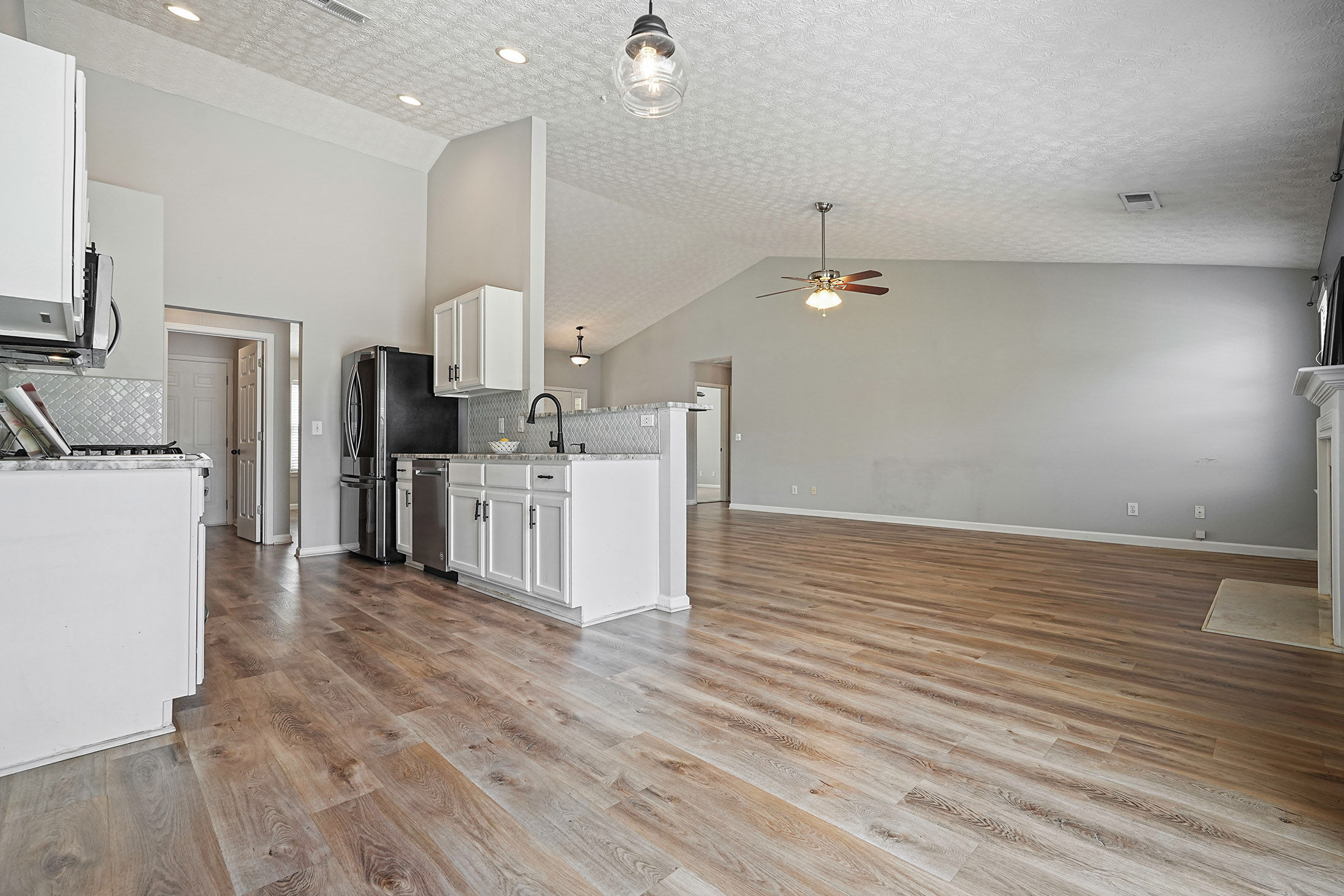Welcome to your home in Woodstock, ideally situated in a sought-after community within the award-winning River Ridge High School district. This beautifully maintained ranch-style residence offers effortless one-level living with a bright, open floor plan designed for both everyday comfort and entertaining. Inside, natural light fills the home, highlighting soaring vaulted ceilings and a warm, inviting fireside family room. The open white kitchen serves as the heart of the home, featuring an upgraded gas range, breakfast bar, and generous storage, all flowing seamlessly into the main living areas. The thoughtfully designed layout includes three bedrooms and two full baths, with a private owner’s suite set apart from the secondary bedrooms for added comfort and privacy. Outdoor living is equally appealing with a large, fenced backyard ideal for pets, play, or future enhancements, along with a platform deck perfect for entertaining or relaxing. Located just ten minutes from downtown Woodstock, this home offers convenient access to popular dining, shopping, and entertainment while maintaining a peaceful residential setting. A rare opportunity to enjoy updated, move-in ready living in one of Woodstock’s most desirable locations.