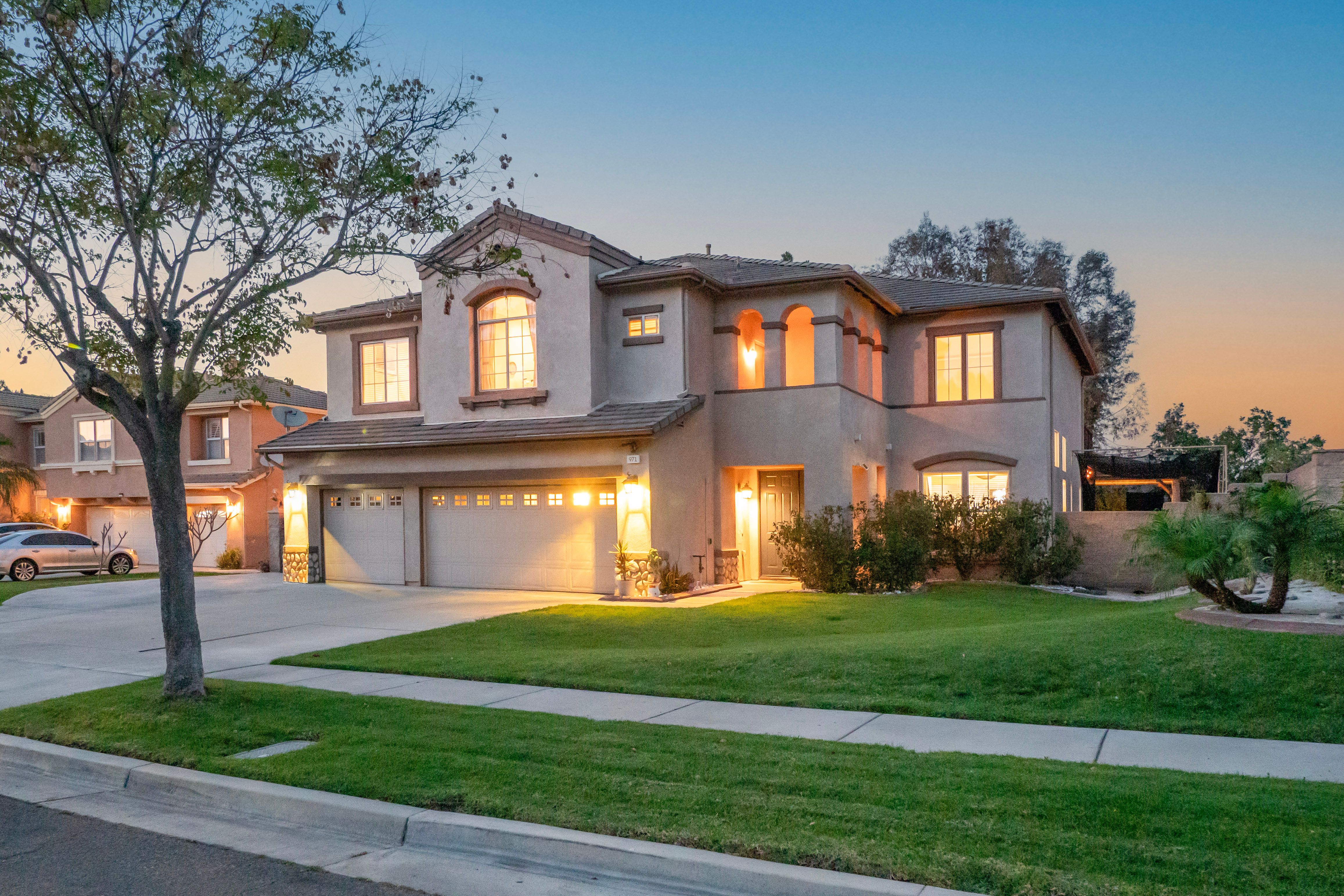 Welcome to 971 Haley Talbert Drive, a light, bright and airy sanctuary nestled in one of South Corona’s most desirable upscale communities. From the moment you step inside, the home unfolds with an impressive sense of openness—vaulted ceilings, inlaid marble tile, and warm wood flooring create an elegant backdrop for everyday living and refined entertainment. The main level offers a seamless blend of comfort and sophistication. A spacious living room flows into the formal dining area, perfect for holiday gatherings or celebratory dinners. The gourmet kitchen is the heart of the home, featuring stainless steel appliances, granite countertops, a service island with breakfast bar seating, and direct connection to a cozy family room anchored by a welcoming fireplace. A rare highlight of the lower level is a beautiful ensuite office with a full private bathroom, ideal for remote work or easily convertible into a fifth bedroom. A guest powder room and dedicated laundry room complete the first-floor conveniences. Upstairs, the primary retreat is a haven of relaxation—complete with its own fireplace, a spa-inspired bathroom, a generous walk-in closet, and a private viewing deck perfect for morning coffee or evening sunsets. The second level also features an ensuite bedroom with its own full bath, two additional bedrooms connected by a Jack-and-Jill bathroom, and a cozy loft-style landing ideal for gaming, homework, or a kids’ entertainment zone. Step outside and experience the home's exceptional outdoor living environment. Designed for privacy and connection, the backyard offers a freestanding pergola, a built-in stone buffet for serving, and a gas firepit—perfect for unforgettable parties or quiet family nights under the stars. One side yard is fully hardscaped and currently used as a golf cage, while the opposite side is spacious enough for RV or boat parking, adding unmatched versatility. Set within a quiet, upscale community, this property offers more than just a home—it offers a lifestyle. Here, neighbors know one another, children play safely, and families thrive. This is the ideal setting for those seeking comfort, connection, and quality living in one of Corona’s most sought-after neighborhoods.