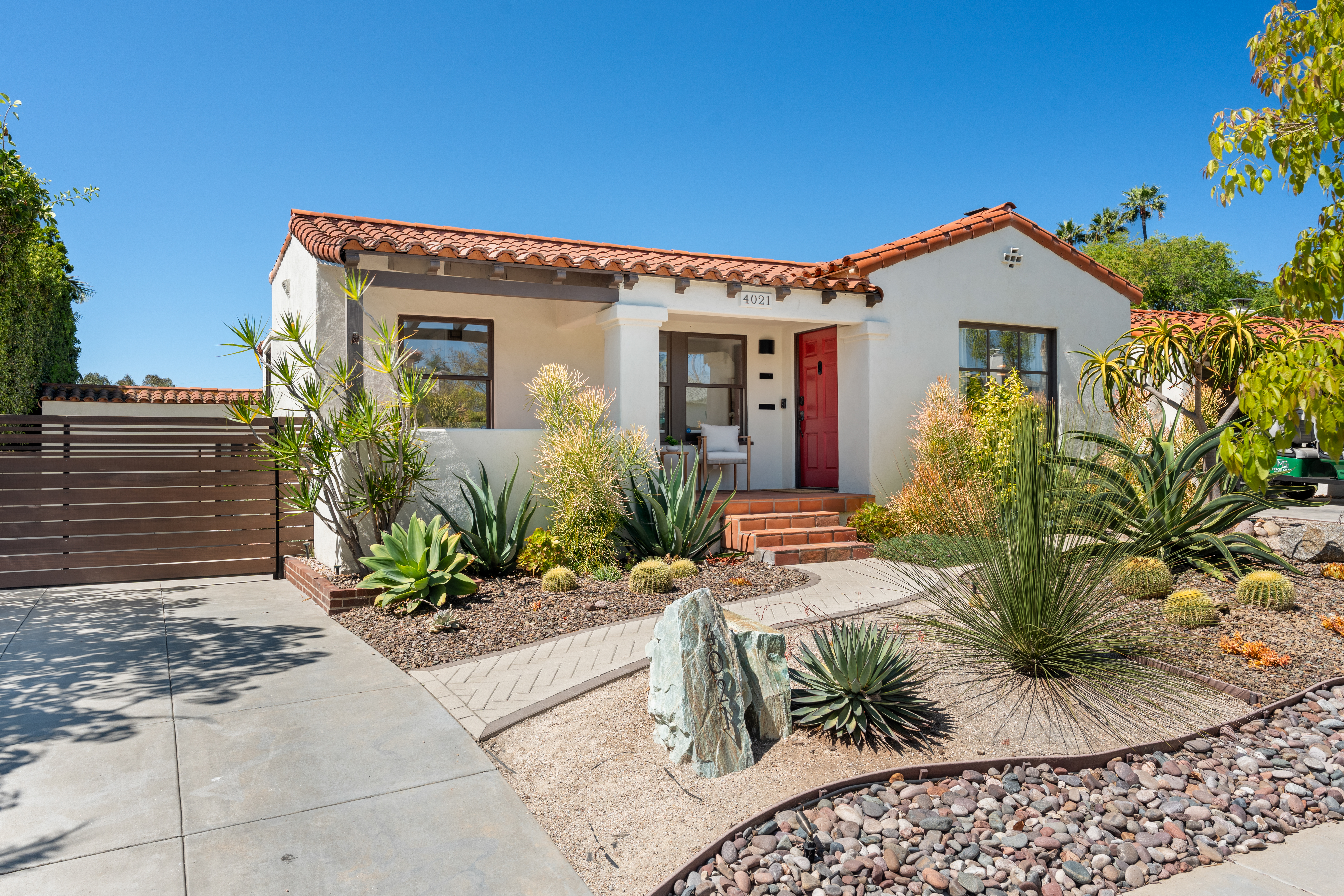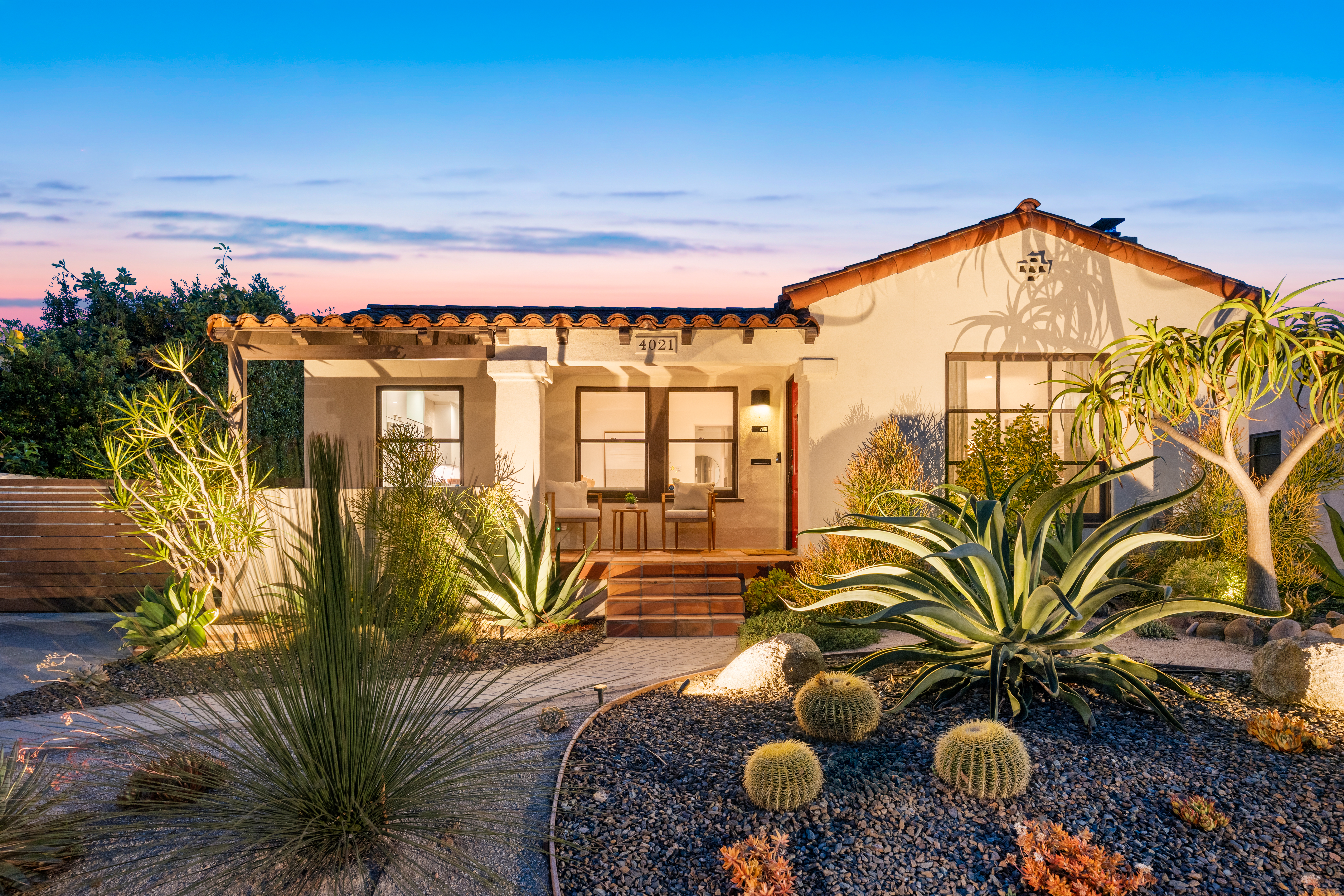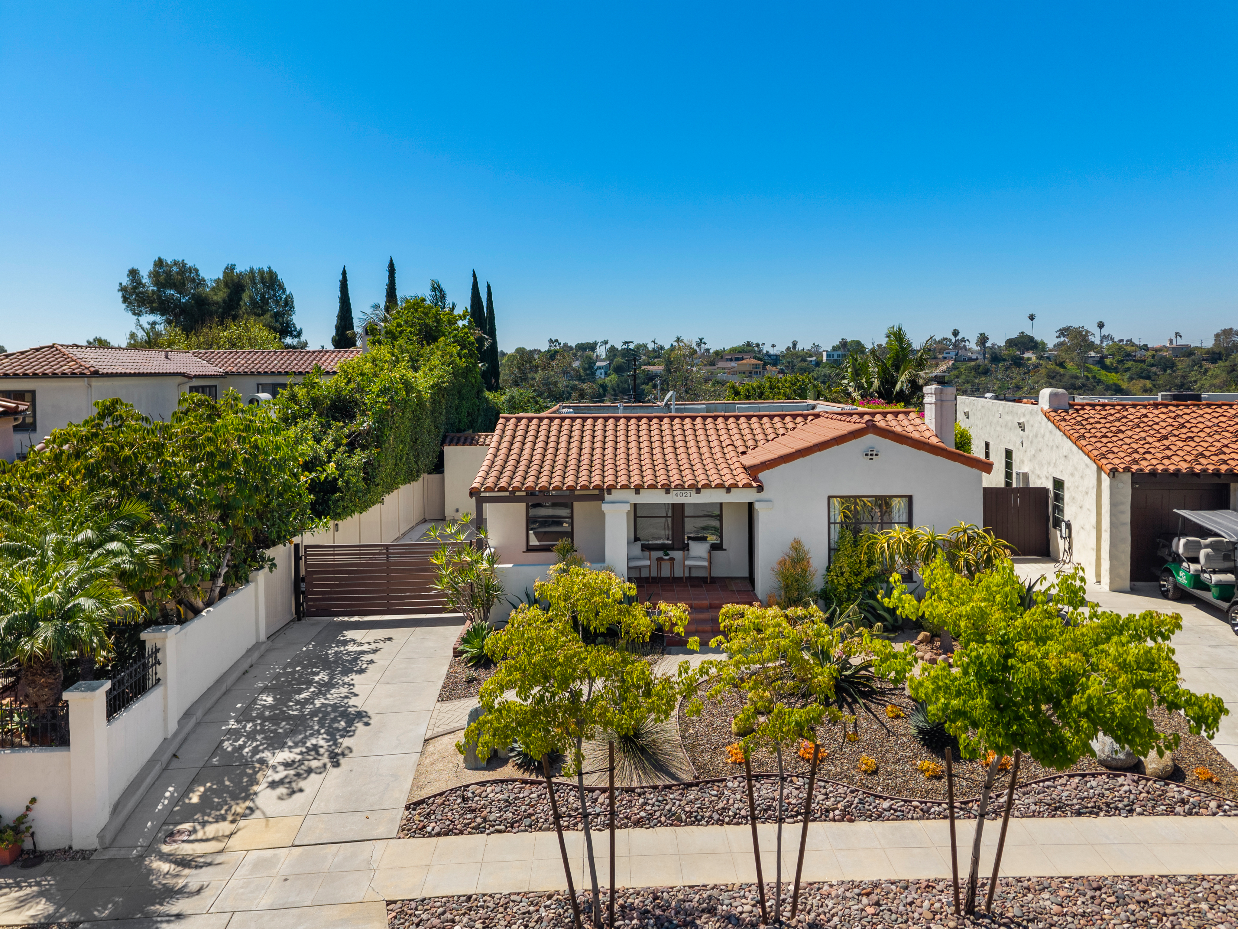 Nestled within the idyllic enclave of Kensington, a charming neighborhood in San Diego known for its distinct village atmosphere, this beautifully restored 1937 Spanish residence blends timeless architectural character with refined modern living. Situated on an expansive 15,000+ square-foot lot, the single-level home offers approximately 1,554 square feet, featuring three bedrooms and three elegantly renovated bathrooms, all thoughtfully updated while preserving the home’s classic Spanish charm. The home has been meticulously renovated throughout and features a stunning open kitchen with premium Thermador appliances, including a wine refrigerator and refrigerator drawers deal for effortless entertaining. The kitchen flows seamlessly into the dining and living areas, where a welcoming gas fireplace creates a warm gathering space. Extensive upgrades include beautifully remodeled baths with designer tile and fixtures, updated plumbing and electrical, water softener system, EV charger, and an electric driveway gate. Outdoors, the property transforms into a private retreat with three inviting backyard decks, a fully fenced yard, and low-maintenance landscaping enhanced by dramatic exterior lighting. A converted garage studio with a dry kitchen opens through sliding doors to a beautiful Balau wood deck, creating exceptional indoor-outdoor living. Just moments away, Kensington’s vibrant village offers cafés, restaurants, boutiques, markets, dog park, children's playground, banking, salons, and a village library.