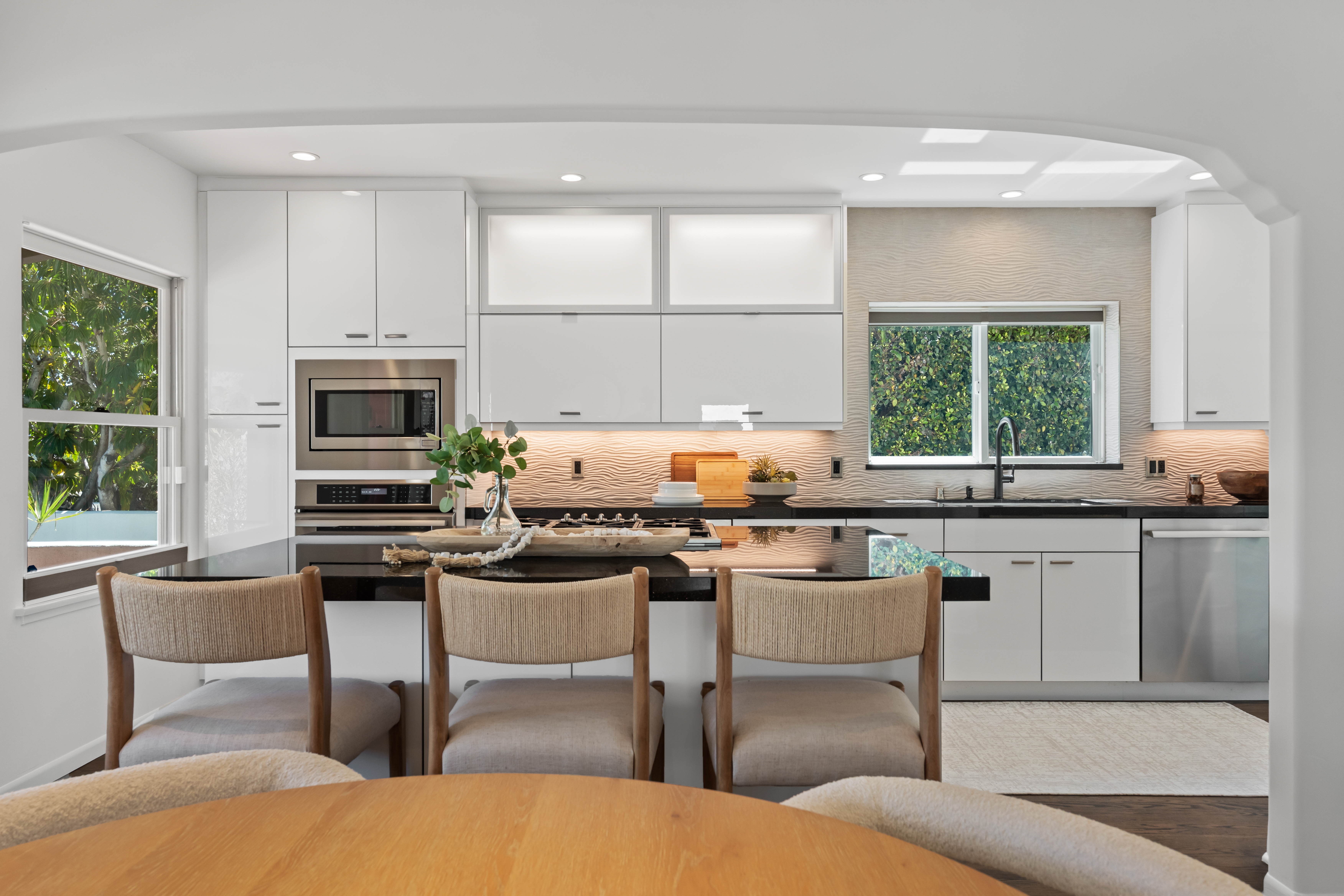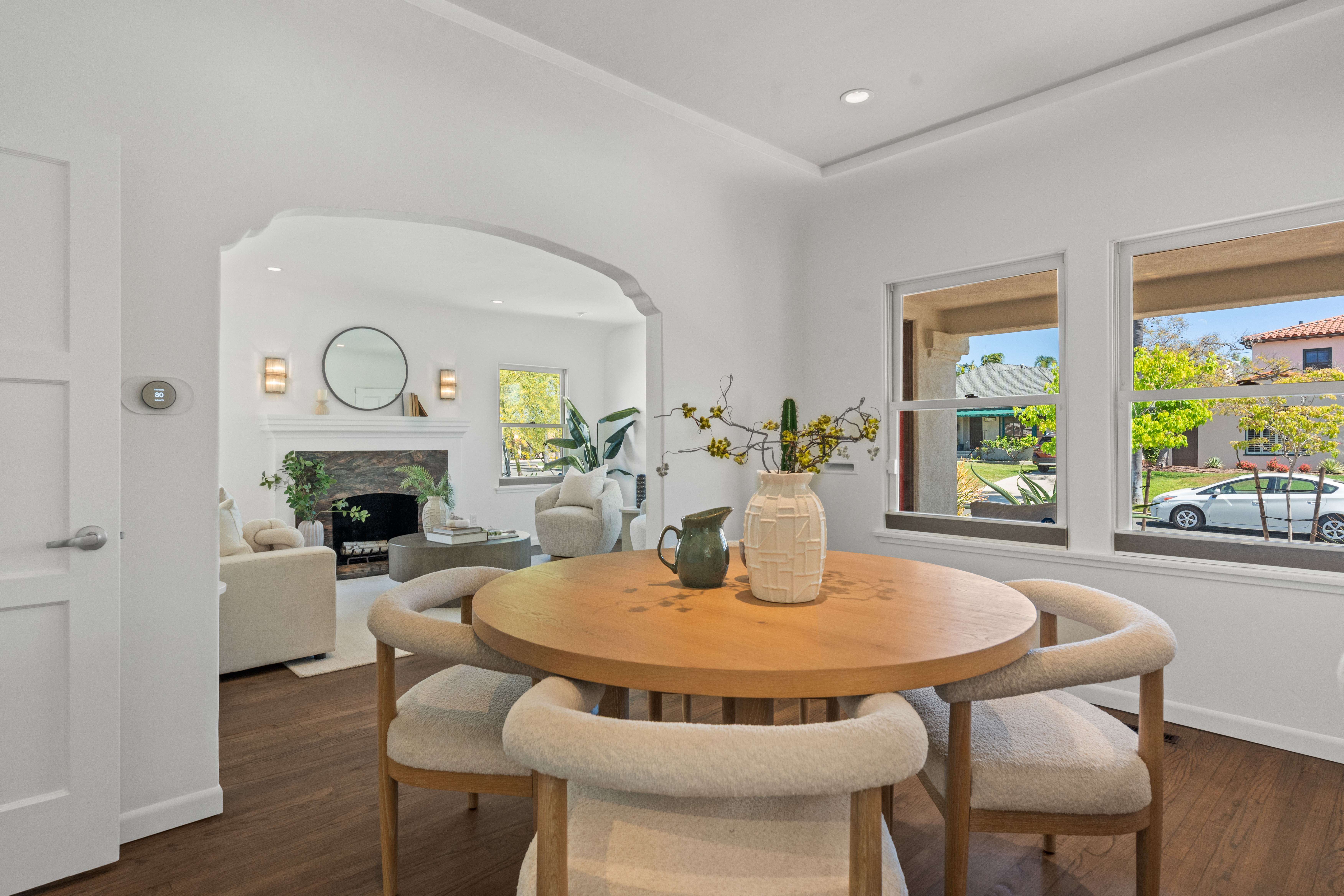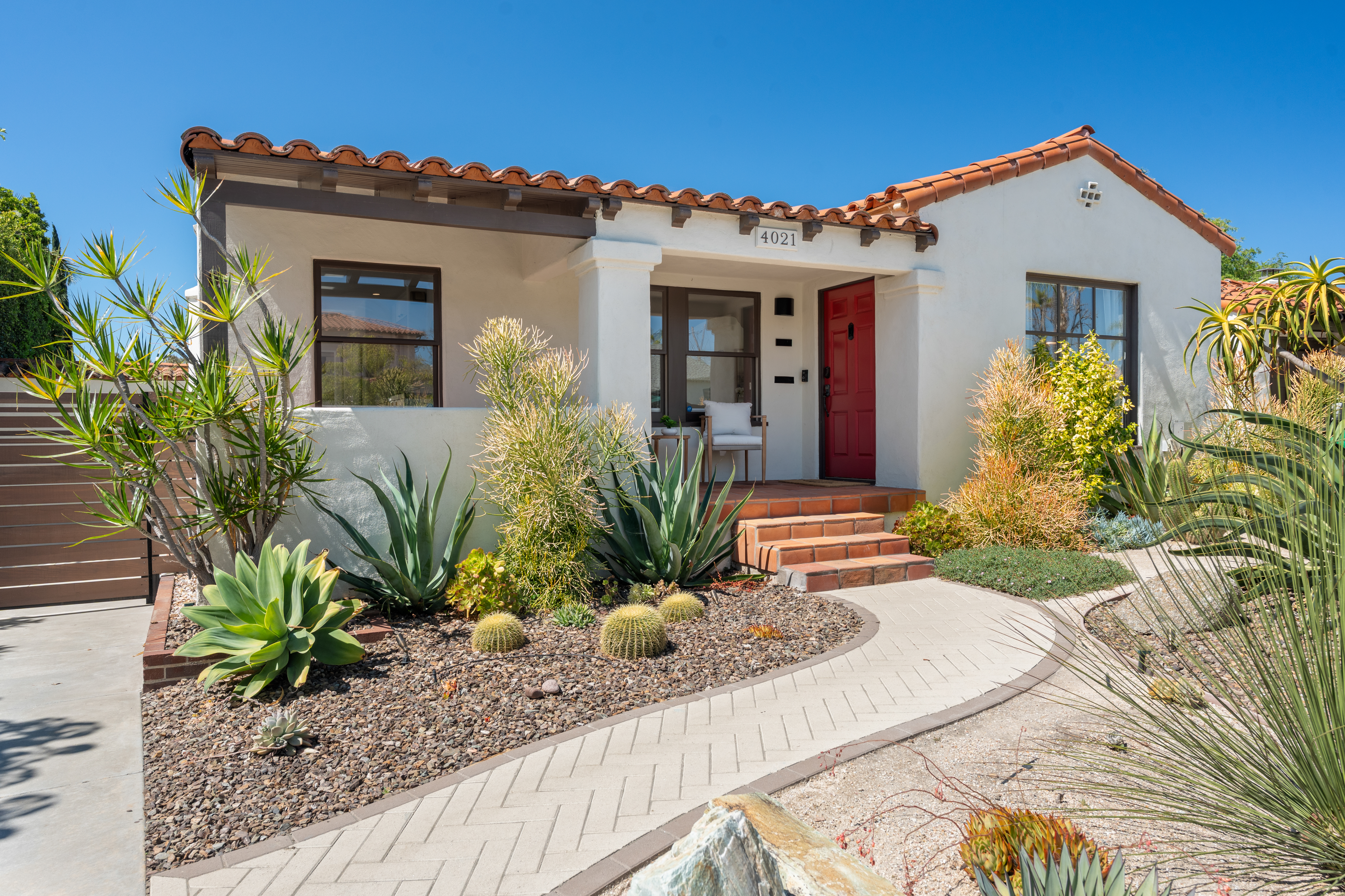 Nestled within the idyllic enclave of Kensington, a charming neighborhood in San Diego known for its distinct village atmosphere, this beautifully restored 1937 Spanish residence blends timeless architectural character with refined modern living. Situated on an expansive 15,000+ square-foot lot, the single-level home offers approximately 1,554 square feet, featuring three bedrooms and three elegantly renovated bathrooms, all thoughtfully updated while preserving the home’s classic Spanish charm. The home has been meticulously renovated throughout and features a stunning open kitchen with premium Thermador appliances, including a wine refrigerator and refrigerator drawers deal for effortless entertaining. The kitchen flows seamlessly into the dining and living areas, where a welcoming gas fireplace creates a warm gathering space. Extensive upgrades include beautifully remodeled baths with designer tile and fixtures, updated plumbing and electrical, water softener system, EV charger, and an electric driveway gate. Outdoors, the property transforms into a private retreat with three inviting backyard decks, a fully fenced yard, and low-maintenance landscaping enhanced by dramatic exterior lighting. A converted garage studio with a dry kitchen opens through sliding doors to a beautiful Balau wood deck, creating exceptional indoor-outdoor living. Just moments away, Kensington’s vibrant village offers cafés, restaurants, boutiques, markets, dog park, children's playground, banking, salons, and a village library.