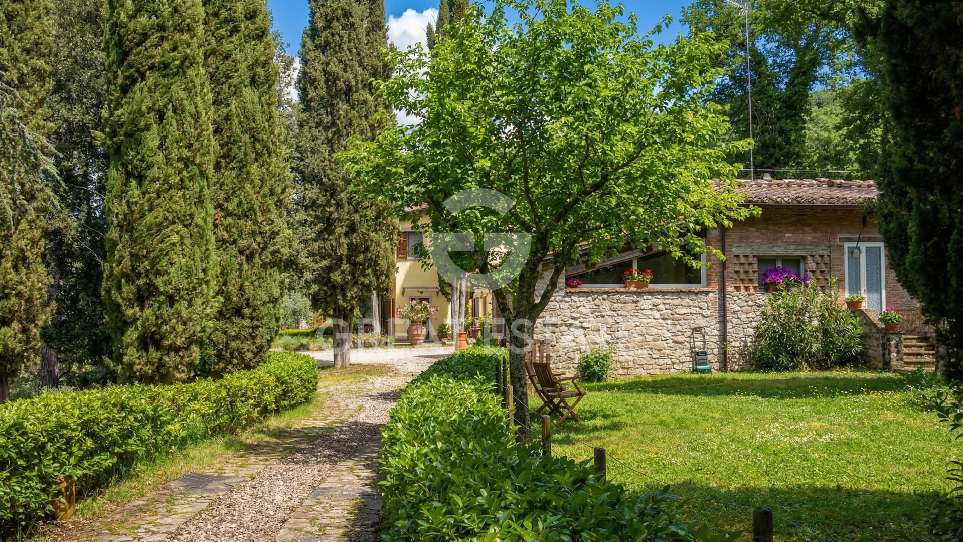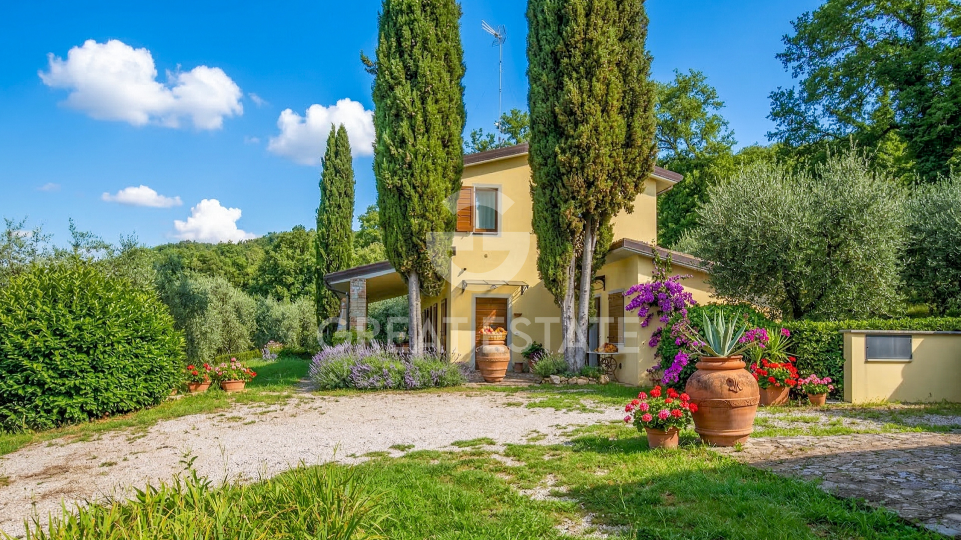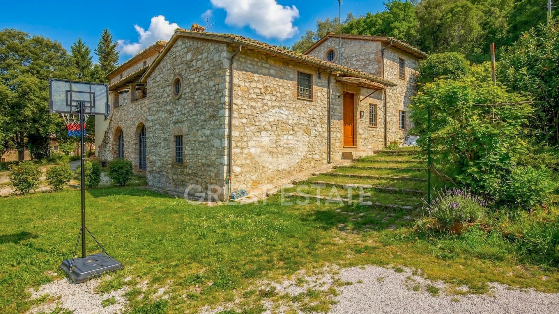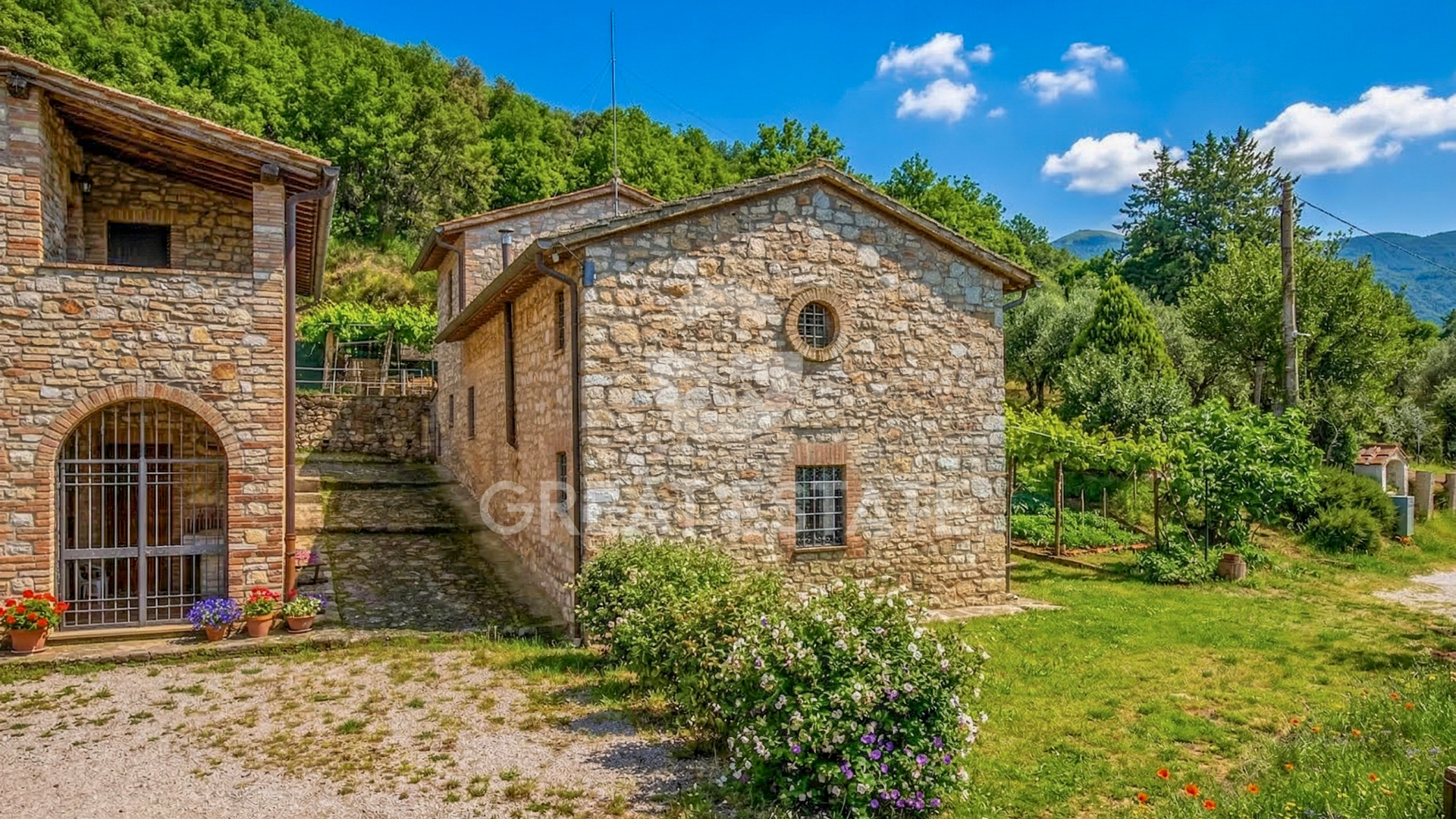 This small estate, hidden among the trees and backed by a hillside, enjoys a secluded position while at the same time being very close to a town offering all essential services. It is reached via a road in excellent condition which, leaving the town and following a beautiful cypress-lined avenue, leads to the hamlet. In just a moment it feels as though you have traveled miles, as you suddenly find yourself immersed in the countryside, surrounded by green fields and complete tranquility. The estate is composed of 7 buildings, of which 5 are residential properties, one used as an office and garage with a swimming pool alongside, and one serving as a pool house. The property is ideal for those wishing to establish an agriturismo business or simply to use the main residence as a private home and generate long-term rentals. It is surrounded by a total of 1.47 hectares classified as urban land and a further 19.09 hectares of agricultural land with extensive flat arable fields. The houses are arranged as follows: - Plastered residential house built in 2017/2018 with a portico and arranged over two above-ground floors connected by an internal staircase, comprising entrance hall, spacious living room, kitchen, bathroom and storage room, 3 bedrooms of which 2 have en suite bathrooms, an additional bathroom and hallway. - Stone farmhouse dating back to the late 1800s and restored in the 1990s, arranged over two above-ground floors connected by an external staircase and divided into two apartments. On the ground floor, an apartment consisting of living room, eat-in kitchen, 2 bedrooms, 2 bathrooms, two storage rooms (one with external access), hallway, pizza oven and a loggia. The first-floor apartment comprises living room, kitchen, dining room, study, 2 bedrooms, 2 bathrooms, a storage room and a terrace. - Stone residential house, partially plastered, built in the late 1800s and renovated in 2022, arranged on one above-ground floor, composed of eat-in kitchen, living room, one bedroom, two bathrooms, hallway and a portico. - Stone residential house built in the late 1800s and renovated in the 1990s, arranged over three above-ground floors connected by an internal staircase, comprising kitchen, living room, 3 bedrooms, two bathrooms and hallway. - Stone residential house built in the 1400s and renovated in the 1990s, arranged over two above-ground floors connected by an internal staircase, comprising living room with kitchen, bedroom and bathroom. - Plastered annex for office/garage use built in 2017/2018 on one above-ground floor with two large rooms and a bathroom. - Plastered pool house built in 2017/2028 with a large room and a storage room/bathroom. - Swimming pool built in 2027/2018. The land is divided as follows: 4.398 hectares of coppice woodland, 1.789 hectares of arable land, 6.178 hectares of arable land with trees, 2.187 hectares of olive grove, 0.492 hectares of wooded pasture, 4.047 hectares of mixed woodland.