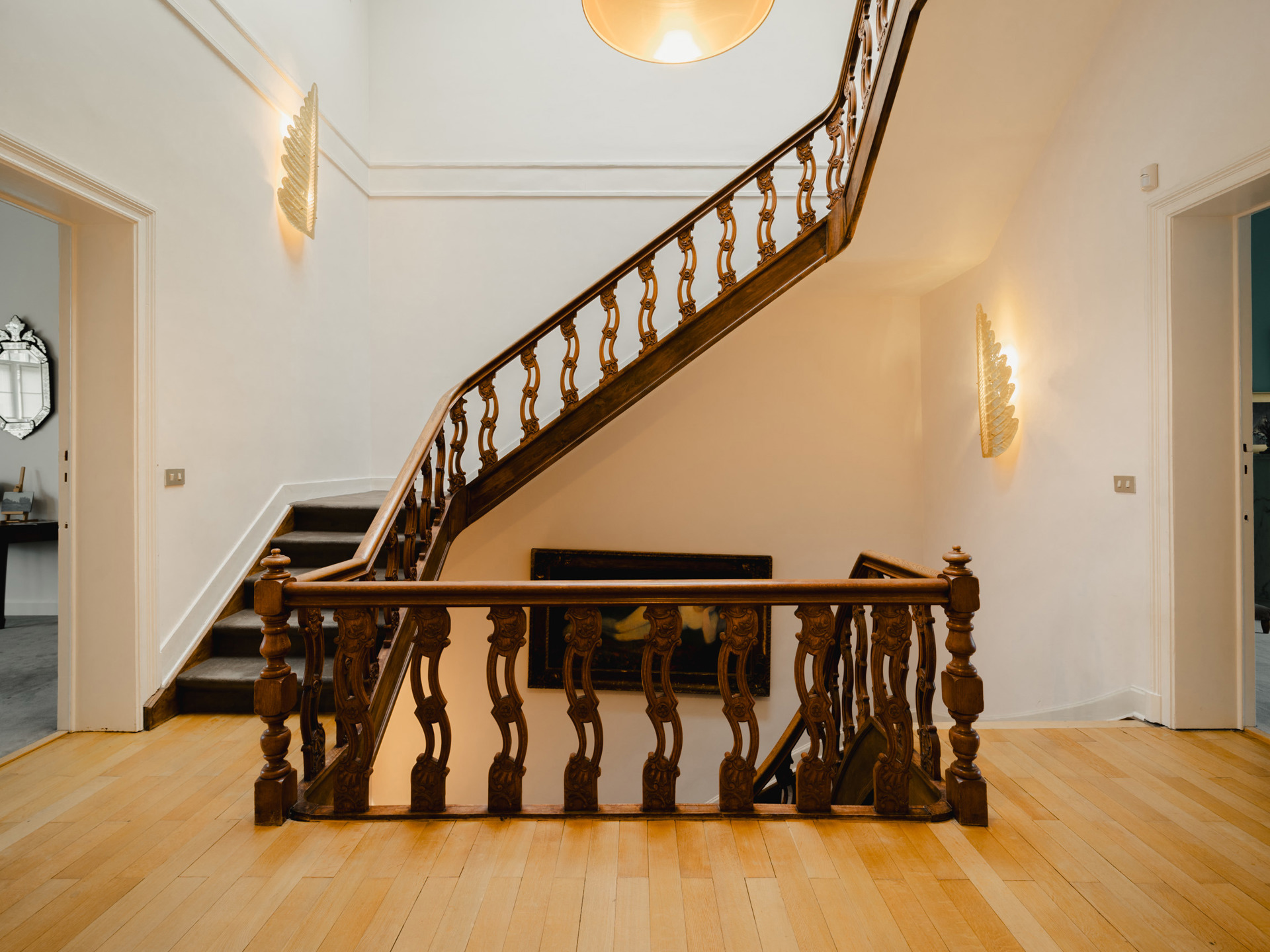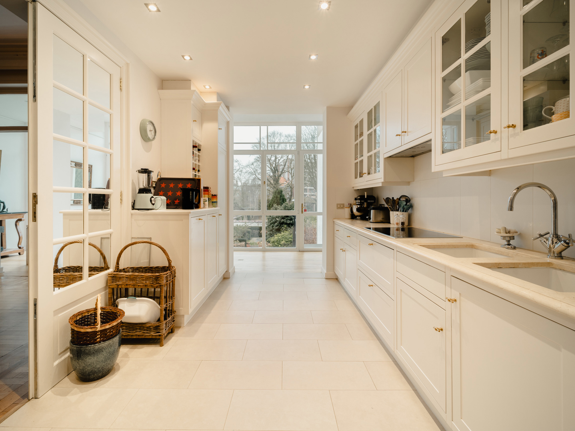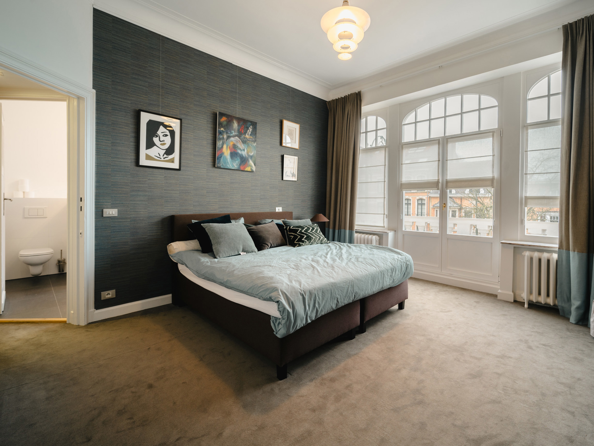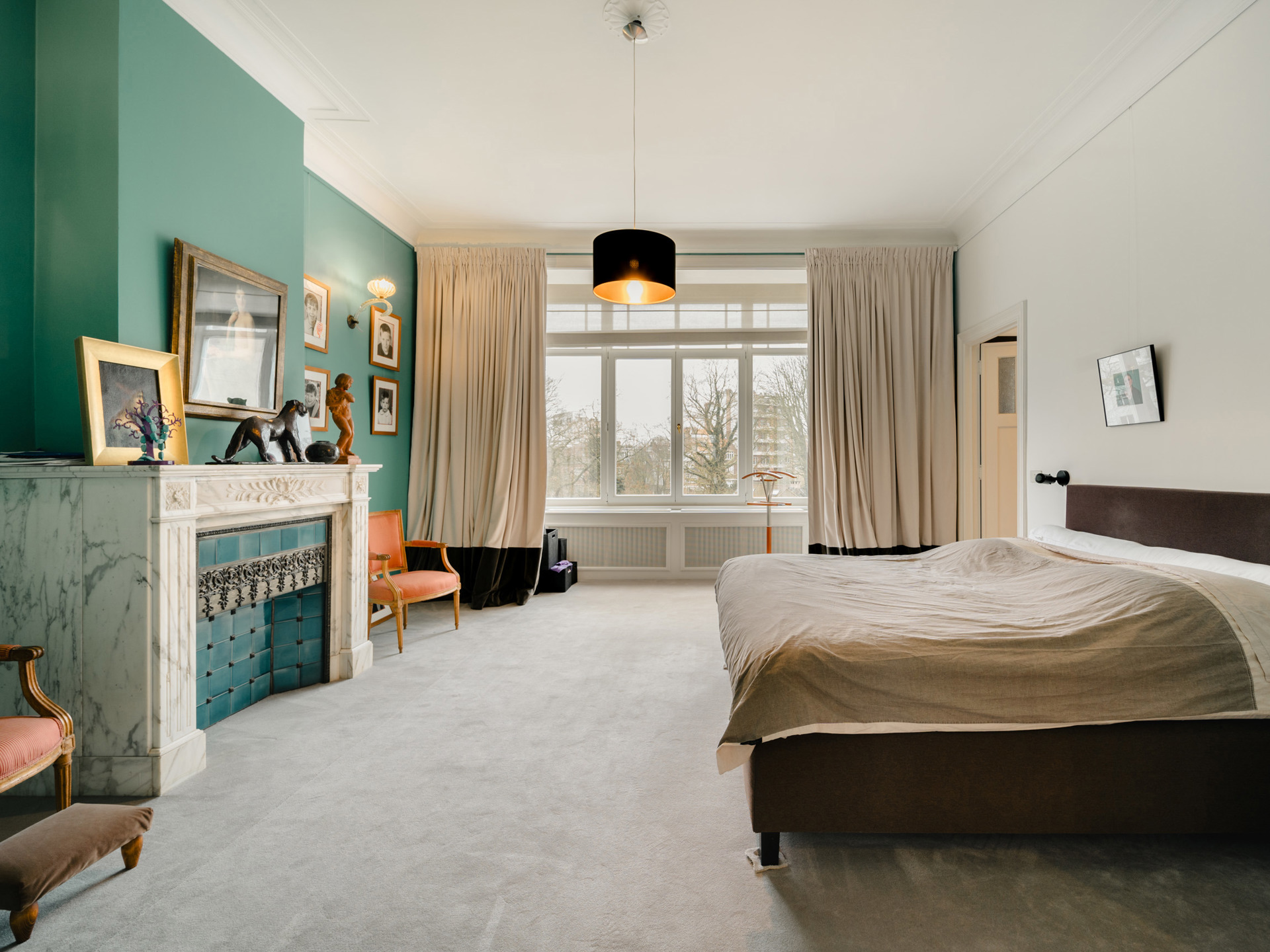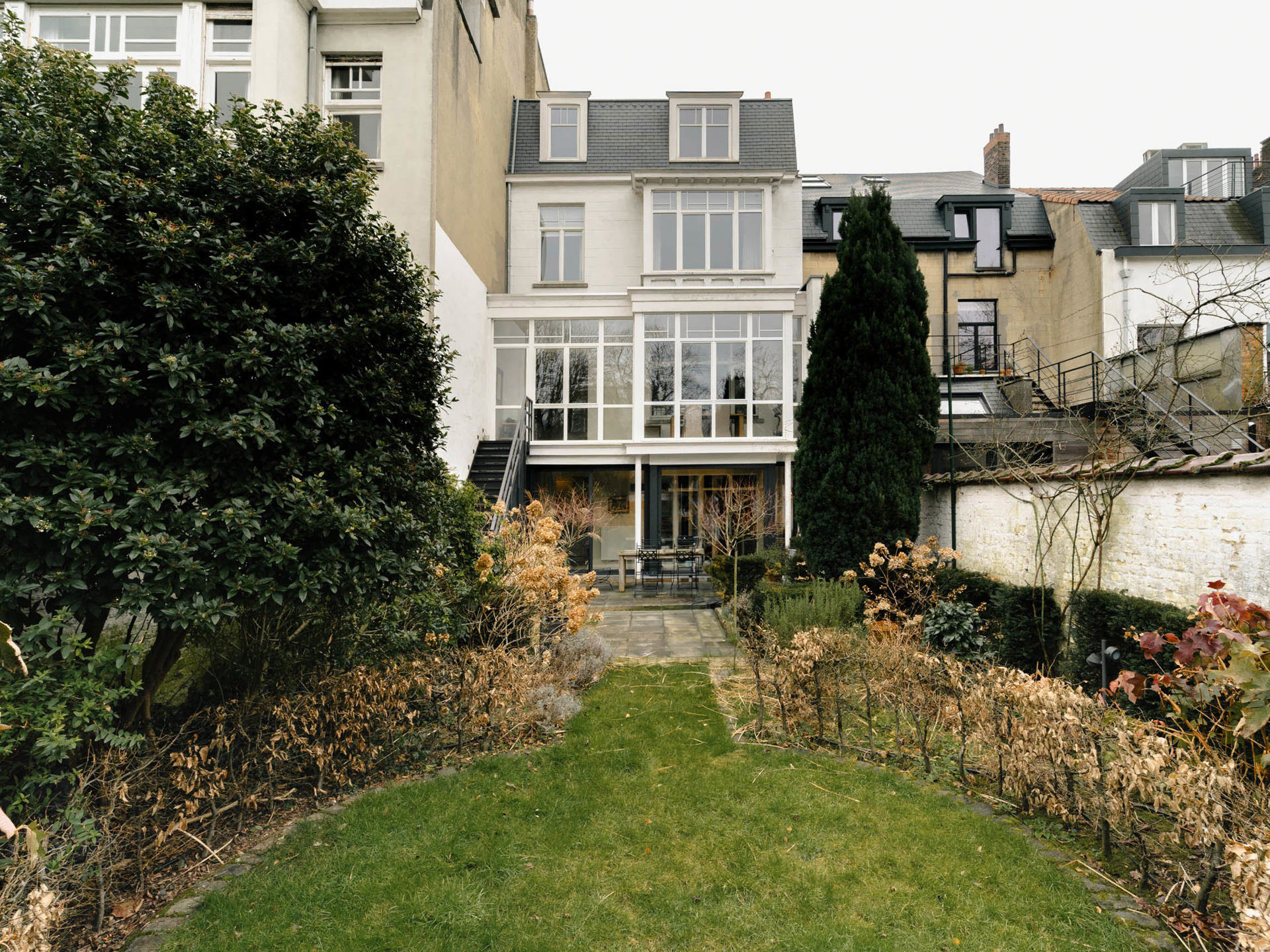 Private mansion from the beginning of the 20th century with a gross surface area according to EPC of ± 599 m² offering five bedrooms, a studio of ± 40 m² and a pleasant garden ideally oriented. The Beaux-Arts style house opens on the ground floor onto a large entrance hall with cloakroom and guest toilet and leads to an independent studio of ± 40 m² with living room/bedroom area decorated with integrated joinery, shower room, kitchenette and access to the terrace and garden. On the first floor, also accessible by the second entrance, the living spaces are organized in a row and offer a double living room, dining room, winter garden and fully equipped kitchen, they are bathed in light thanks to the large bay windows facing the landscaped and west-facing garden. The central staircase leads upstairs and serves the master bedroom with separate dressing room and full bathroom and a second bedroom with built-in dressing room and bathroom. On the 2nd floor, a bedroom with dressing room and private bathroom and two bedrooms sharing a bathroom. In the basement, a large multipurpose space with built-in library, a TV lounge and an air-conditioned wine cellar. The Parvis Saint-Pierre is known for its quality of life. Others: garage and two outdoor parking, laundry room, garden maintenance charges 300 EUR. EPC: D-. For any further information, please contact Laurence Ballaux on +32 (0)2 640 08 01.