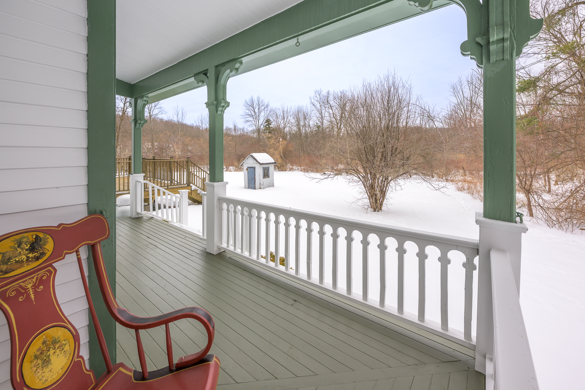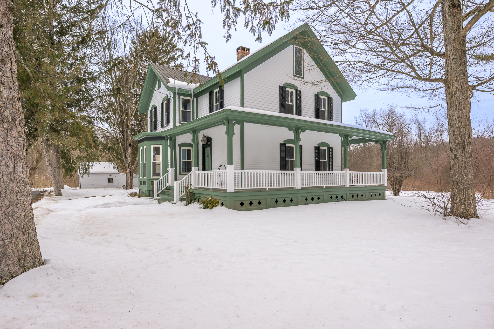 If you are looking for a move-in ready village farmhouse in Hudson Valley's Columbia County, you have found it! This gut-renovated home in charming and desirable Old Chatham is perfect for a weekend or full-time residence. There are 2 large, primary bedrooms and another room on the first floor suitable for a bedroom, 2 ½ retiled, replumbed and rebuilt bathrooms, a huge dressing room with custom built shelves and clothes racks, a wood burning stove, formal dining room, gourmet kitchen and closets everywhere. The new clothes washer and dryer are conveniently located on the 2nd floor. There is also a room that could easily be used as a bedroom on the first floor.This home features a brand-new Wolf Stove, Bosch refrigerator and dishwasher, quartz kitchen countertops and gorgeous custom solid wood cabinets, farmhouse sink, thermally efficient windows, new wrap around deck and site-specific water filtration system. The hardwood floors have been stripped, sealed and coated throughout the entire house. The entire exterior of house was stripped, sanded and painted in 2025. The roof was repaired / replaced as needed in 2025.The basement features a freshly- poured concrete basement floor, a Beckett furnace installed in 2017, and hot water heater installed 2017.23 Frog Alley awaits its new owners. Come see it. Call listing agent Richard Byrne at for information and to schedule a showing.