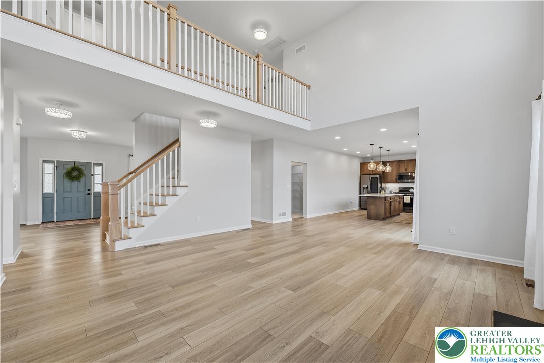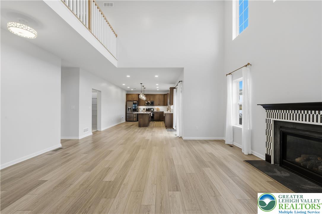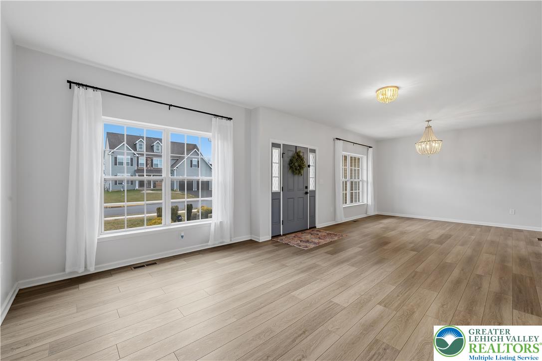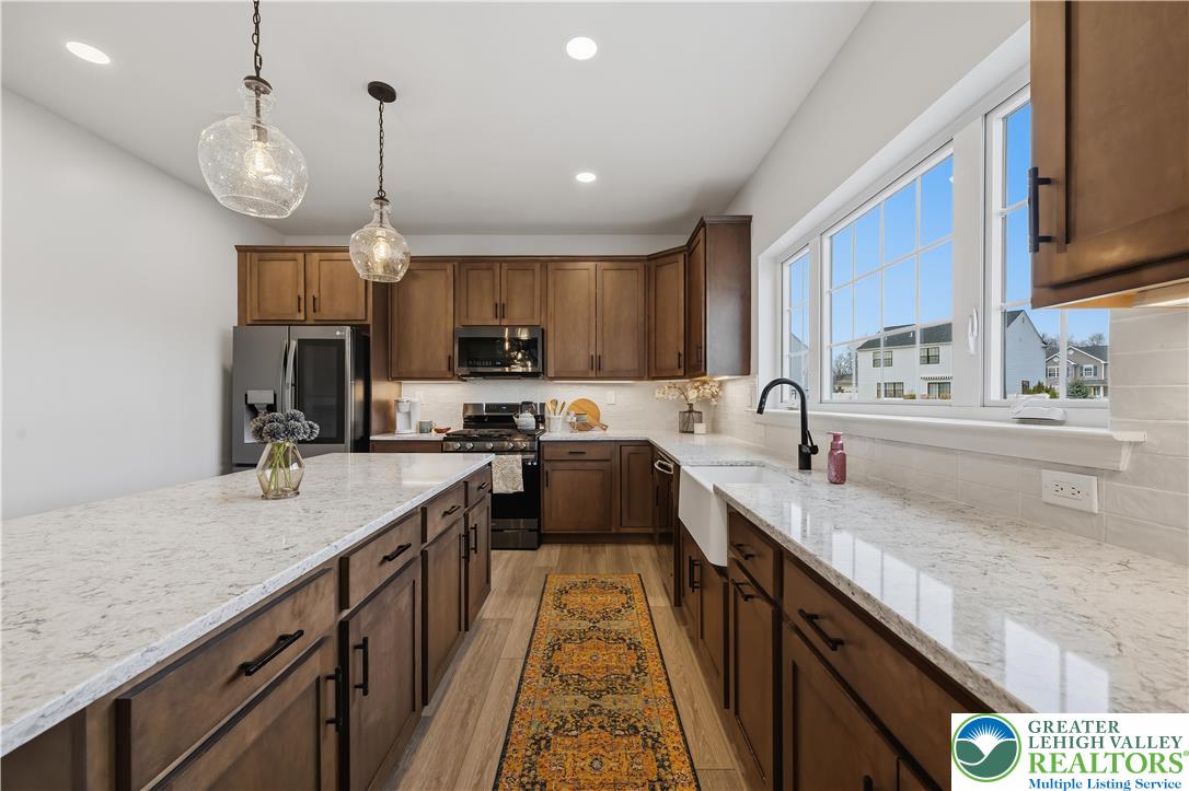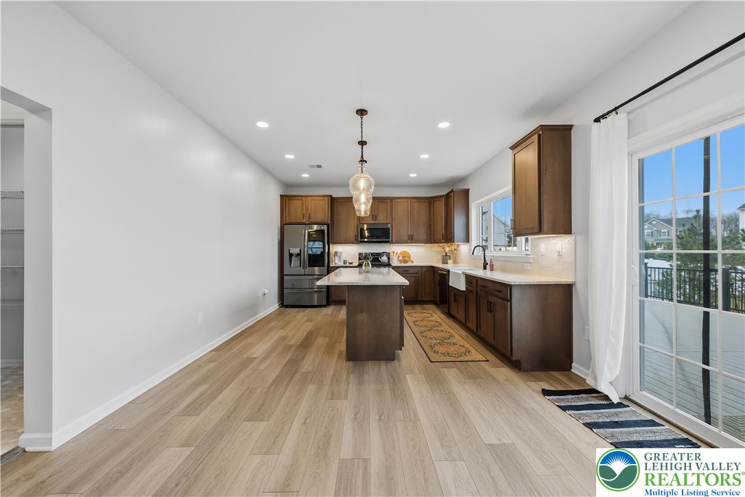 Welcome to 155 Barrall Street, a beautifully upgraded, 4 year young home in the highly sought after Nazareth School District. Offering over 4,000 sq ft, this open concept home features a dramatic two story great room with gas fireplace, leading to a fully equipped kitchen with upgraded appliances, gas stove, extended island with quartz countertops, marble mudroom floor, and pocket door pantry. The owner's suite, one of four spacious bedrooms, includes a sitting area and two massive walk in closets, while 4.5 baths and a separate second floor laundry provide ultimate convenience. The fully finished basement adds versatility with a wet bar, full bath, double door walkout to the backyard, and additional unfinished space for storage, housing the tankless water heater and furnace. Other upgrades include a finished polyurea garage floor with ample storage. Step outside to your backyard oasis, fully fenced and backing to a retention pond for an open, unobstructed setting with no homes directly behind. Enjoy a heated fiberglass in ground pool with automatic saltwater system, hot tub, expansive composite deck, custom gazebo with built in electrical outlets, and extensive hardscaping and landscaping. Landscape lighting transforms the space at night, creating a true resort style retreat perfect for summer entertaining. A rare opportunity in a well established neighborhood set within a charming, historic town, offering convenient access to major highways, shopping, dining, and medical services.