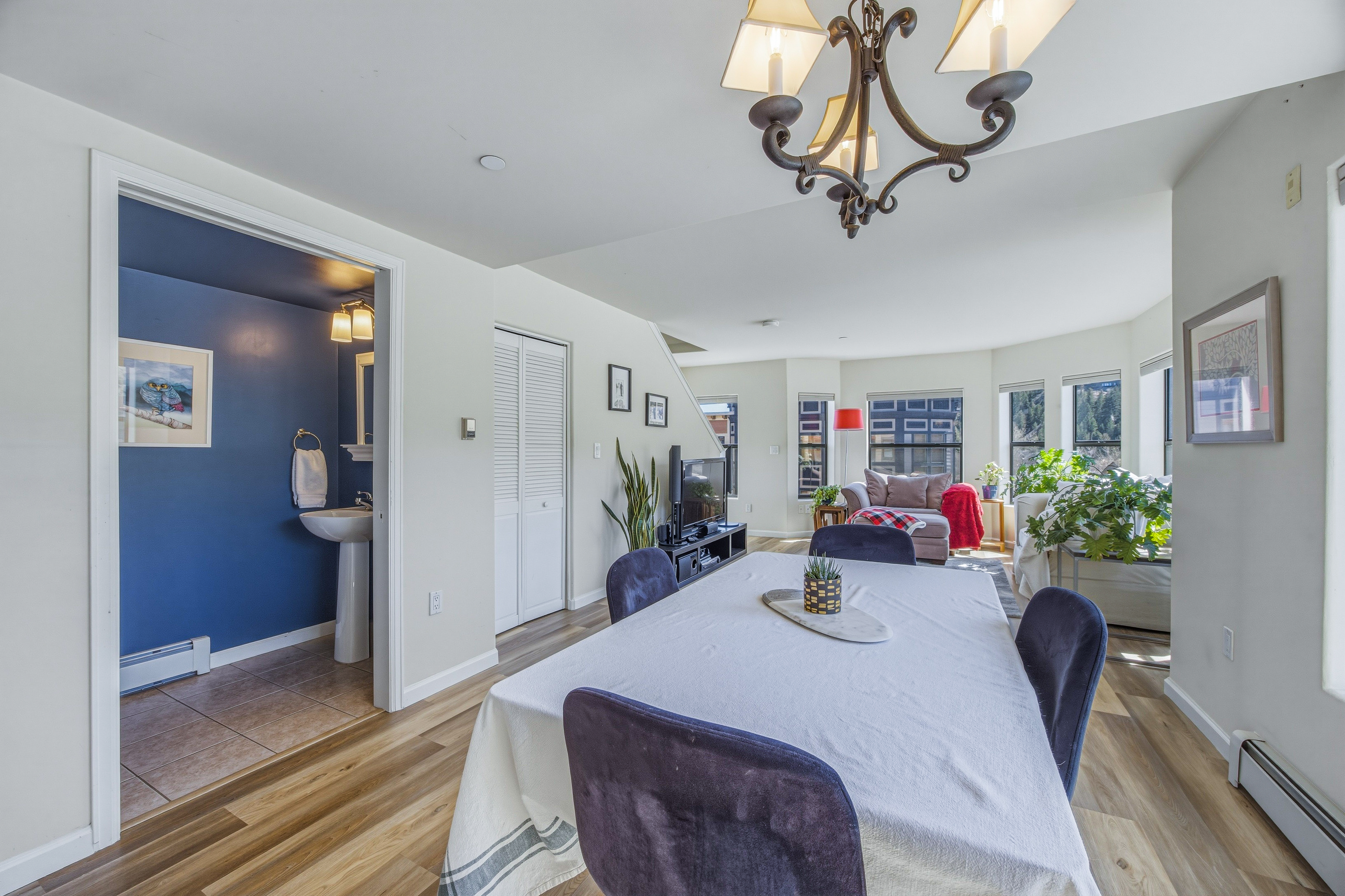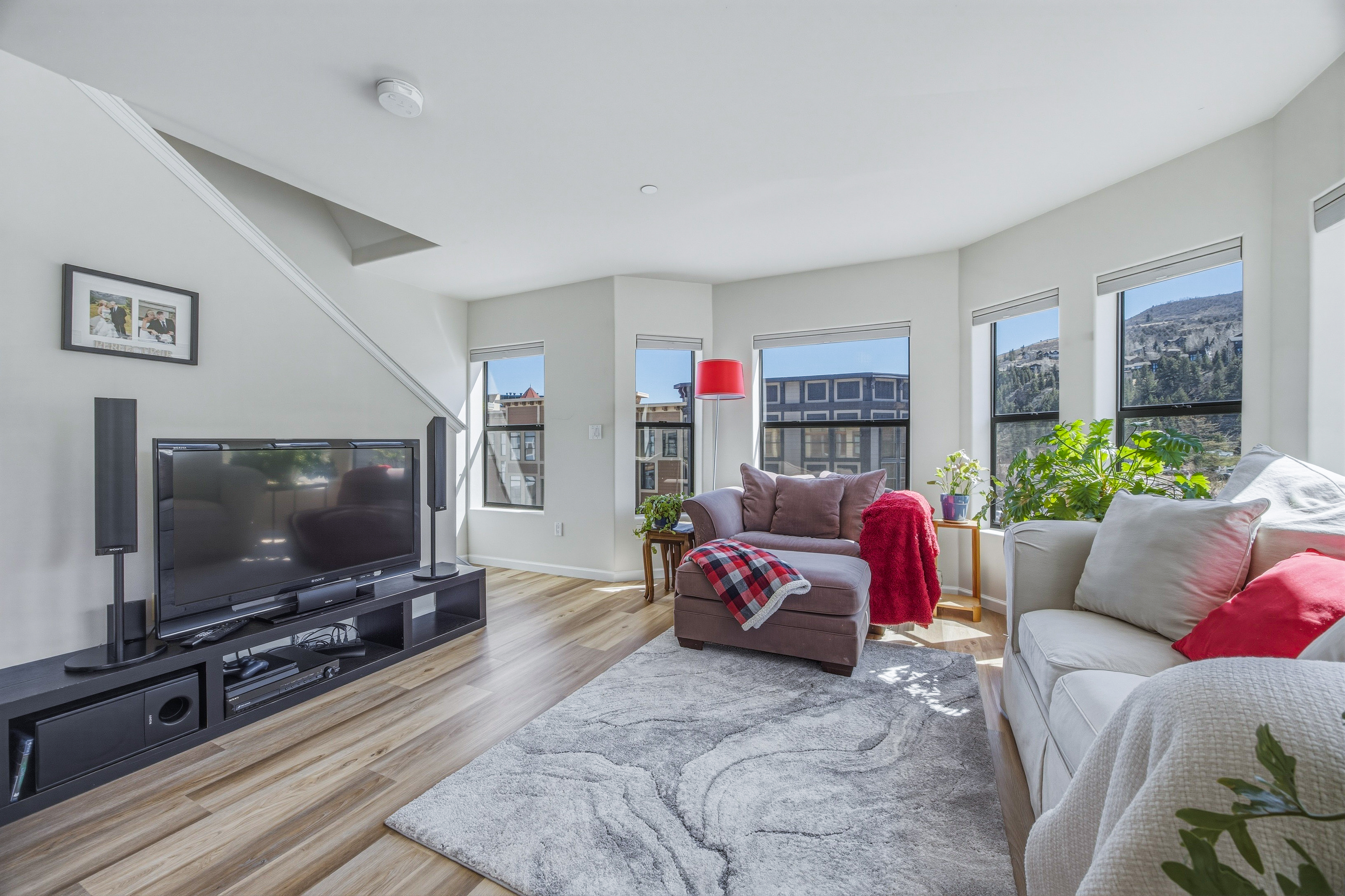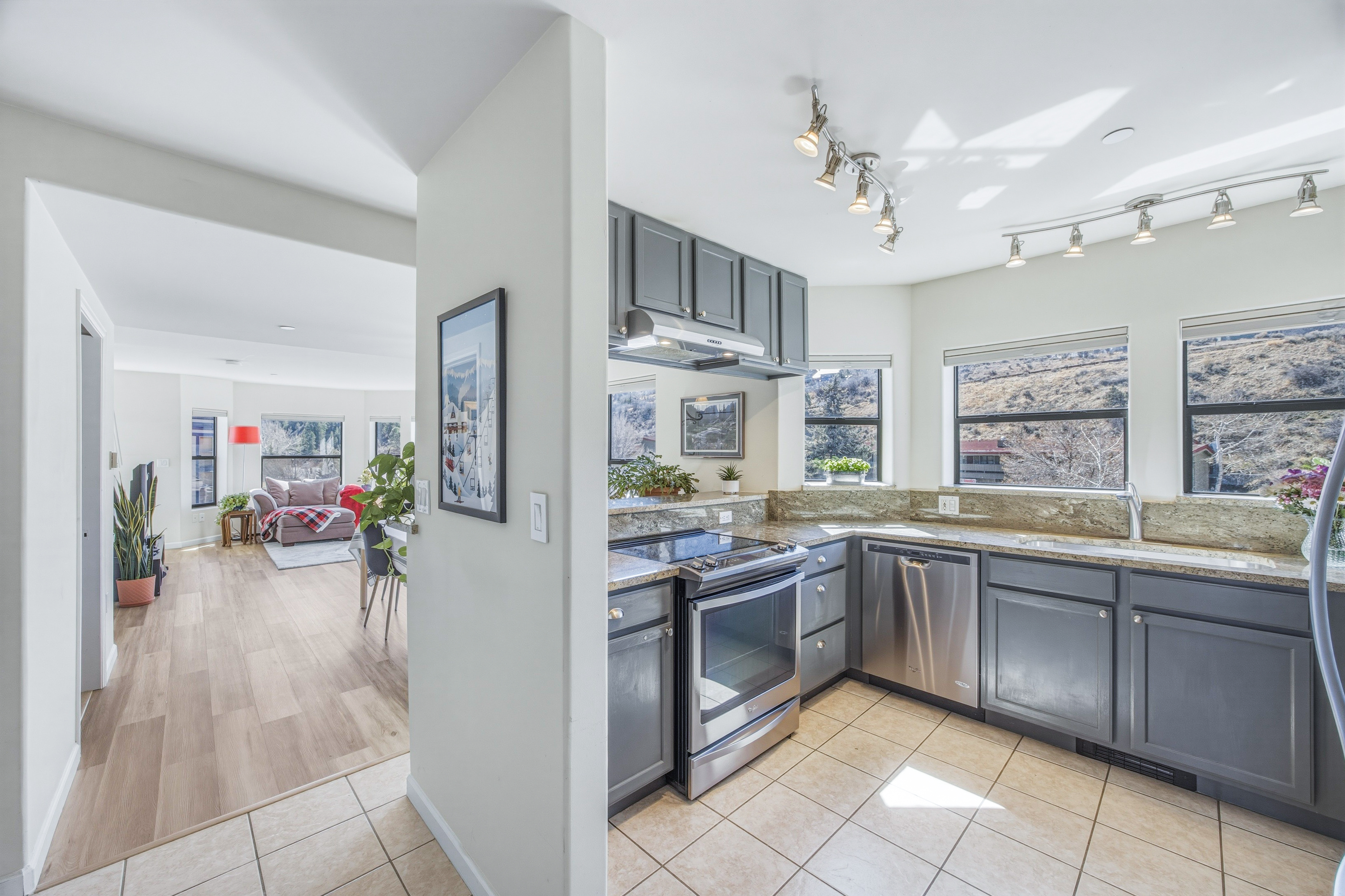 This deed-restricted home is a rarely available, spacious south-facing top-floor corner residence with abundant natural light and views toward Vail Mountain. The desirable corner location and top-floor setting create a bright and inviting living space. The home features a desirable two-level floor plan, with two spacious bedrooms upstairs, each with its own ensuite bath, plus a half bath on the main level for guests. Interior updates include new luxury vinyl flooring, granite kitchen countertops and updated electrical. Additional highlights include two unassigned underground parking spaces in the Riverwalk garage with elevator access, resident bike storage, and a private ski/storage locker located in the garage. Conveniently located in the Amber Building above Starbucks within the Riverwalk district, offering easy access to shops, dining, and everyday amenities. Call us for Deed Restriction details