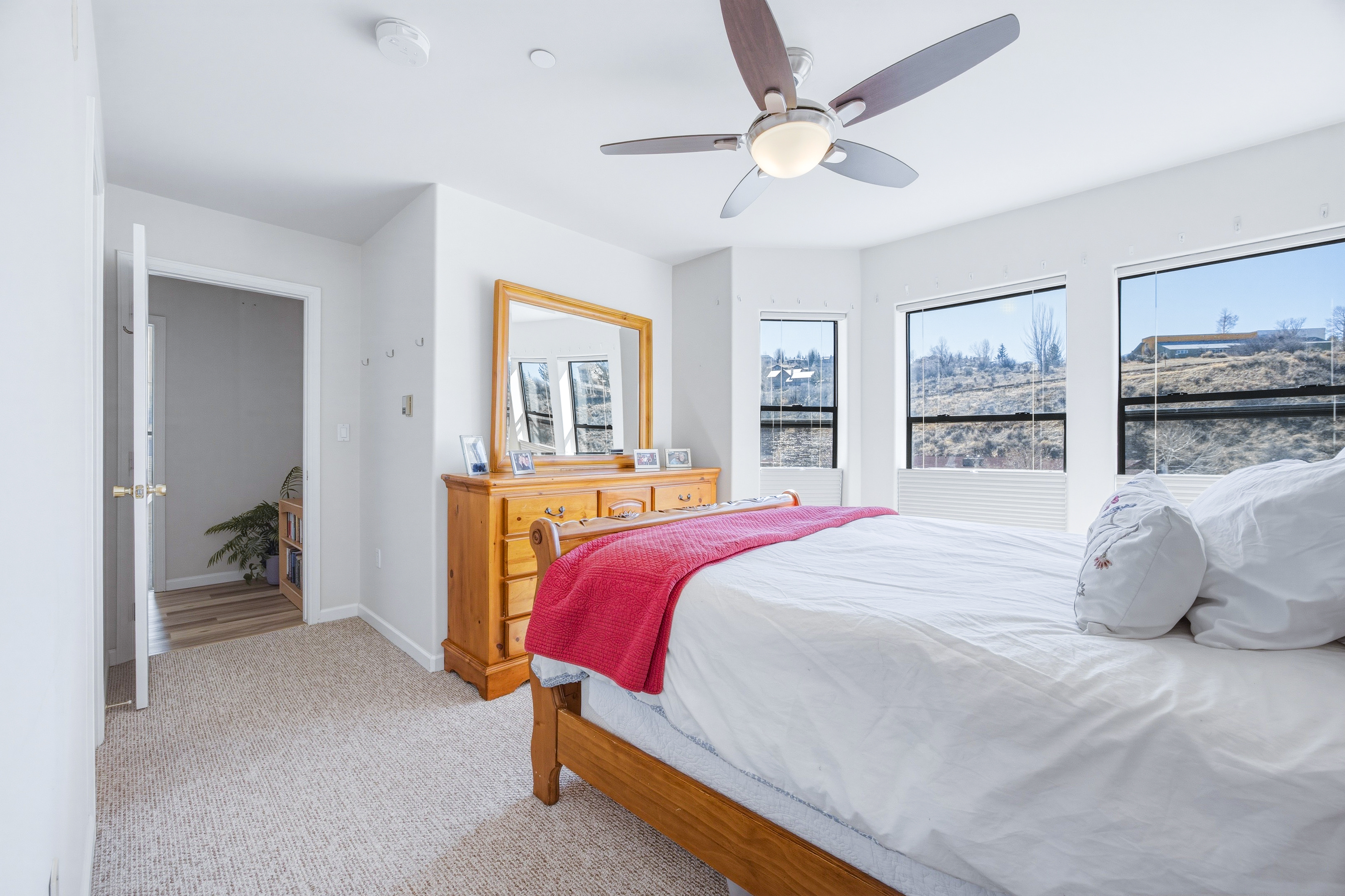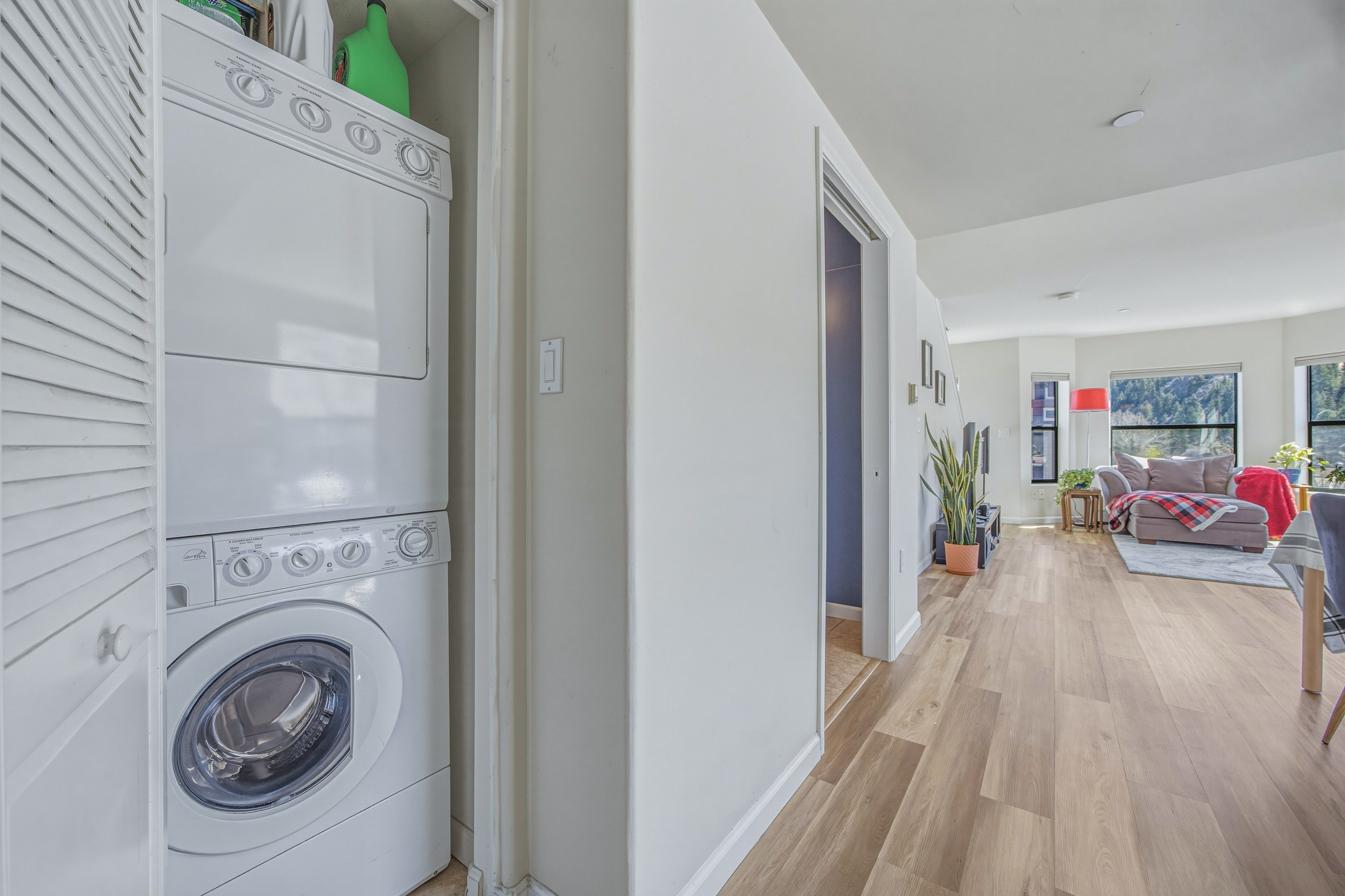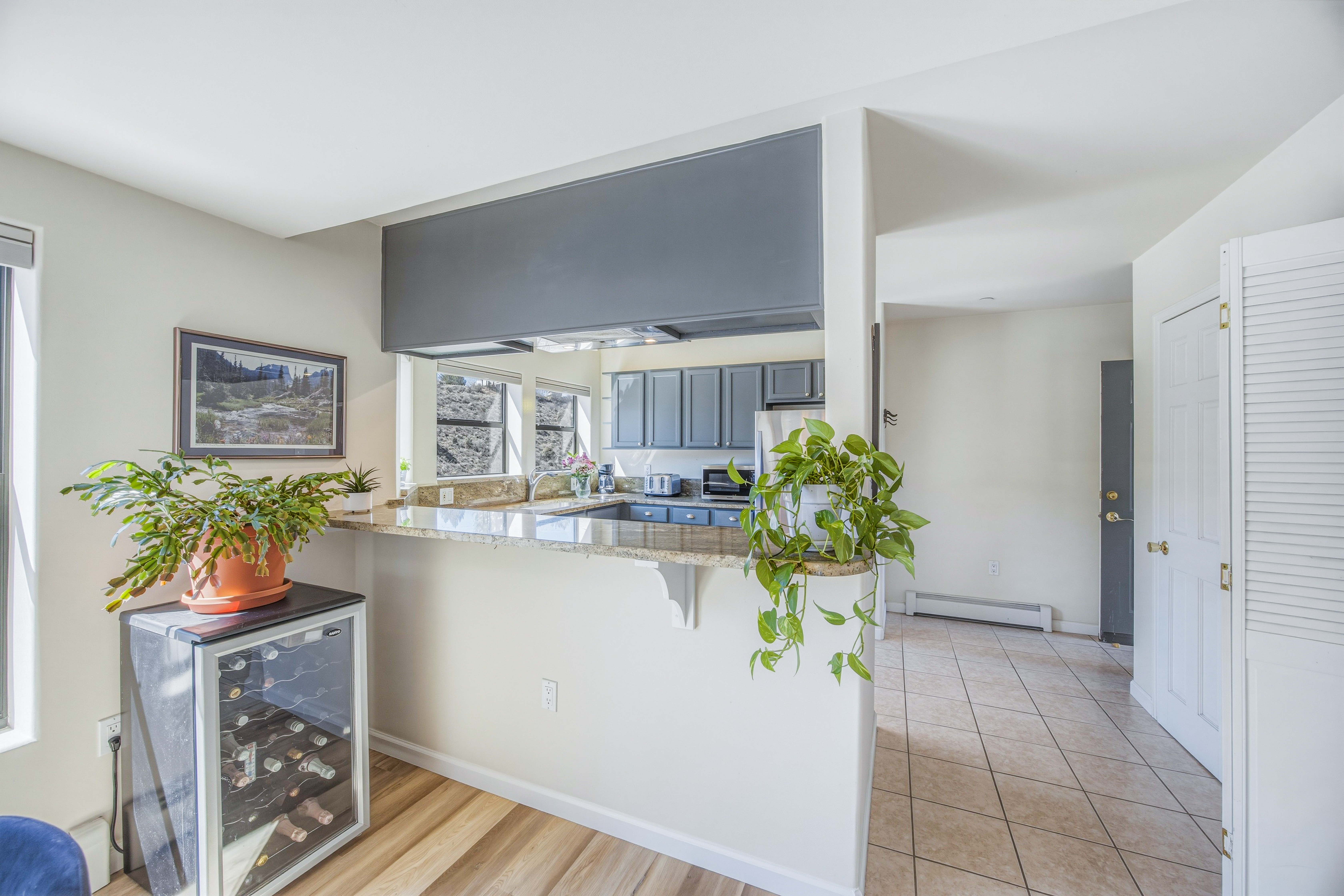 This deed-restricted home is a rarely available, spacious south-facing top-floor corner residence with abundant natural light and views toward Vail Mountain. The desirable corner location and top-floor setting create a bright and inviting living space. The home features a desirable two-level floor plan, with two spacious bedrooms upstairs, each with its own ensuite bath, plus a half bath on the main level for guests. Interior updates include new luxury vinyl flooring, granite kitchen countertops and updated electrical. Additional highlights include two unassigned underground parking spaces in the Riverwalk garage with elevator access, resident bike storage, and a private ski/storage locker located in the garage. Conveniently located in the Amber Building above Starbucks within the Riverwalk district, offering easy access to shops, dining, and everyday amenities. Call us for Deed Restriction details