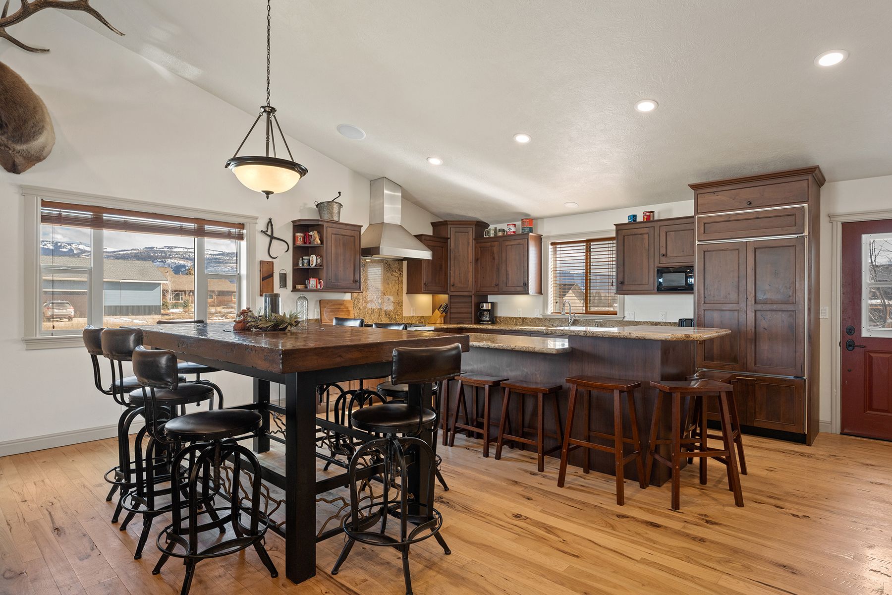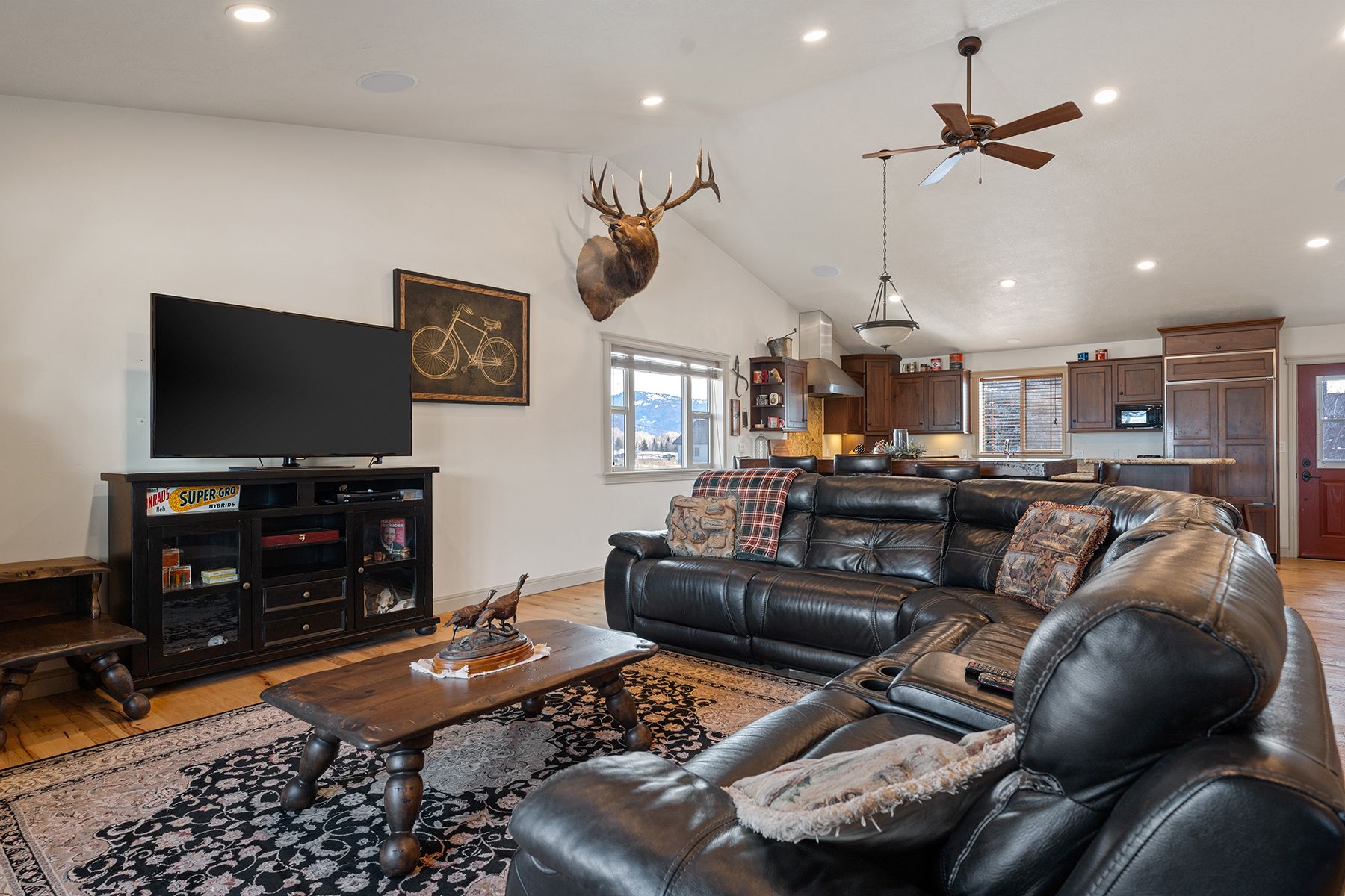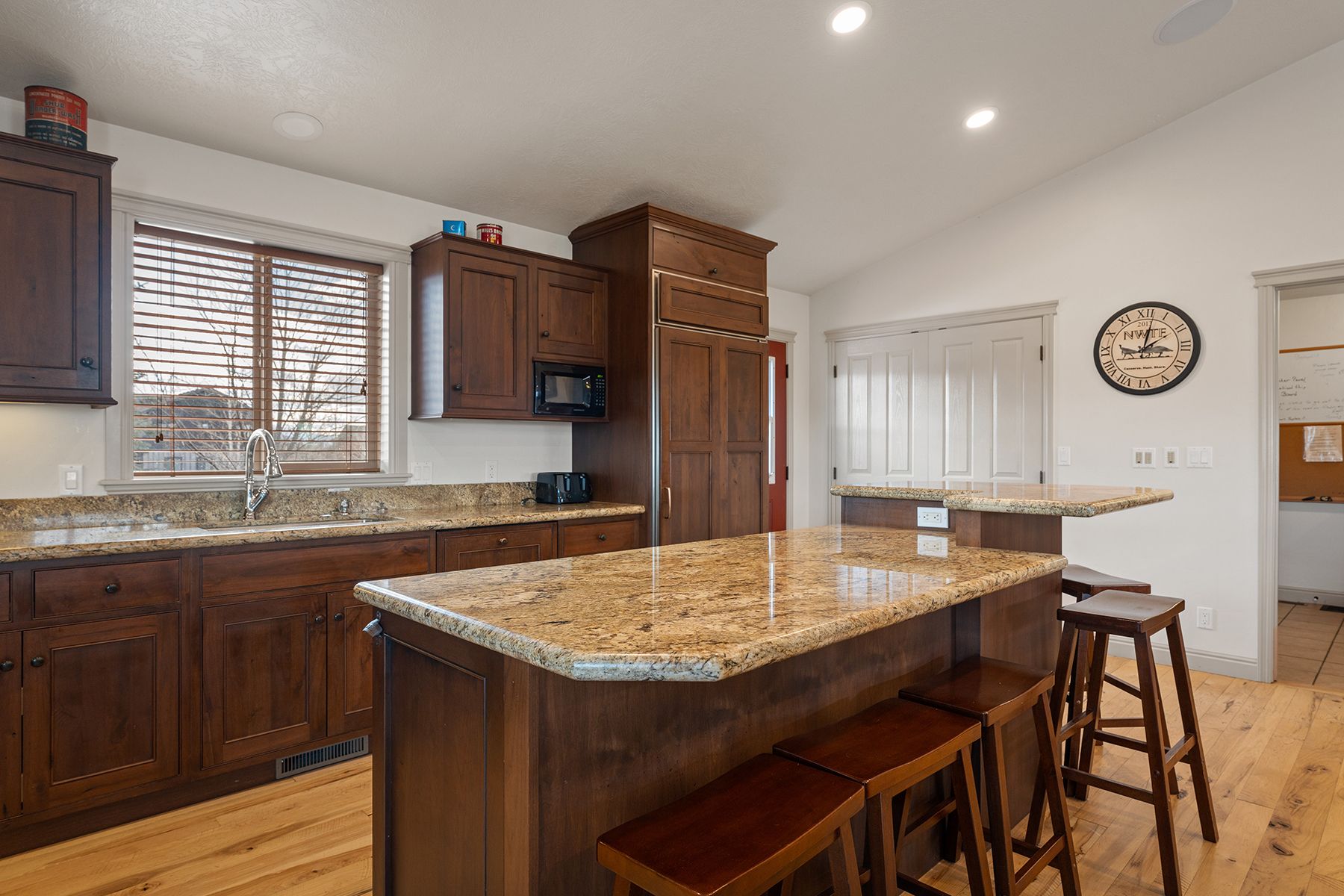 Set in a quiet Driggs neighborhood on a beautifully treed half acre, this thoughtfully built home reflects a level of finish and attention to detail that stands out. Newly redone upstairs hardwood flooring brings warmth throughout, while the kitchen is designed for both everyday living and entertaining, with walnut cabinetry, granite countertops, and Wolf and Sub-Zero appliances.Spanning 2,994 square feet, the home includes three oversized bedrooms, 2.5 baths, and several large living areas. The primary suite includes a large Jacuzzi tub in a spacious bathroom, and the lower level creates a second living space with a wood-burning stove and wet bar. It's a flexible area that can be used a number of different ways over time. The garage is exceptionally large with plenty of room for vehicle gear, and storage.Consistent upkeep is evident throughout, with recent updates including new siding, a new dishwasher, fresh garage paint, a newer built-in vacuum system, and an on-demand hot water heater.The backyard is deep and private, with mature trees, a fenced setting, and a large patio that makes it easy to enjoy outdoor living with real separation from neighboring properties.Located just minutes from downtown Driggs, local schools, and Ski Hill Road for access to Grand Targhee, this is a place that works year-round, with skiing, biking, hiking, and fishing all close by.With a proven short-term rental history and being sold furnished, the property is ready to continue generating income or be used as a full-time home or getaway.