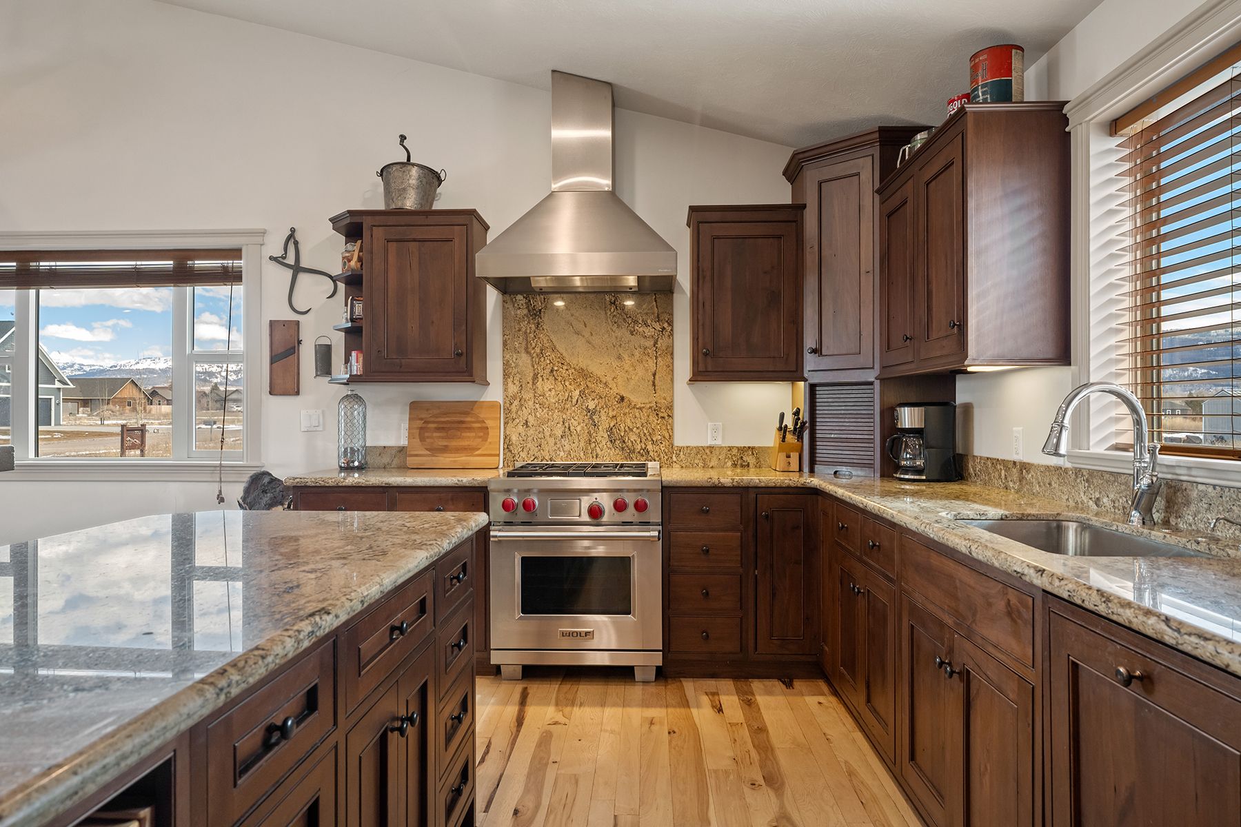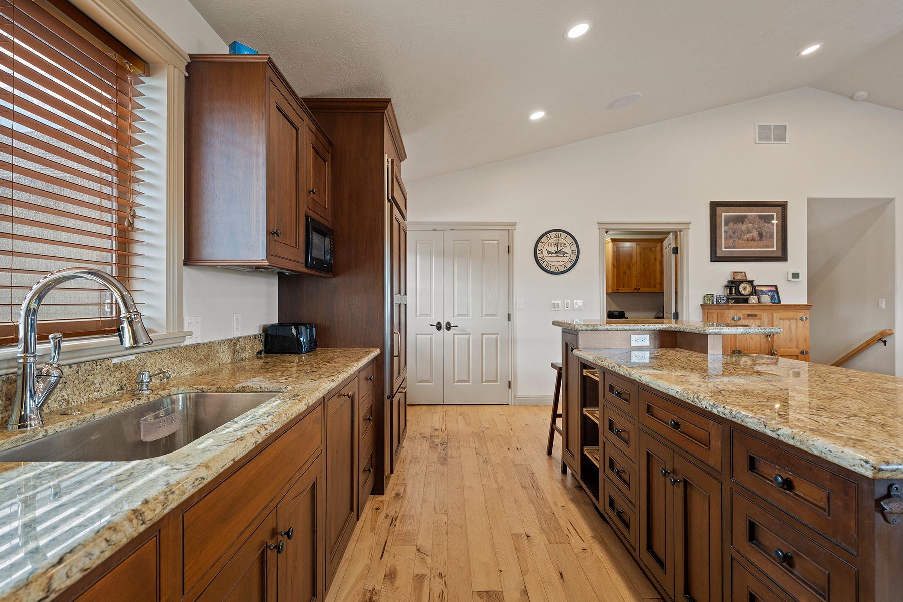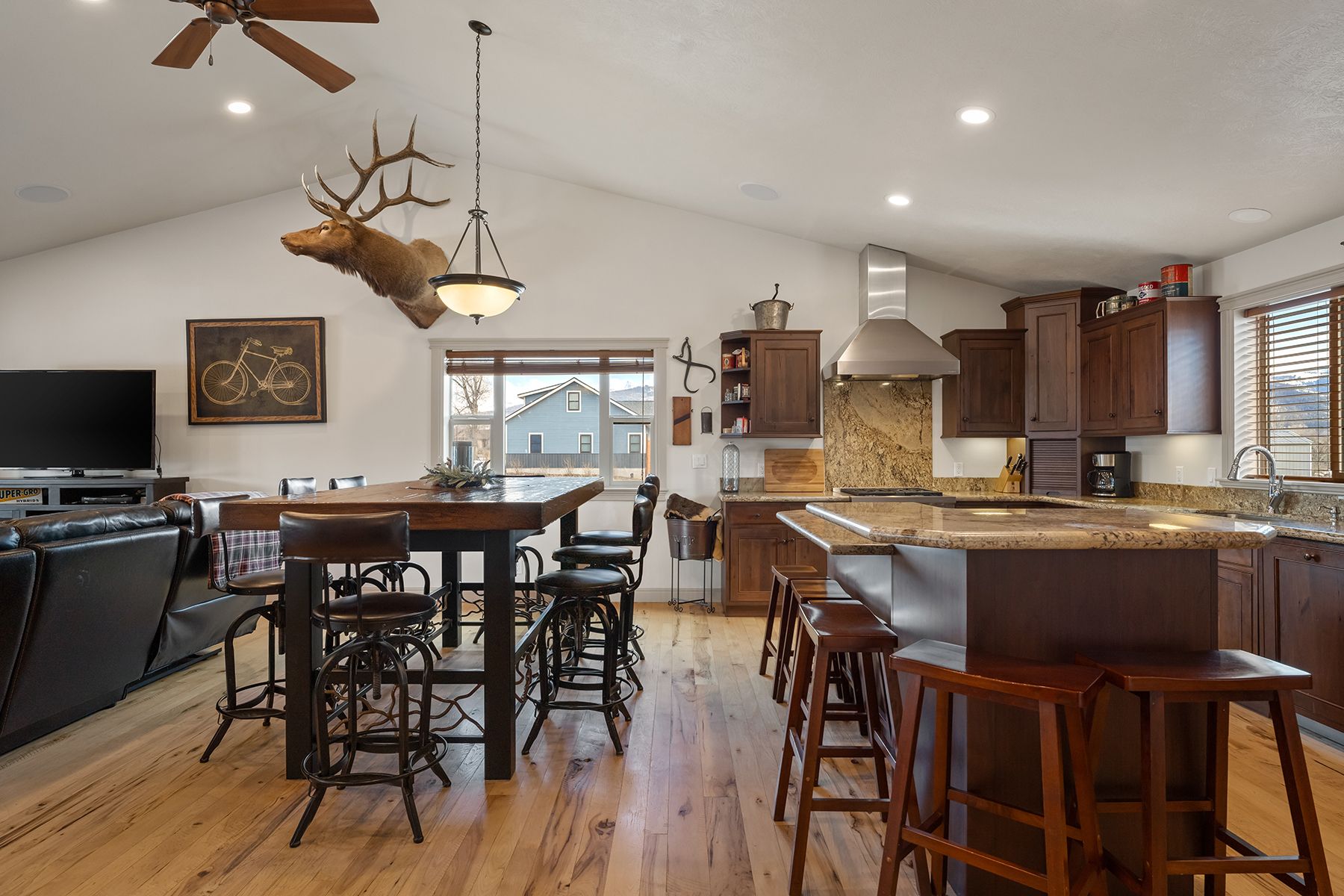Set in a quiet Driggs neighborhood on a beautifully treed half acre, this thoughtfully built home reflects a level of finish and attention to detail that stands out. Newly redone upstairs hardwood flooring brings warmth throughout, while the kitchen is designed for both everyday living and entertaining, with walnut cabinetry, granite countertops, and Wolf and Sub-Zero appliances.Spanning 2,994 square feet, the home includes three oversized bedrooms, 2.5 baths, and several large living areas. The primary suite includes a large Jacuzzi tub in a spacious bathroom, and the lower level creates a second living space with a wood-burning stove and wet bar. It's a flexible area that can be used a number of different ways over time. The garage is exceptionally large with plenty of room for vehicle gear, and storage.Consistent upkeep is evident throughout, with recent updates including new siding, a new dishwasher, fresh garage paint, a newer built-in vacuum system, and an on-demand hot water heater.The backyard is deep and private, with mature trees, a fenced setting, and a large patio that makes it easy to enjoy outdoor living with real separation from neighboring properties.Located just minutes from downtown Driggs, local schools, and Ski Hill Road for access to Grand Targhee, this is a place that works year-round, with skiing, biking, hiking, and fishing all close by.With a proven short-term rental history and being sold furnished, the property is ready to continue generating income or be used as a full-time home or getaway.