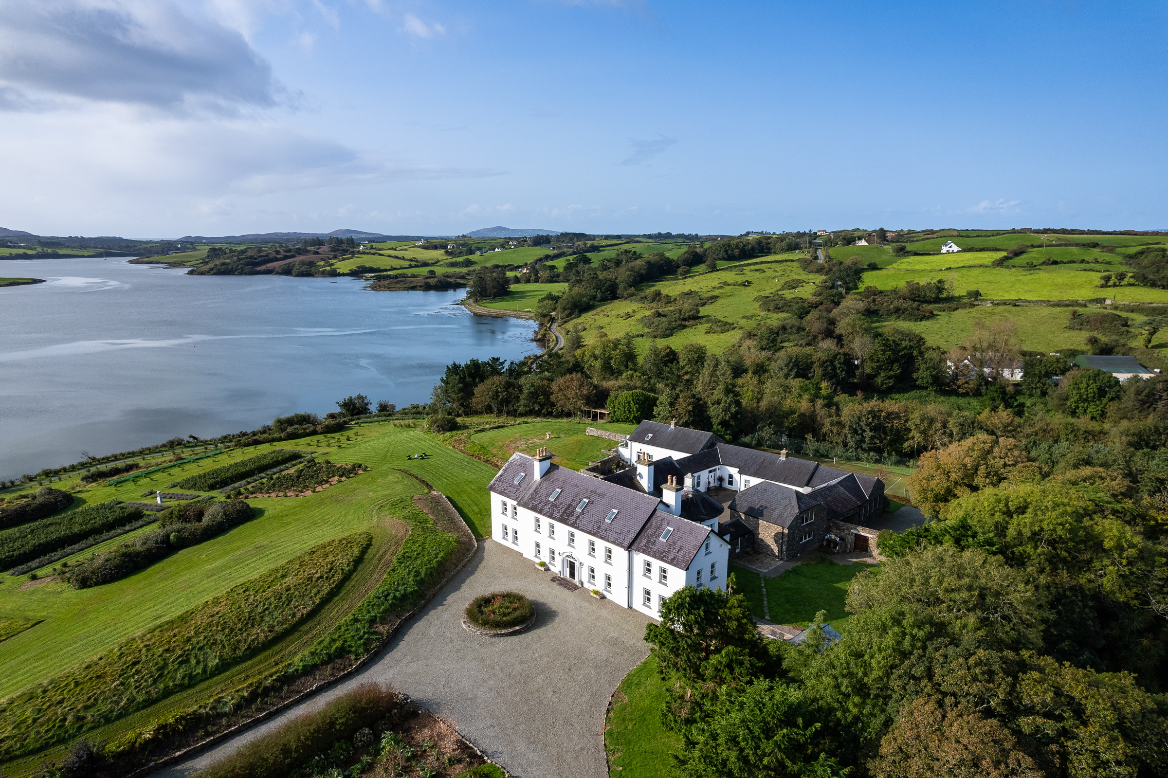 Approached via a sweeping waterside drive, this exceptional property is set within a secluded 9-acre (3.84-hectare) sanctuary of natural beauty. Commanding a spectacular position on a bend of the Ilen River estuary, it boasts direct private shoreline access, as well as convenient access to Baltimore Harbour and the renowned sailing waters of Roaring Water Bay and the Carbery Hundred Isles. The grounds have been beautifully landscaped in recent years, with the addition of a variety of flowering plants and shrubs, enhancing the property's natural charm.