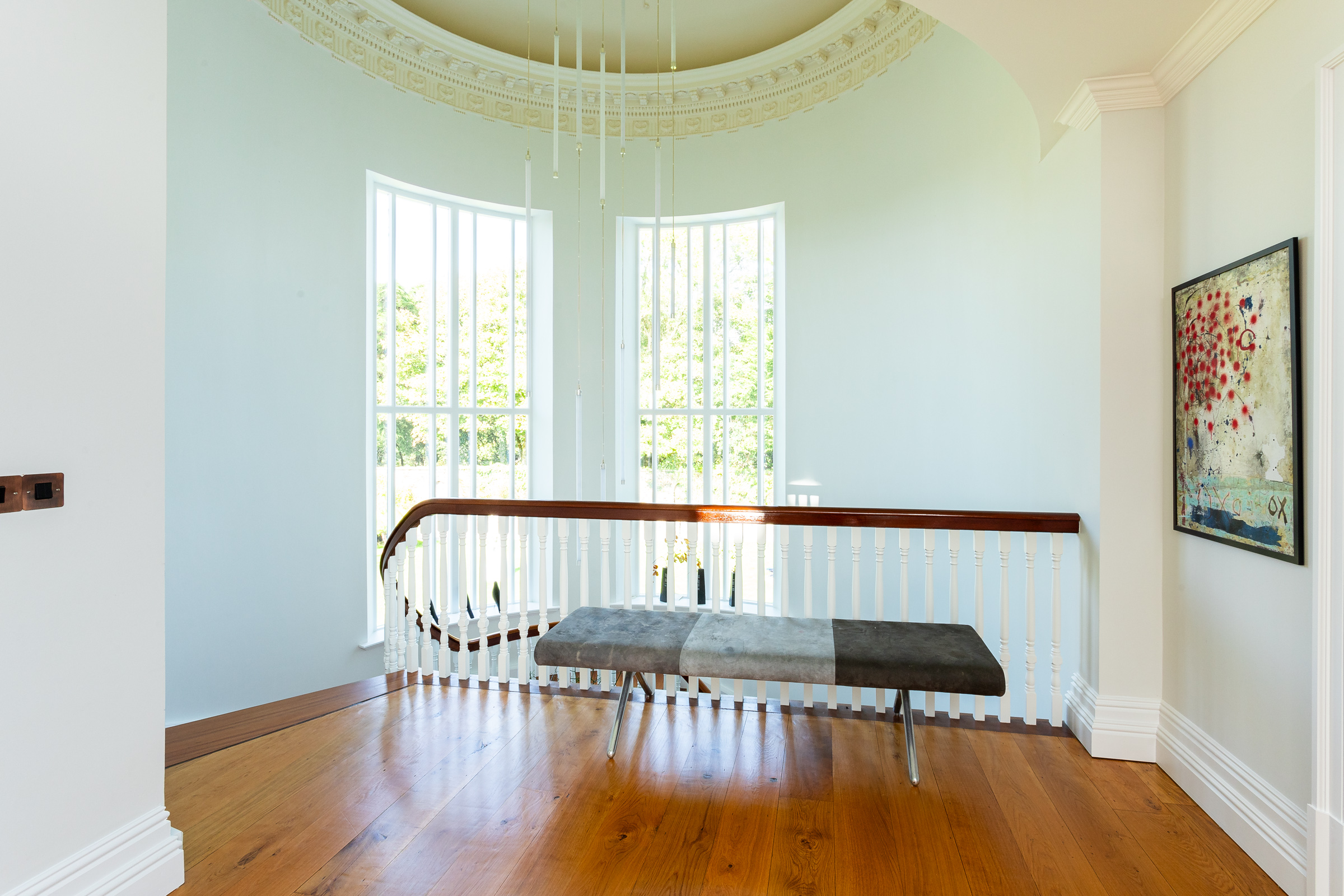 Classical styling and contemporary design blend seamlessly, creating a functional and open living space. Superior-quality materials are evident throughout, complemented by bespoke features that enhance both character and comfort. The principal rooms are generously proportioned, with soaring ceilings, exquisite period details, and large sash windows that frame breathtaking views of the river, islands, and rolling countryside.